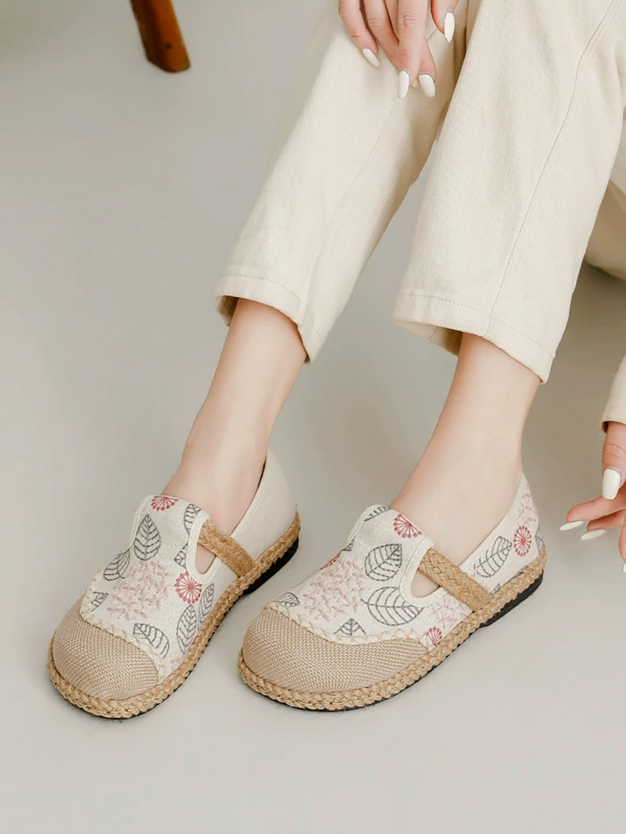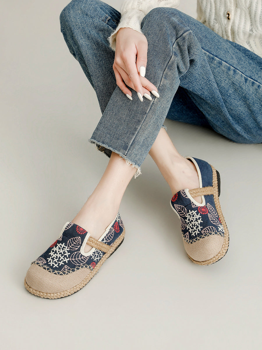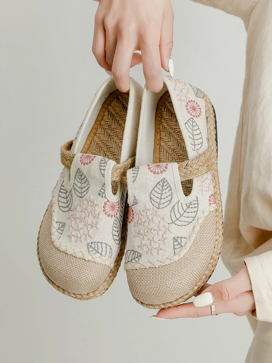Zapatos planos de lona y lino con bordado de primavera para mujer