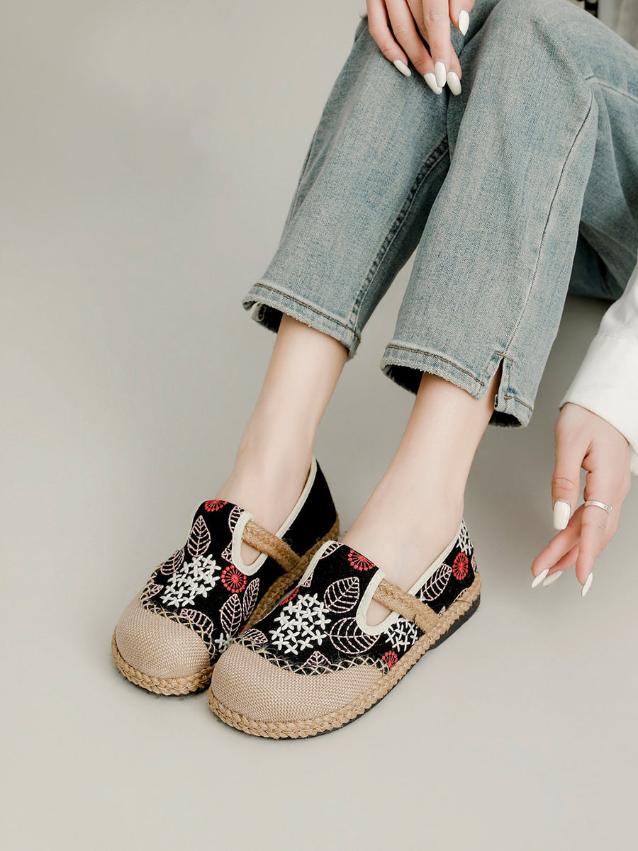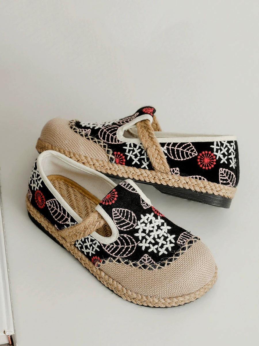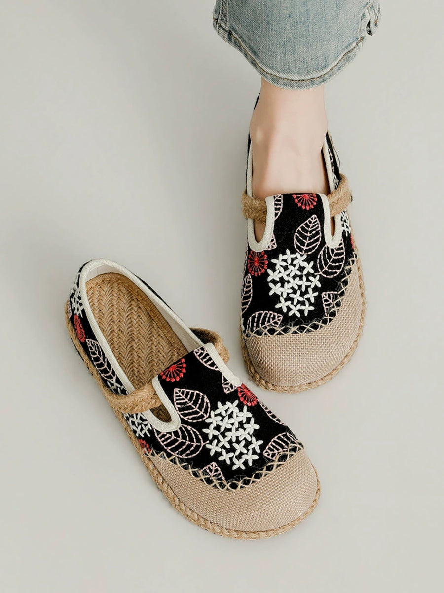 Zapatos planos de lona y lino con bordado de primavera para mujer