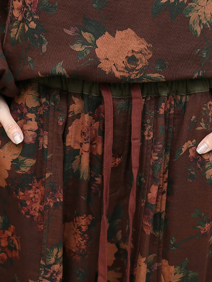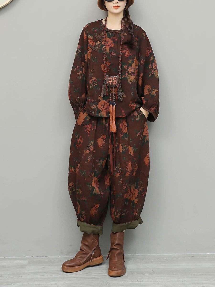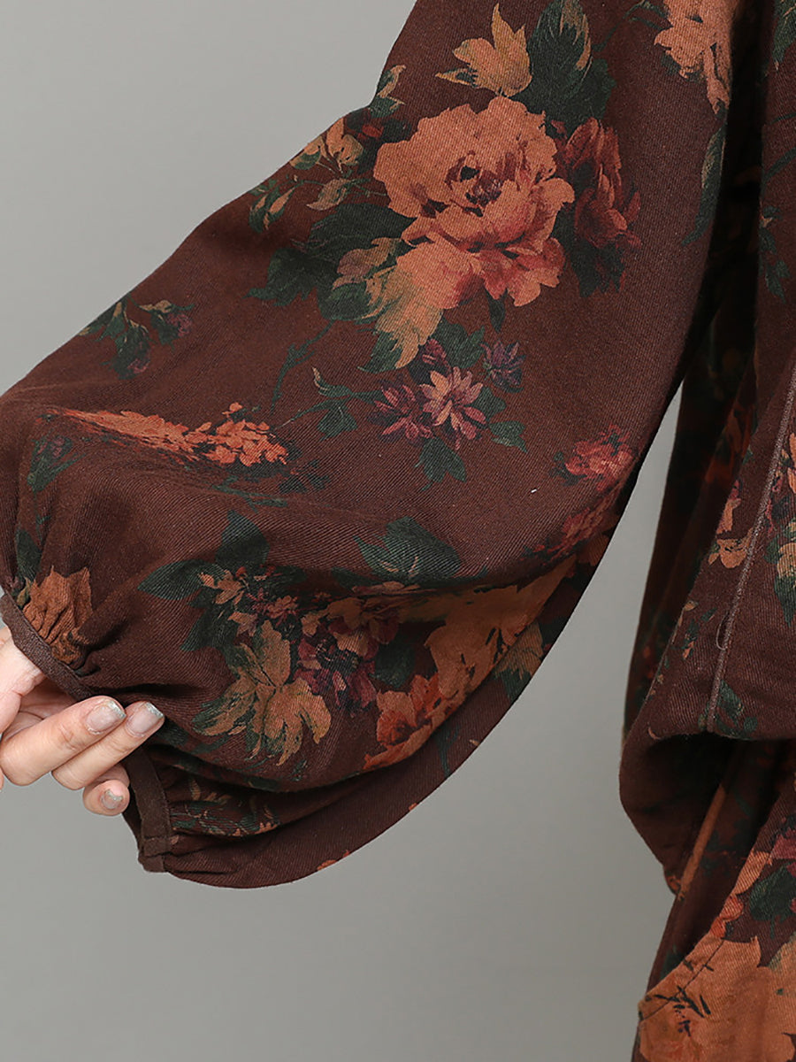 Trajes de cuello redondo con empalme de flores étnicas de primavera para mujer