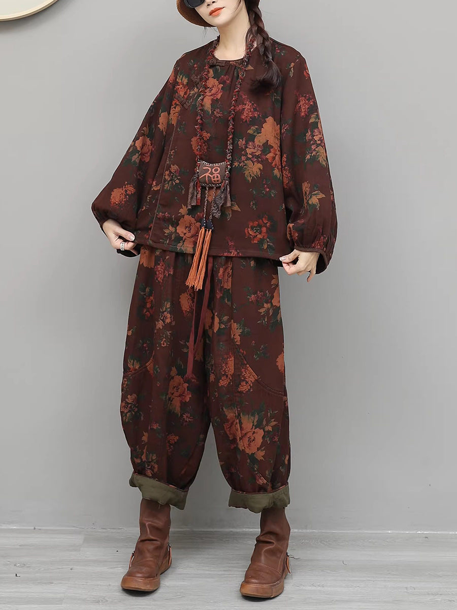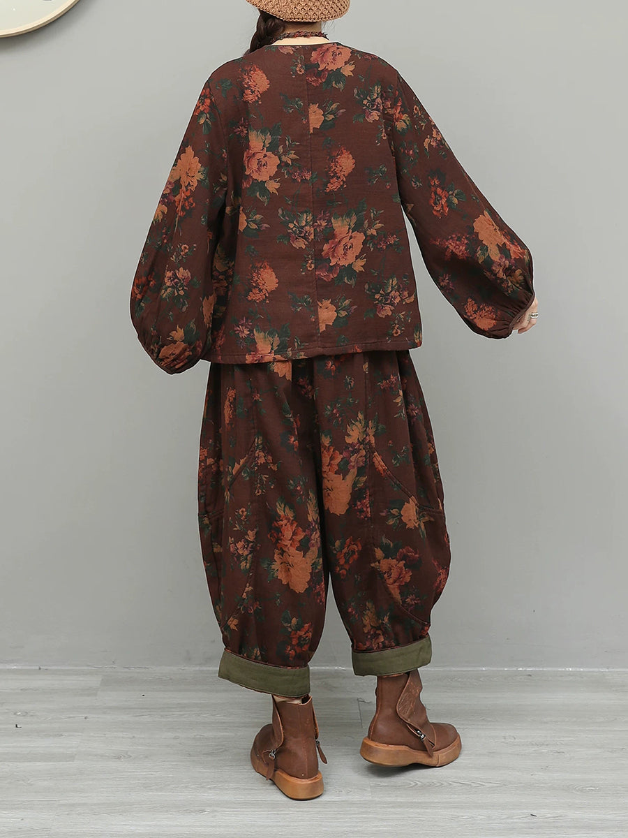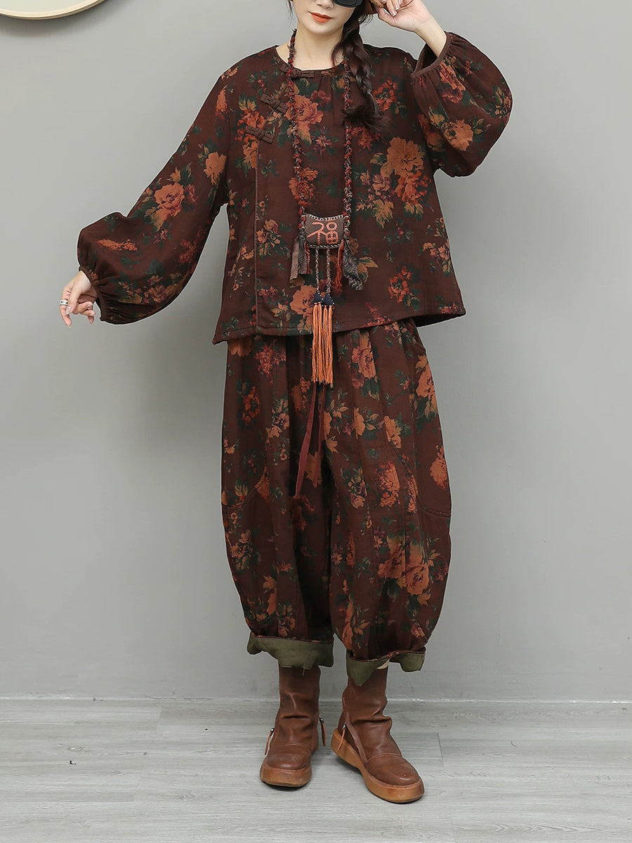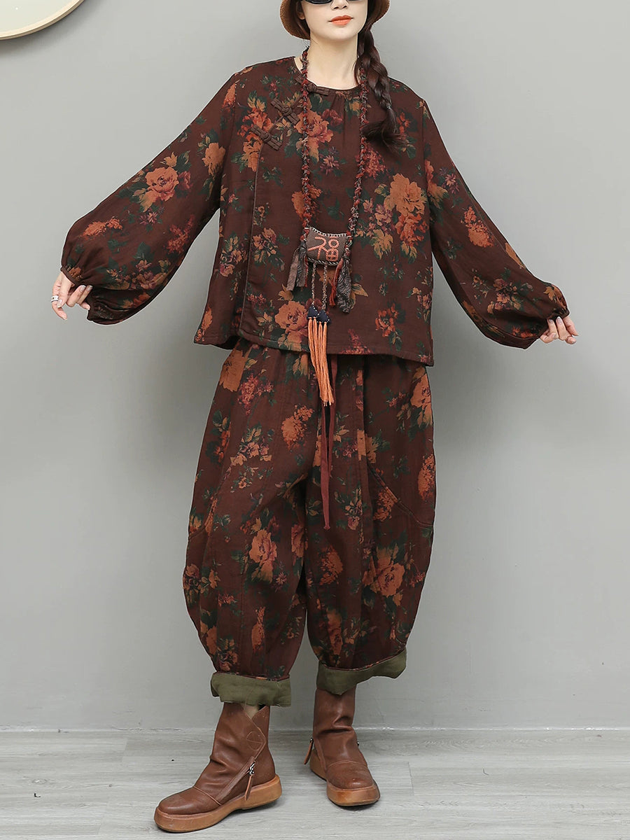 Trajes de cuello redondo con empalme de flores étnicas de primavera para mujer
