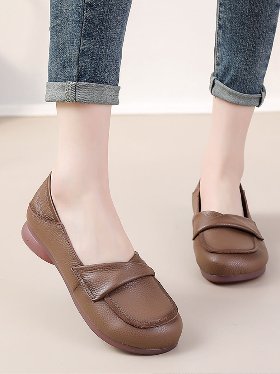 Zapatos de tacón bajo con empalme de piel auténtica para mujer, primavera