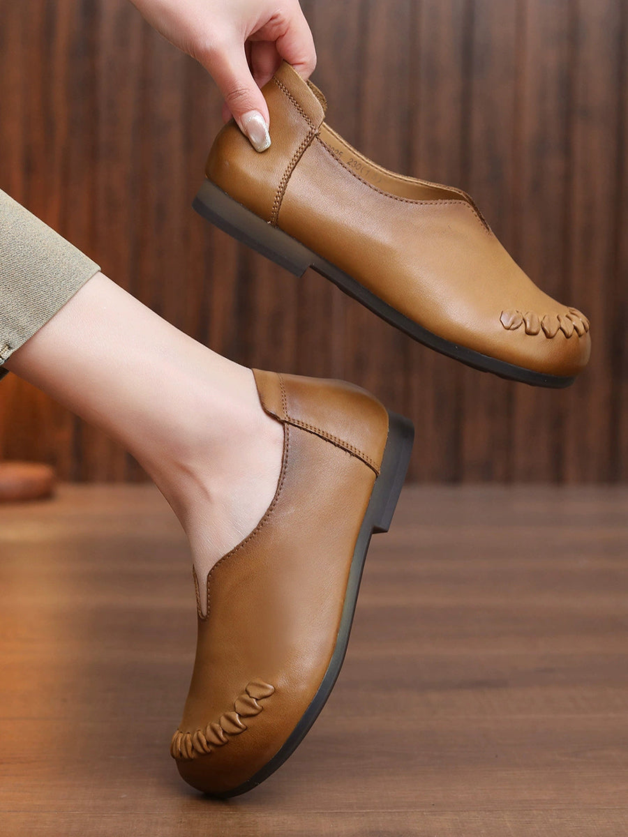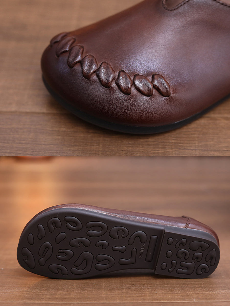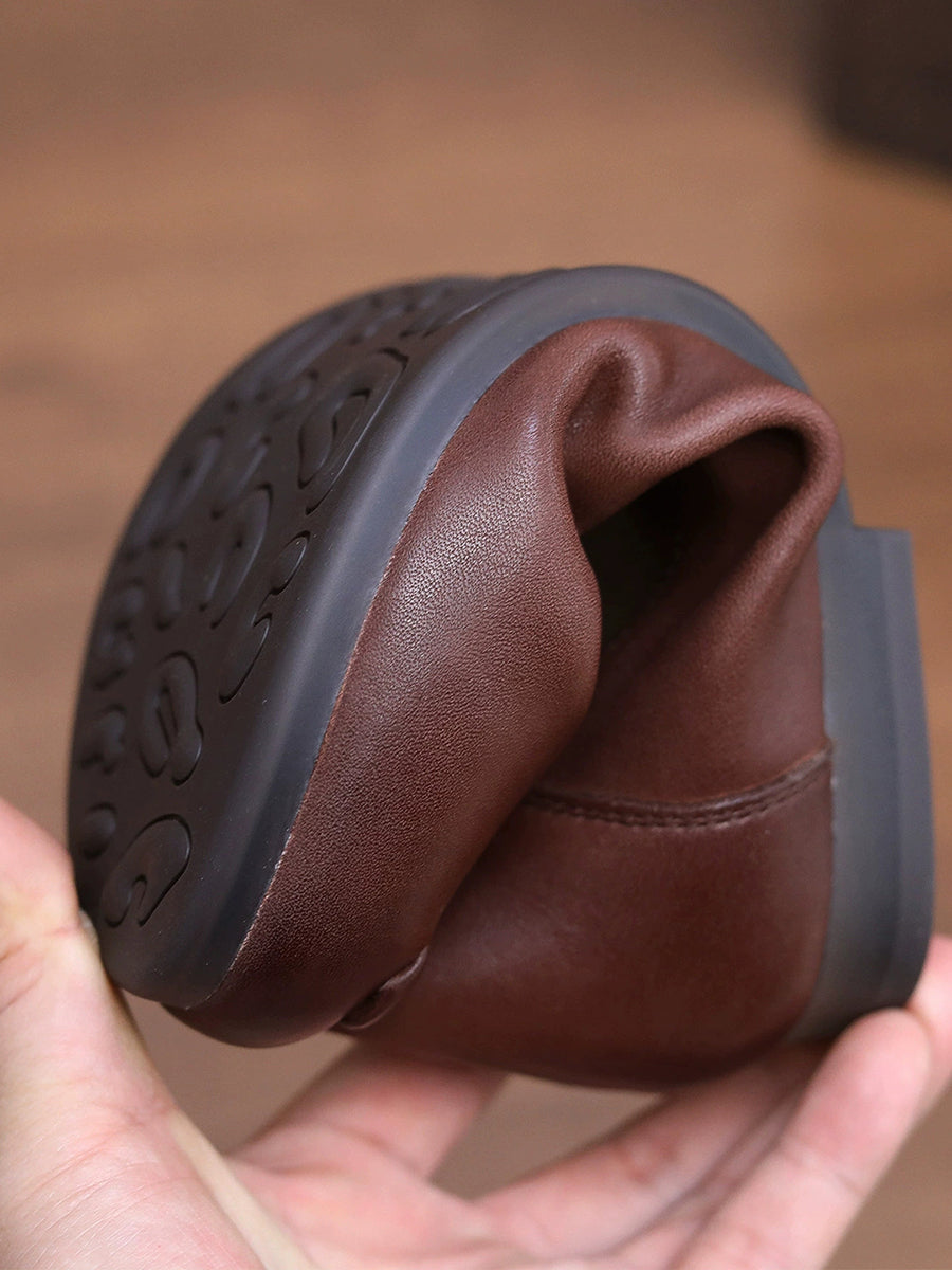 Zapatos de tacón bajo con empalme de piel auténtica para mujer, primavera