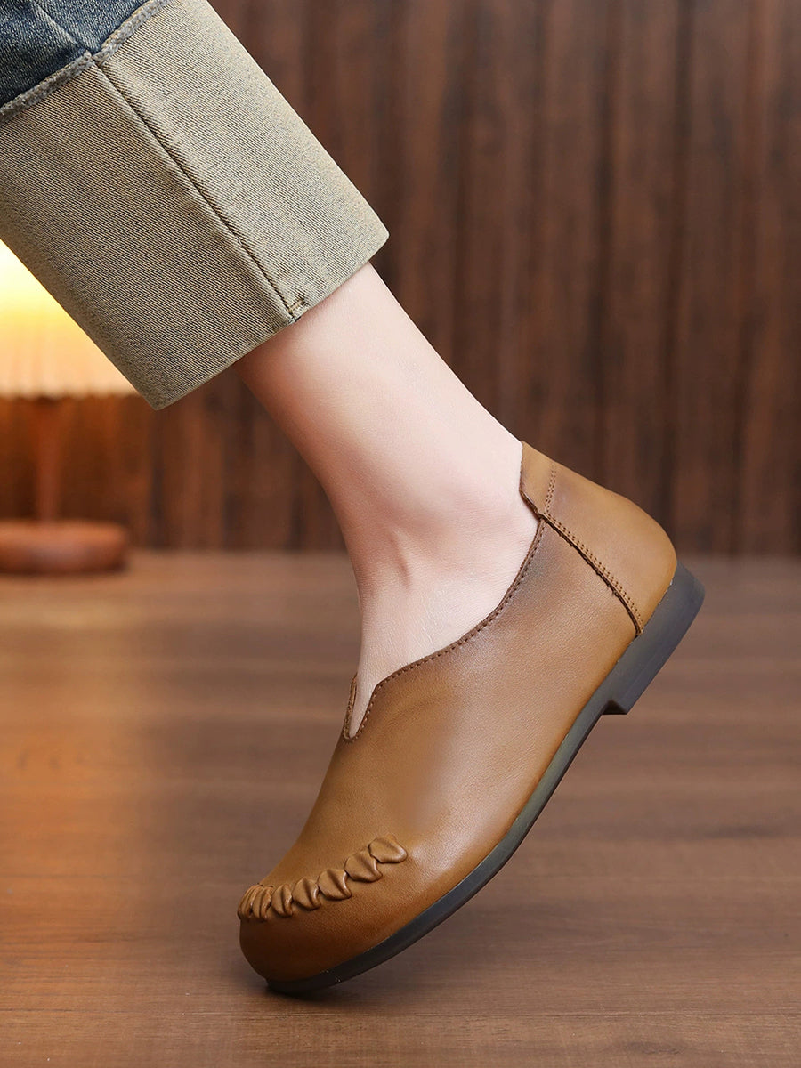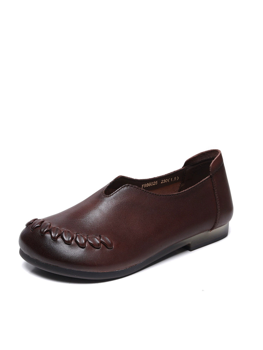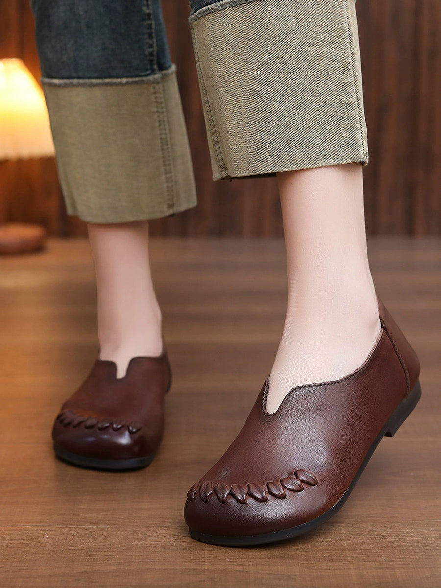 Zapatos de tacón bajo con empalme de piel auténtica para mujer, primavera
