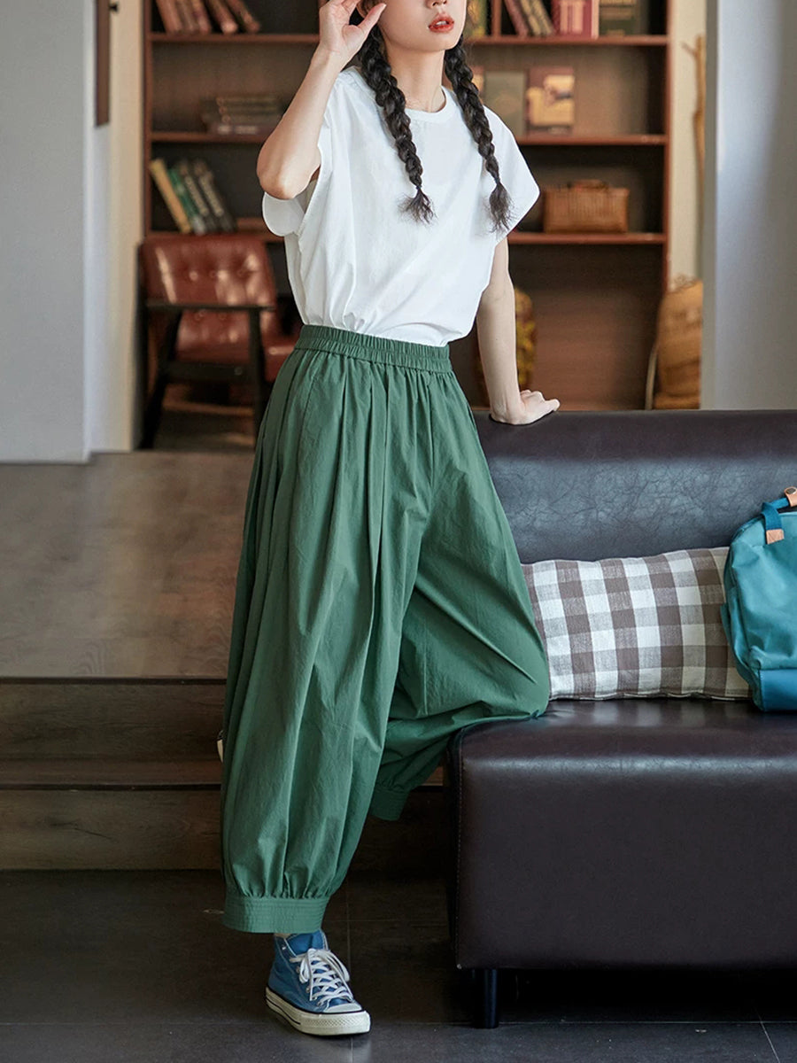 Pantalones anchos de primavera para mujer, 100 % algodón, color puro