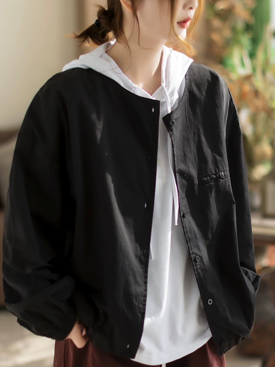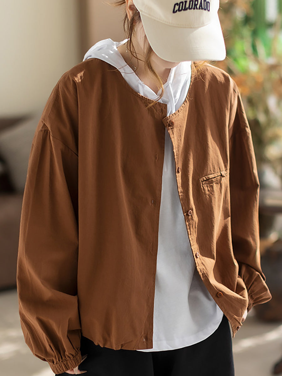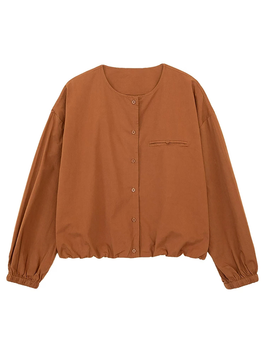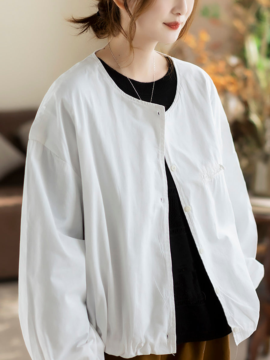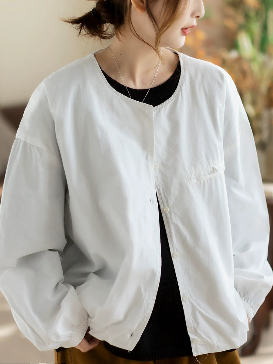 Camisa de algodón con cuello redondo y color puro para mujer, primavera