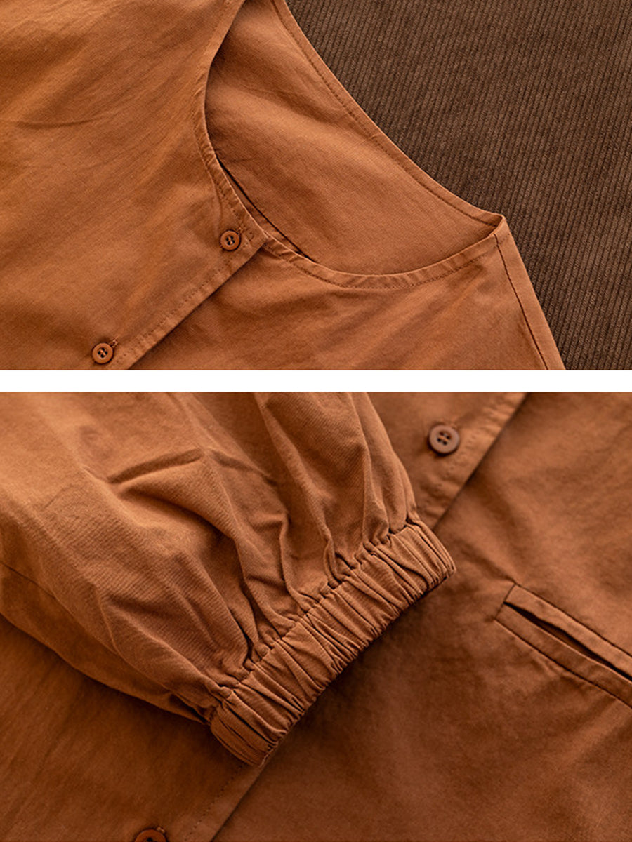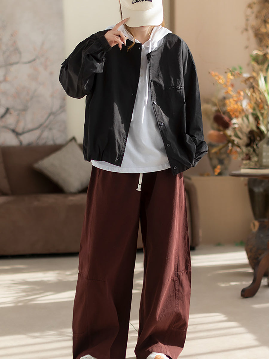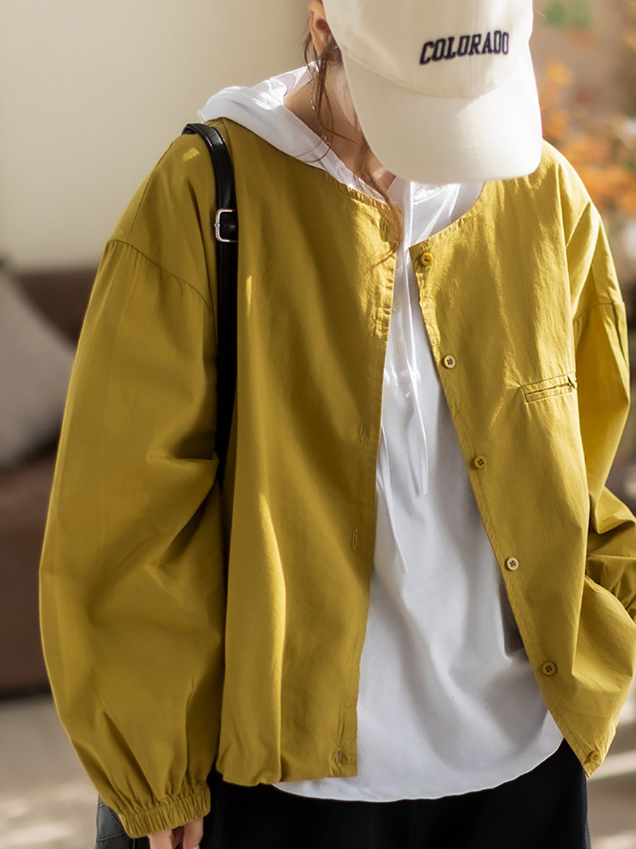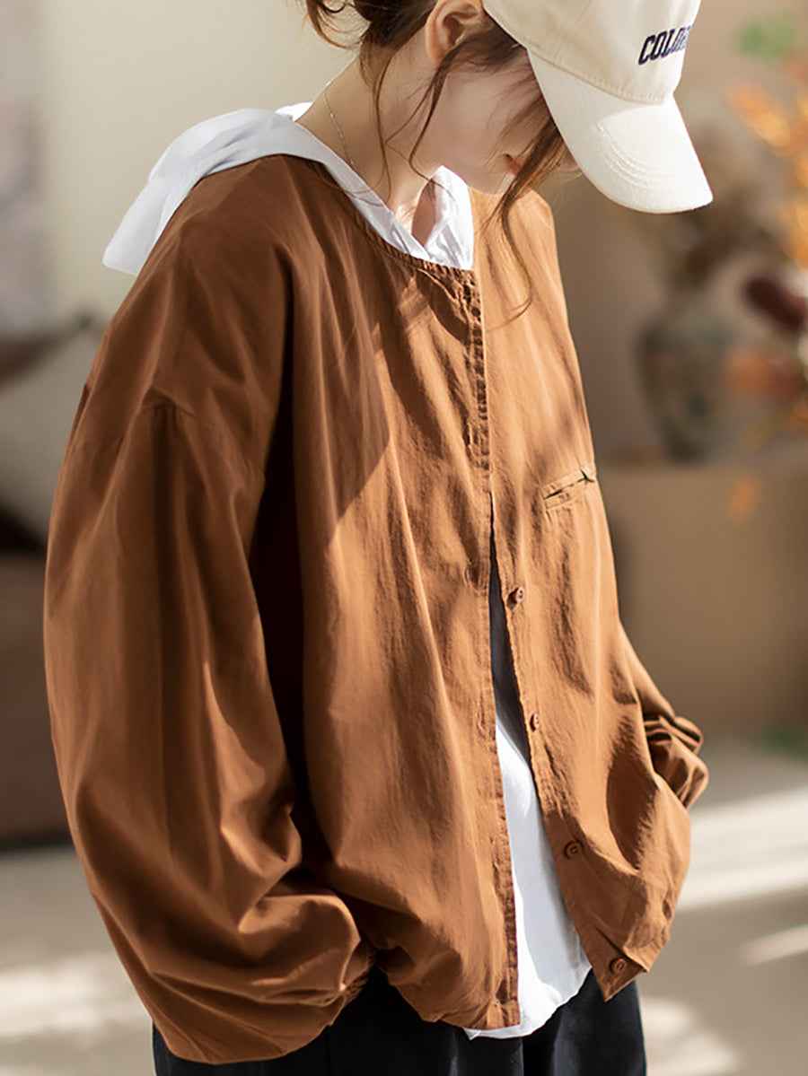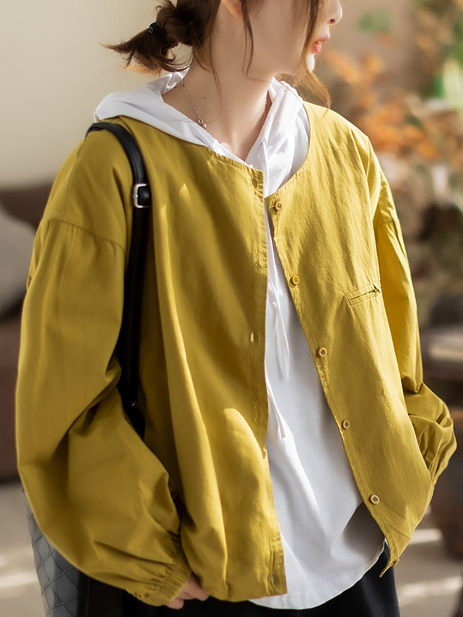 Camisa de algodón con cuello redondo y color puro para mujer, primavera