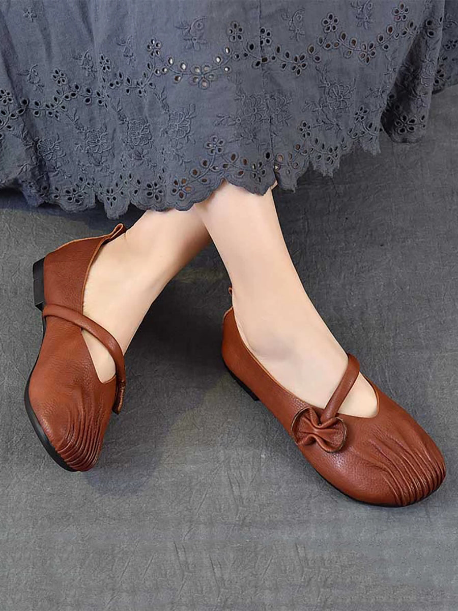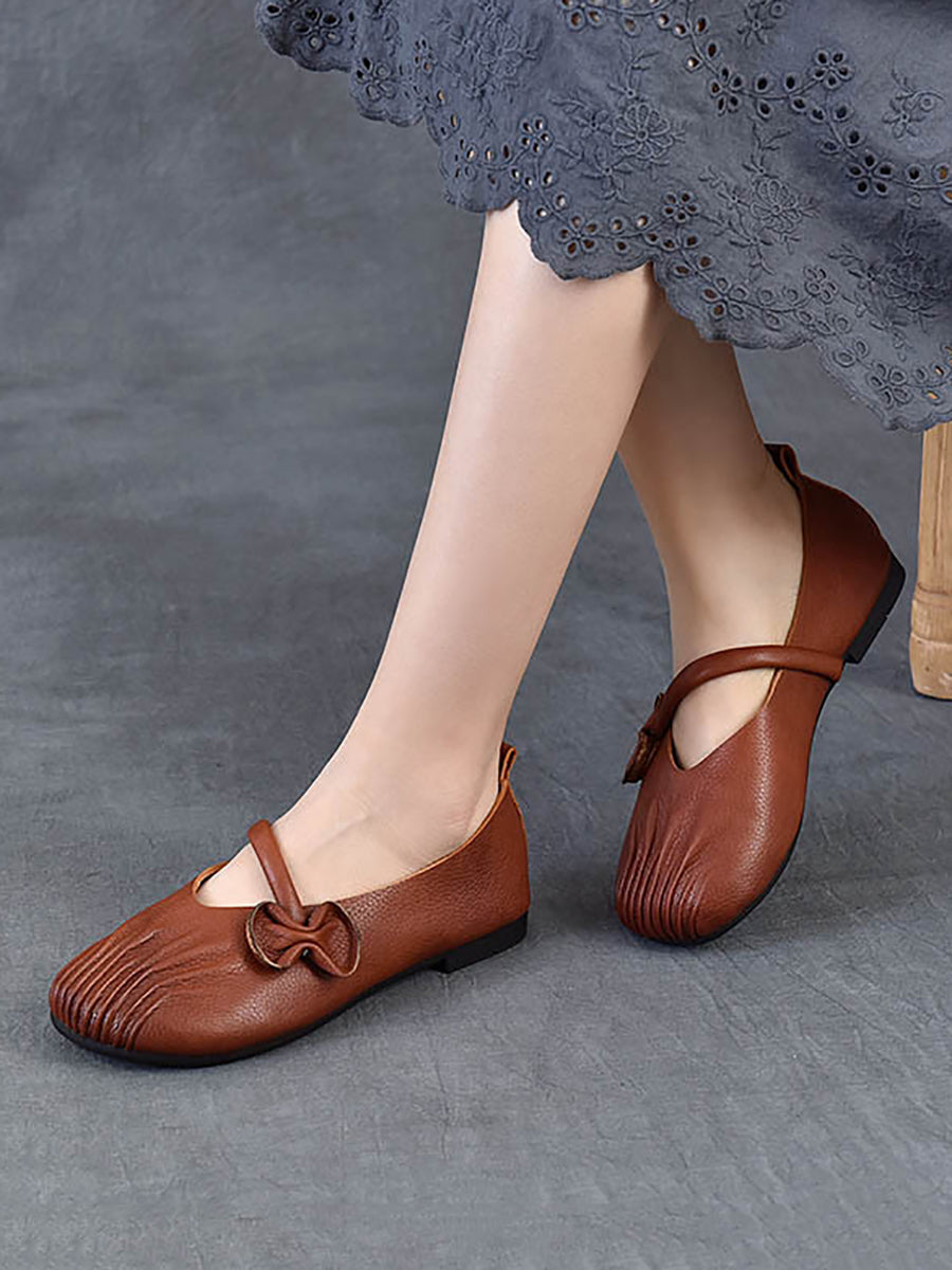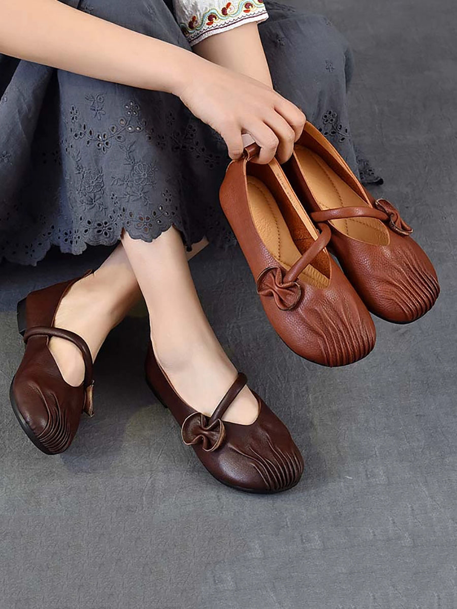 Zapatos de tacón bajo de piel auténtica estilo retro de primavera para mujer