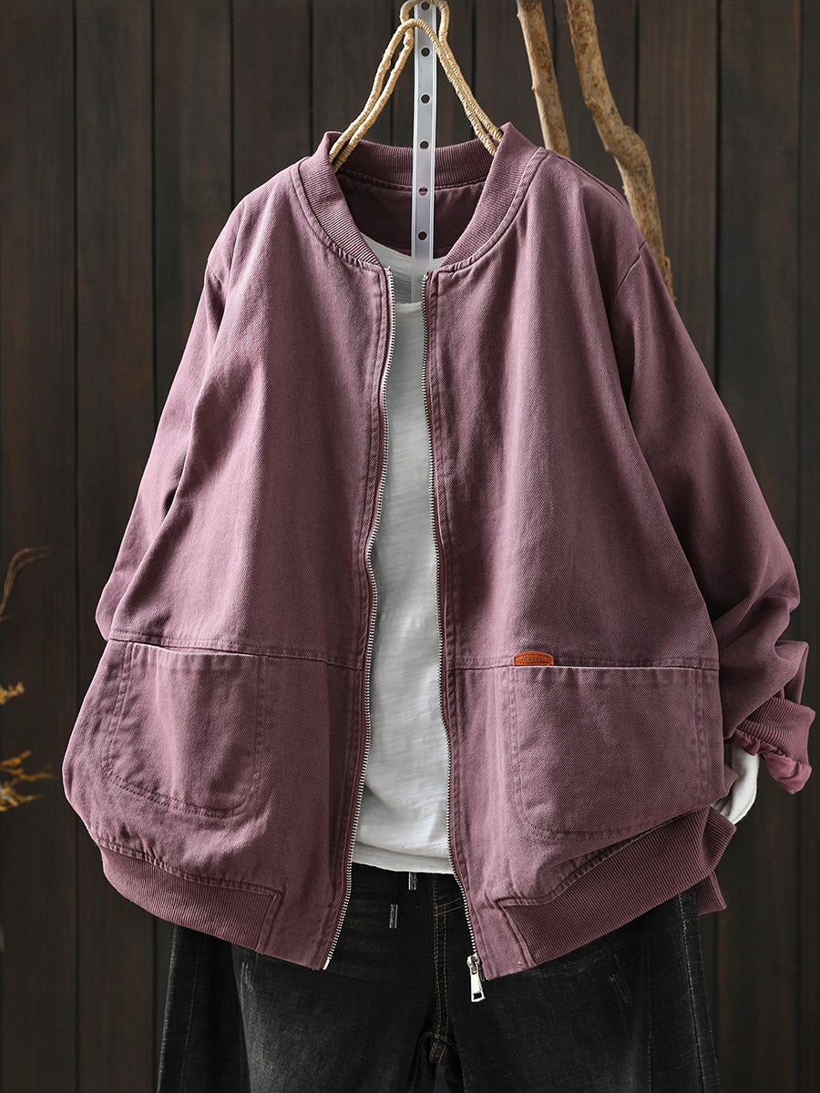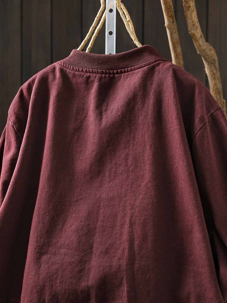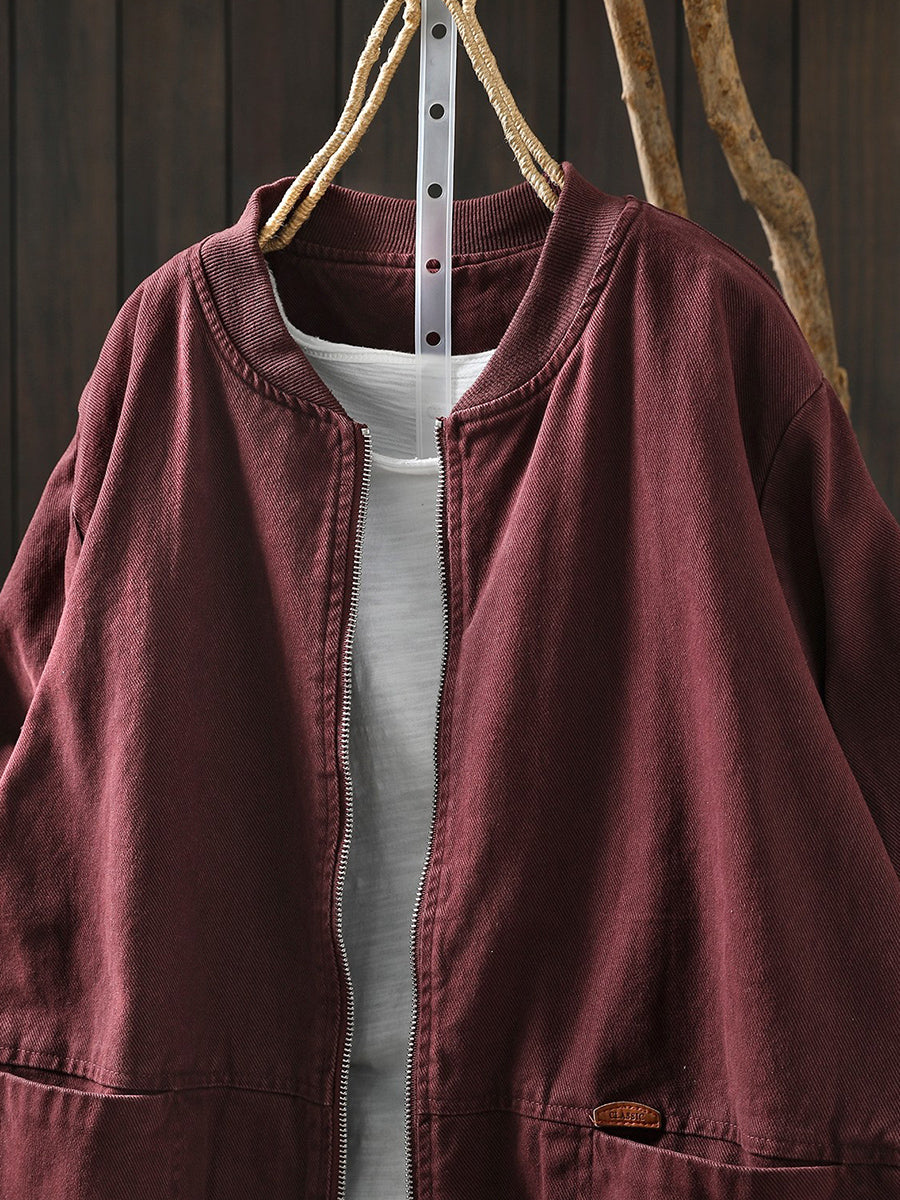 Chaqueta retro de primavera con cuello alto y color puro para mujer