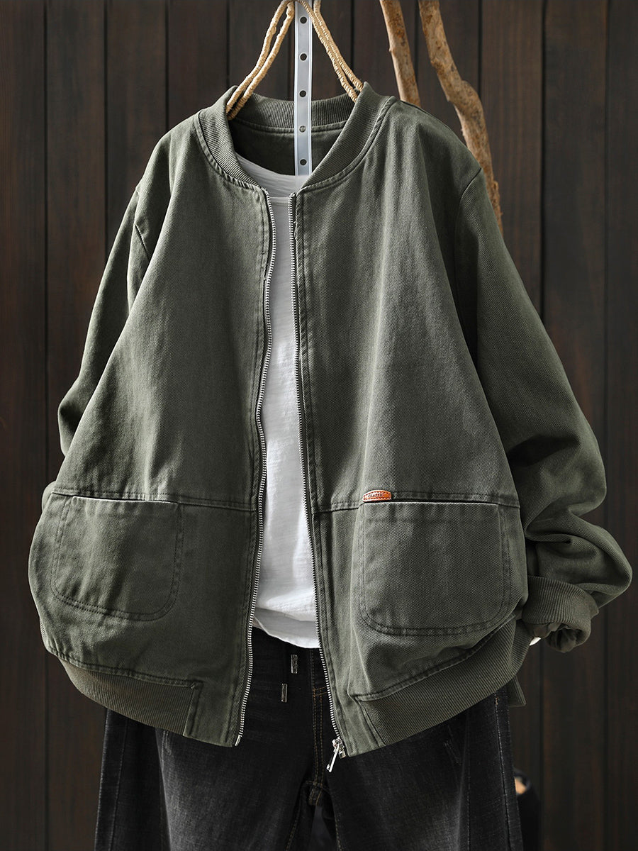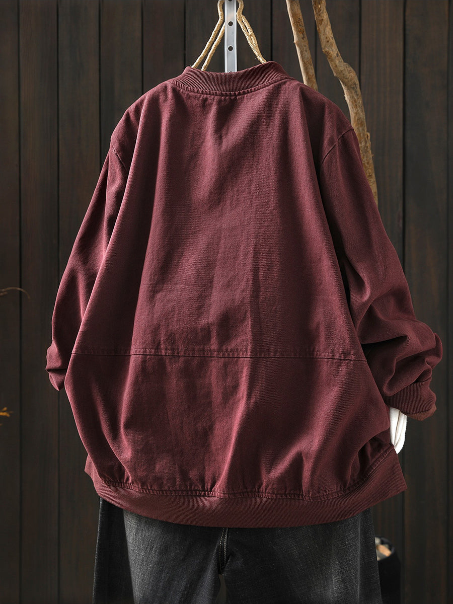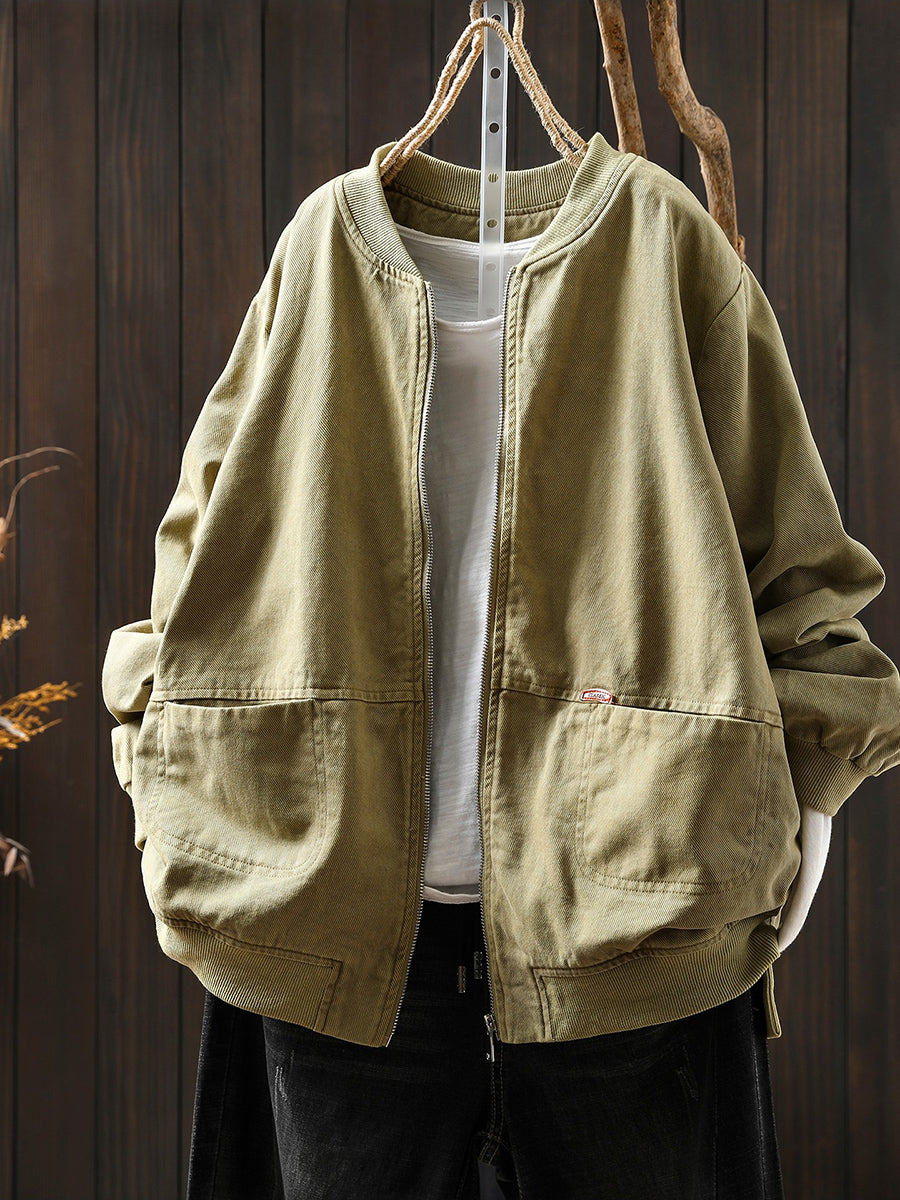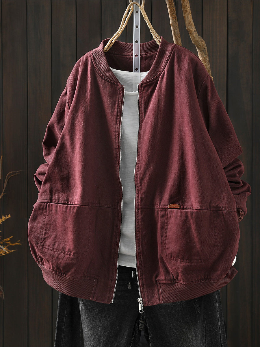 Chaqueta retro de primavera con cuello alto y color puro para mujer