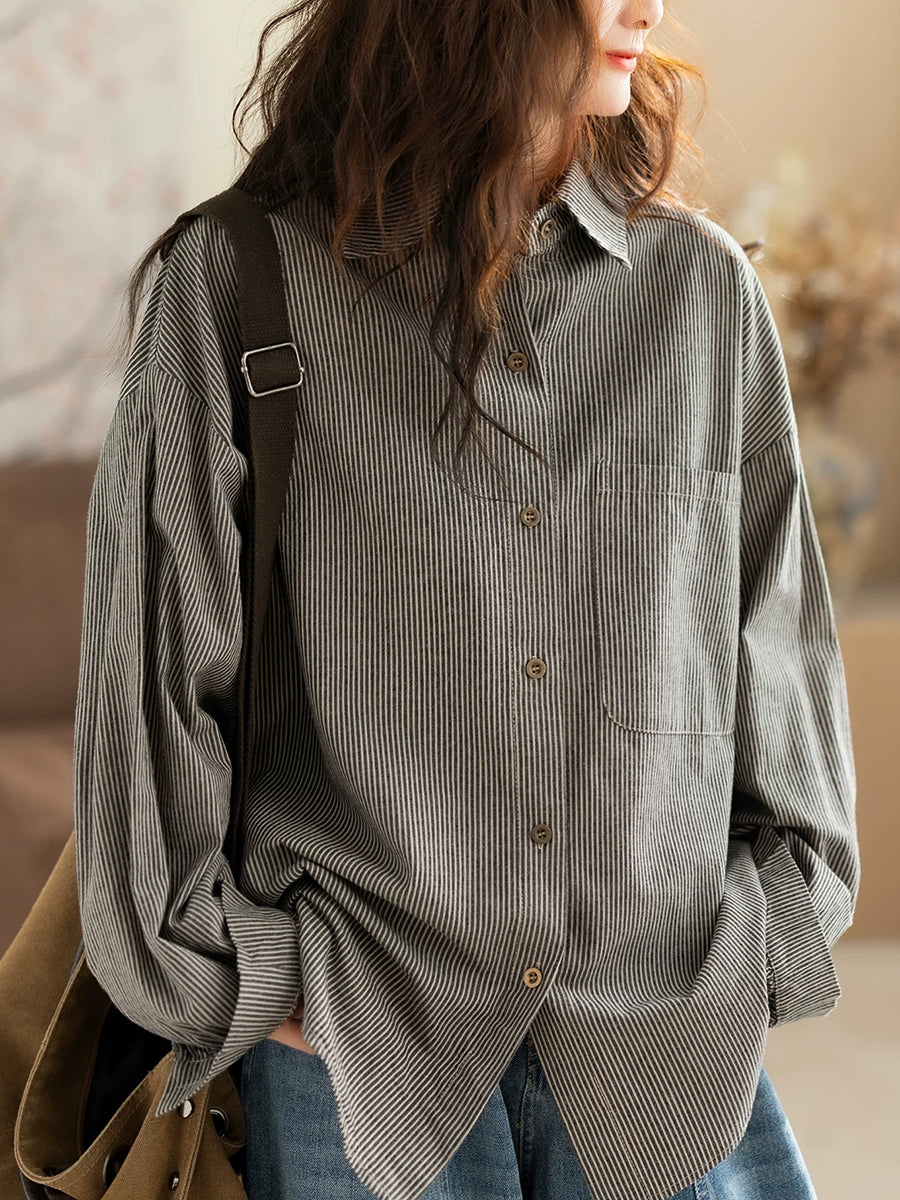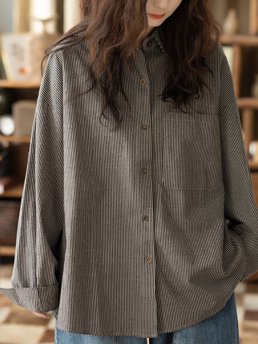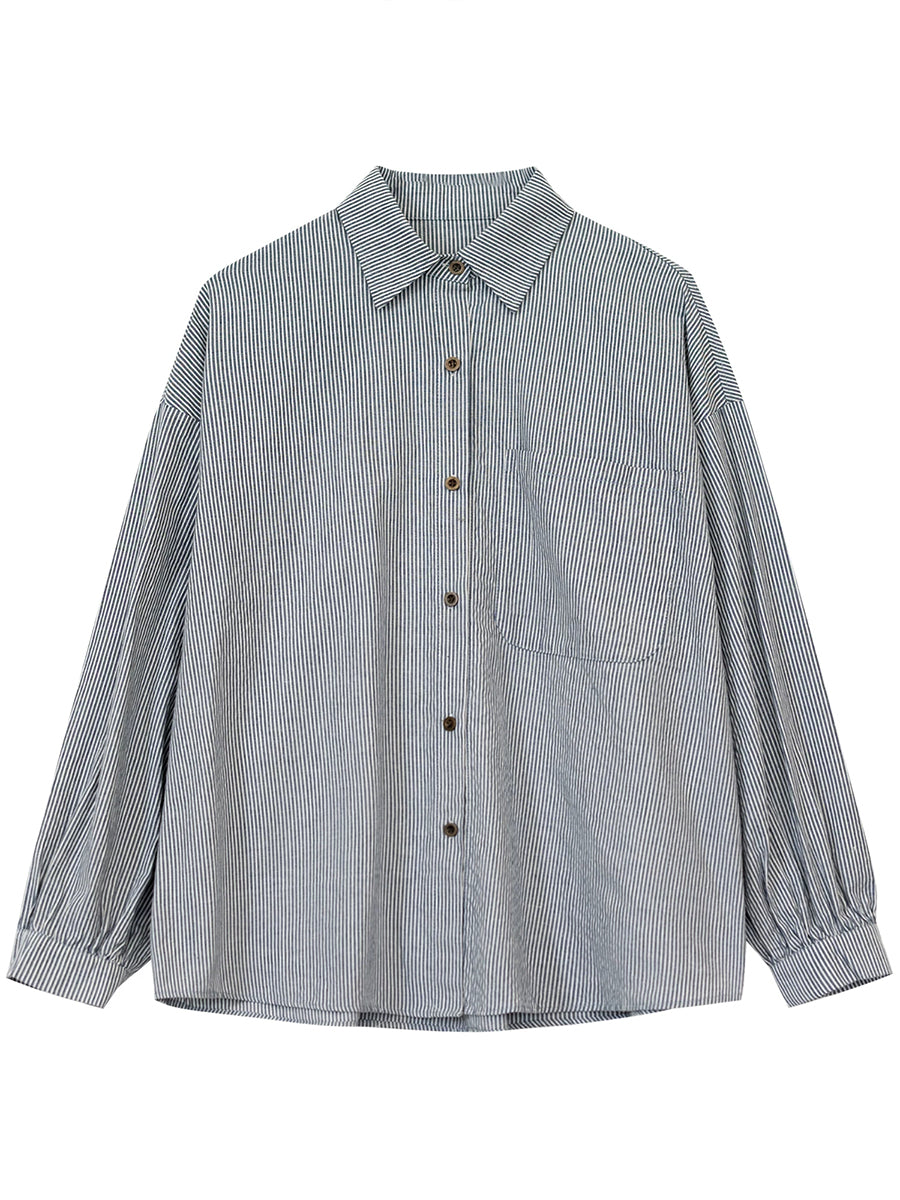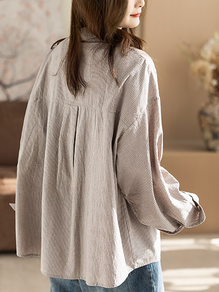 Camisa de algodón con cuello vuelto y rayas de primavera para mujer
