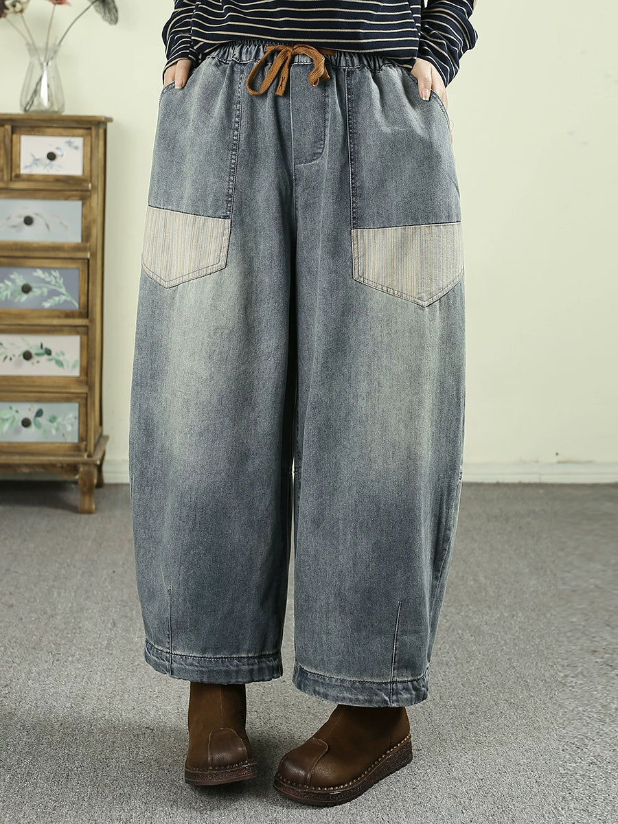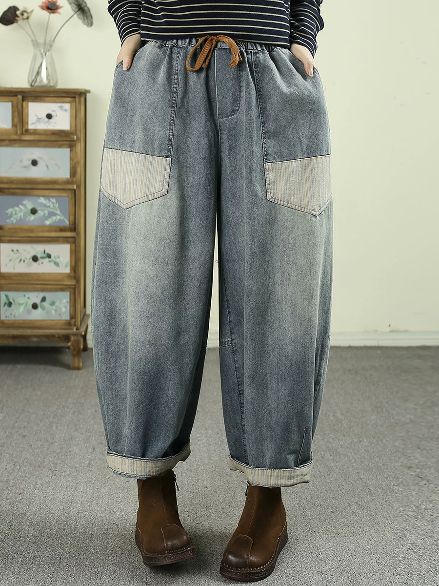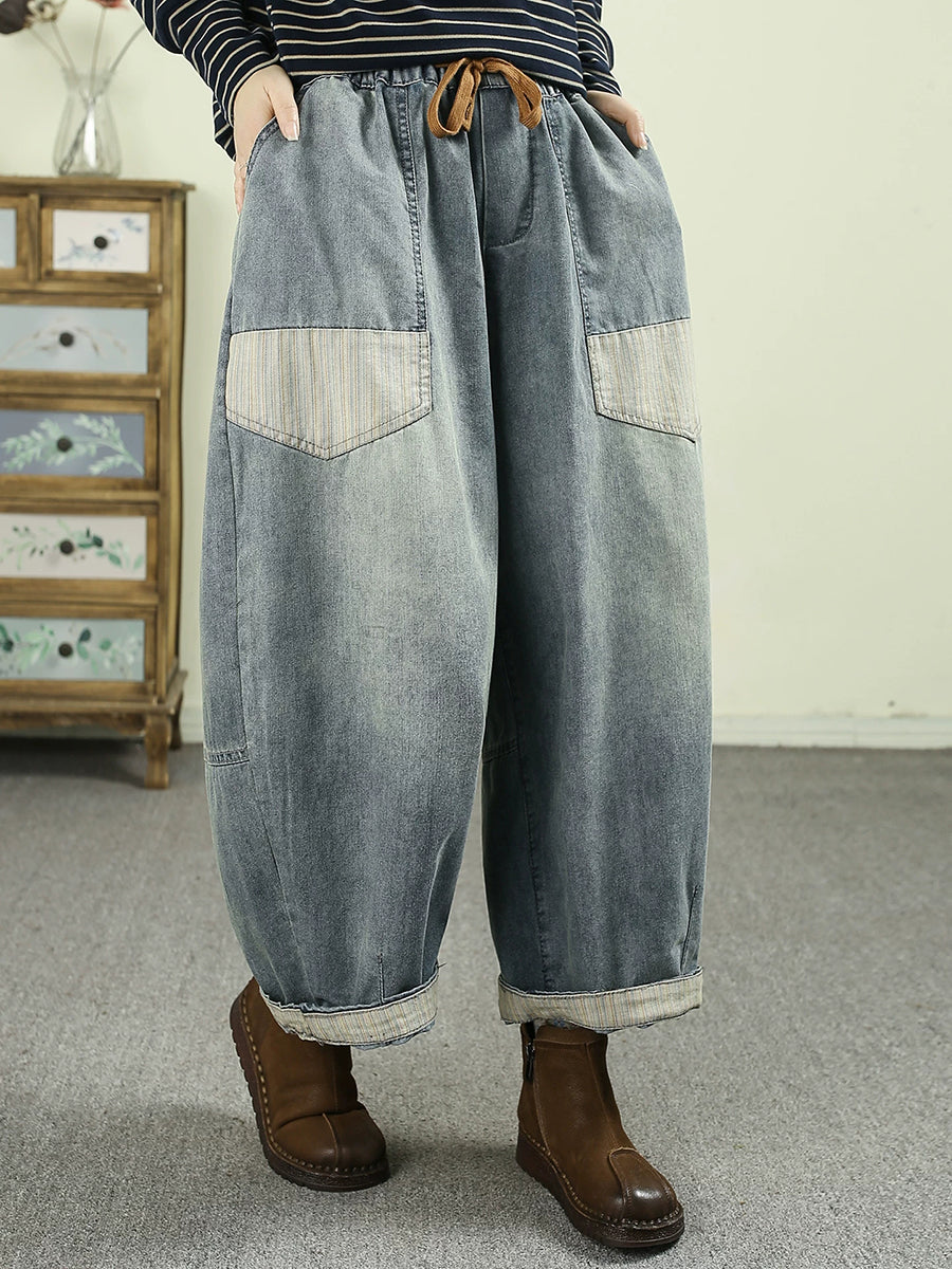 Pantalones harén de mezclilla vintage empalmados para mujer de primavera