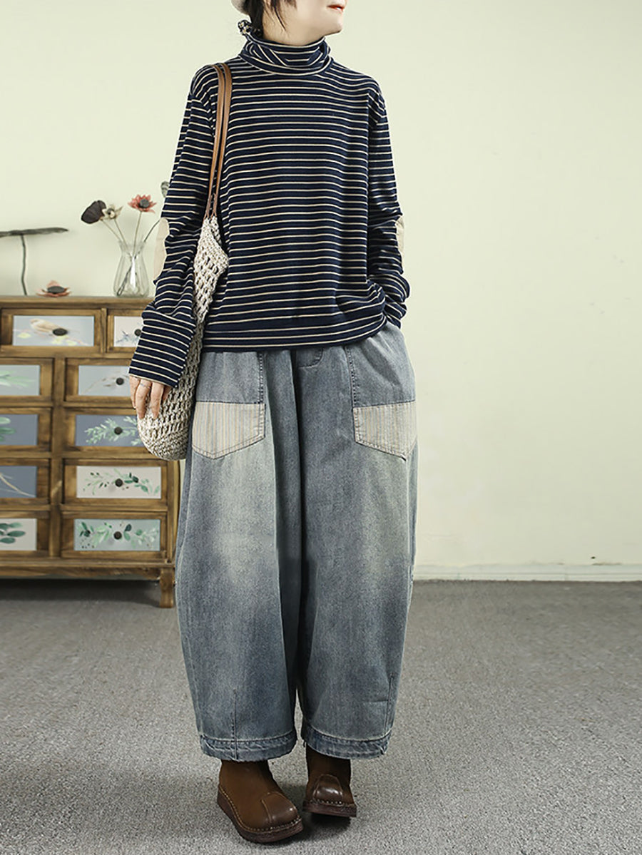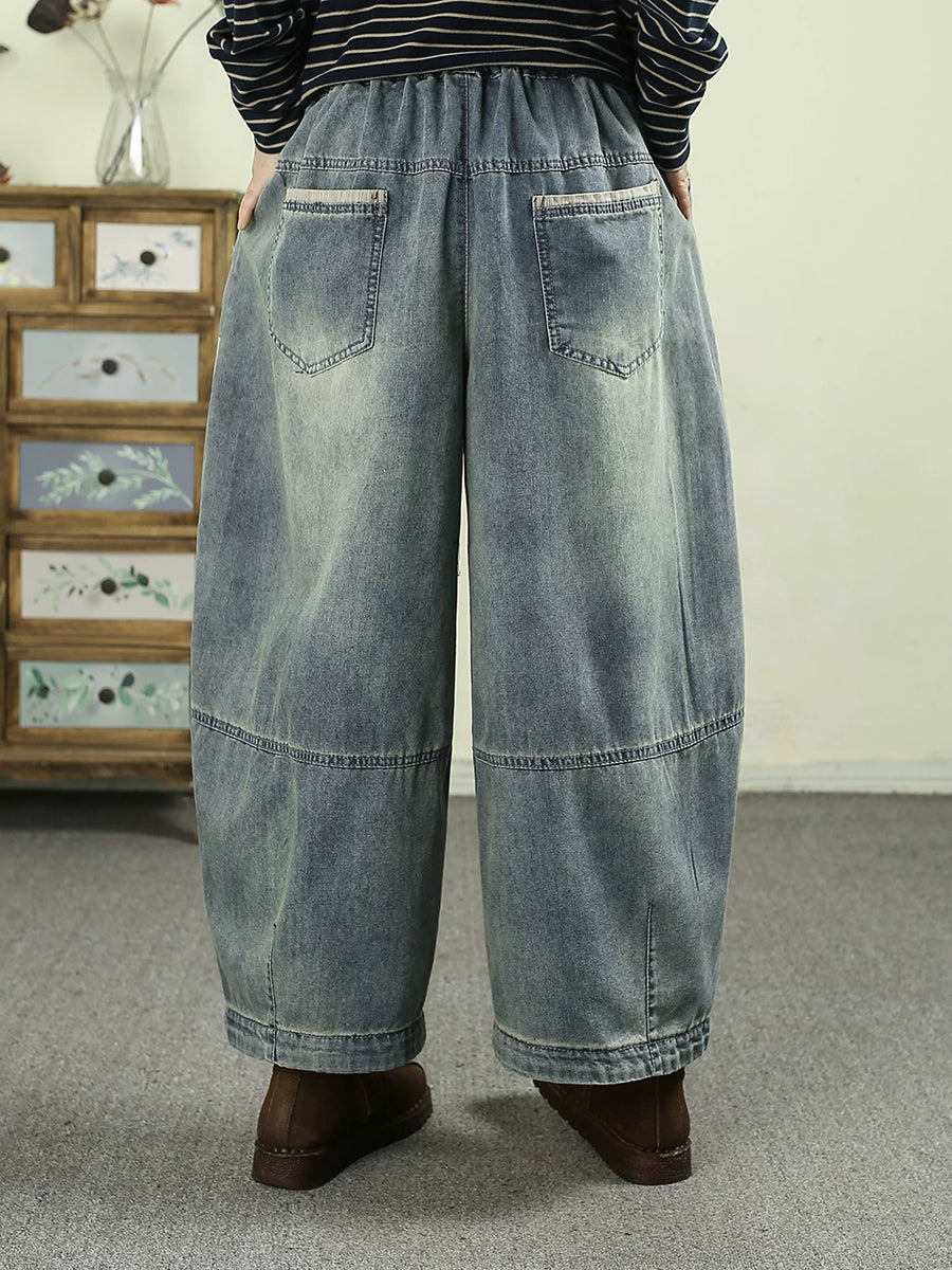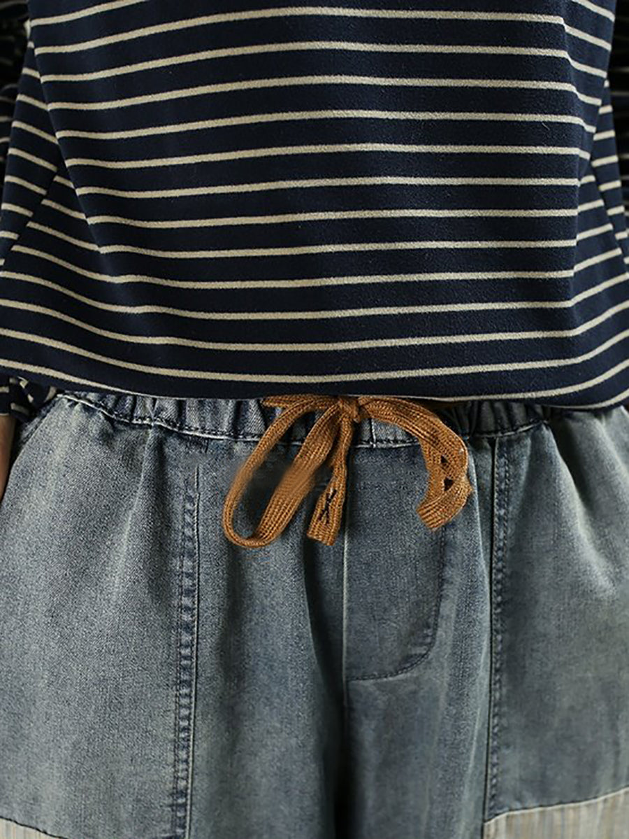Pantalones harén de mezclilla vintage empalmados para mujer de primavera