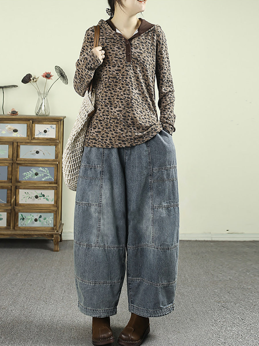Pantalones vaqueros vintage de pierna ancha con empalmes para mujer de primavera