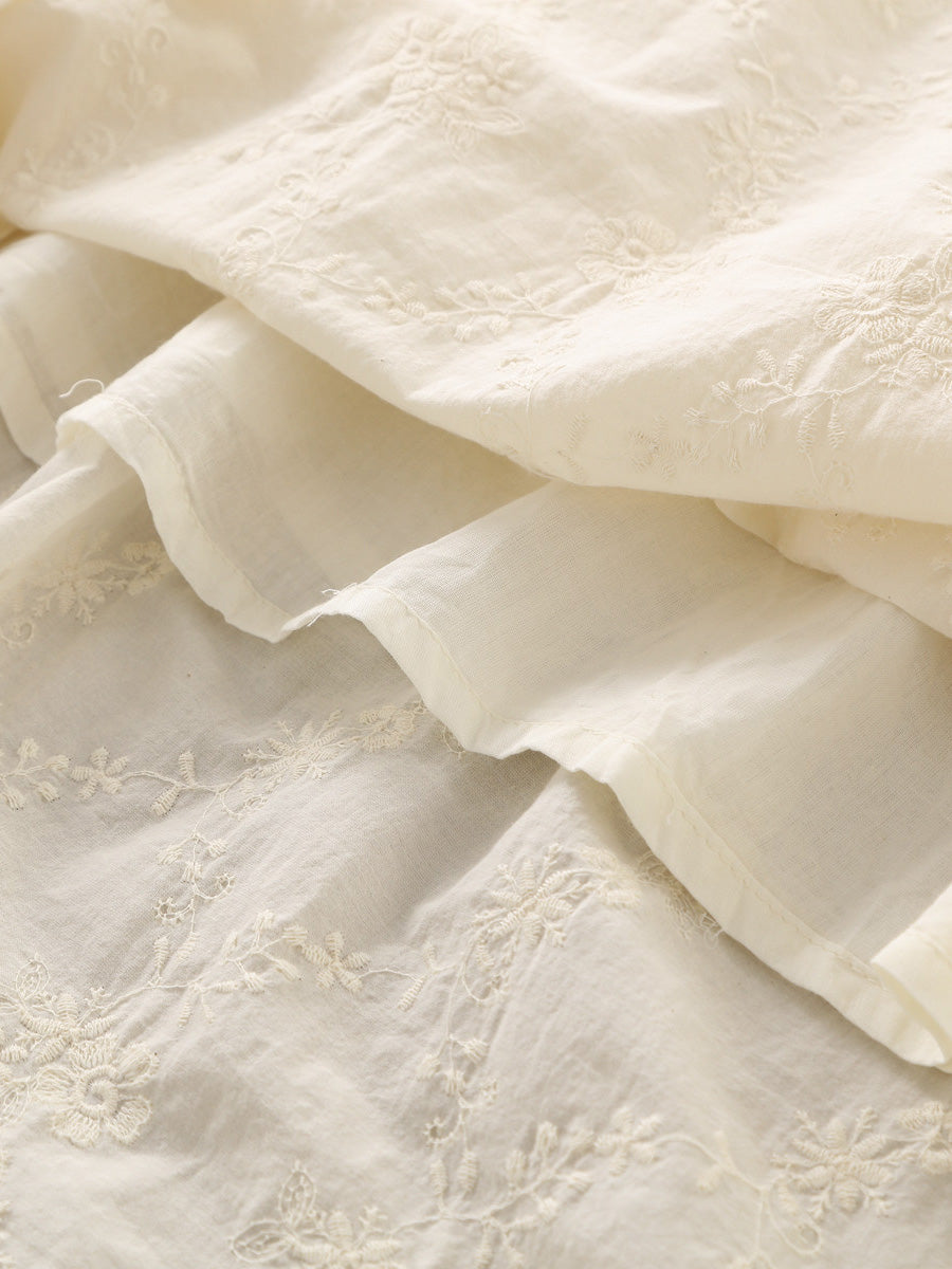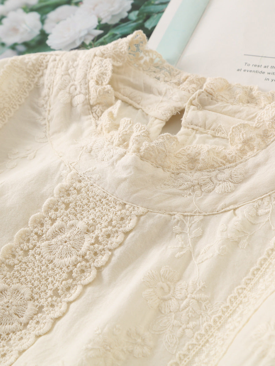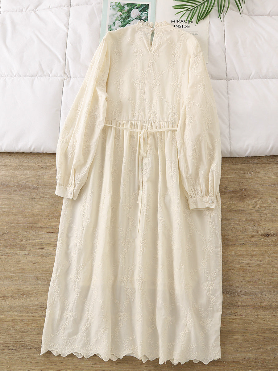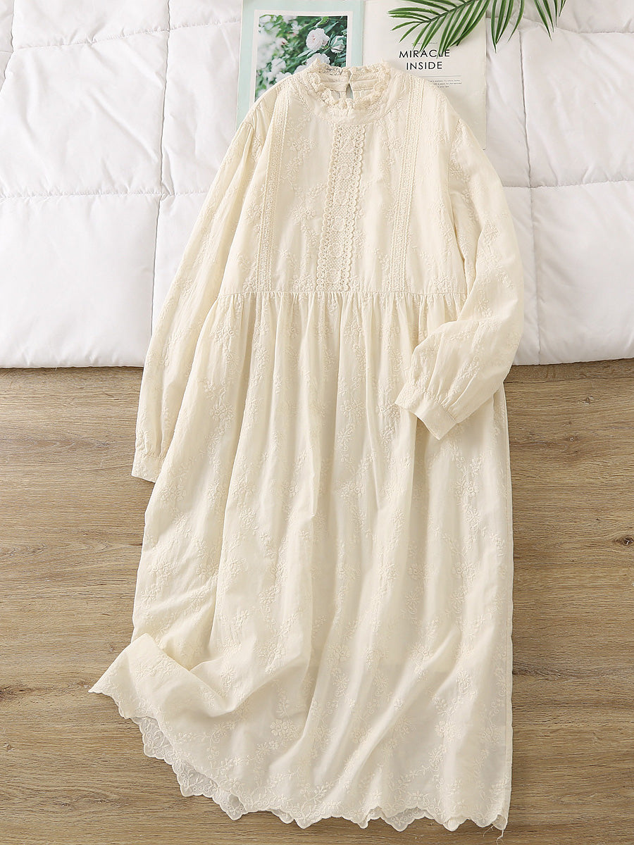 Vestido de primavera para mujer, 100 % algodón, con cuello de encaje bordado vintage