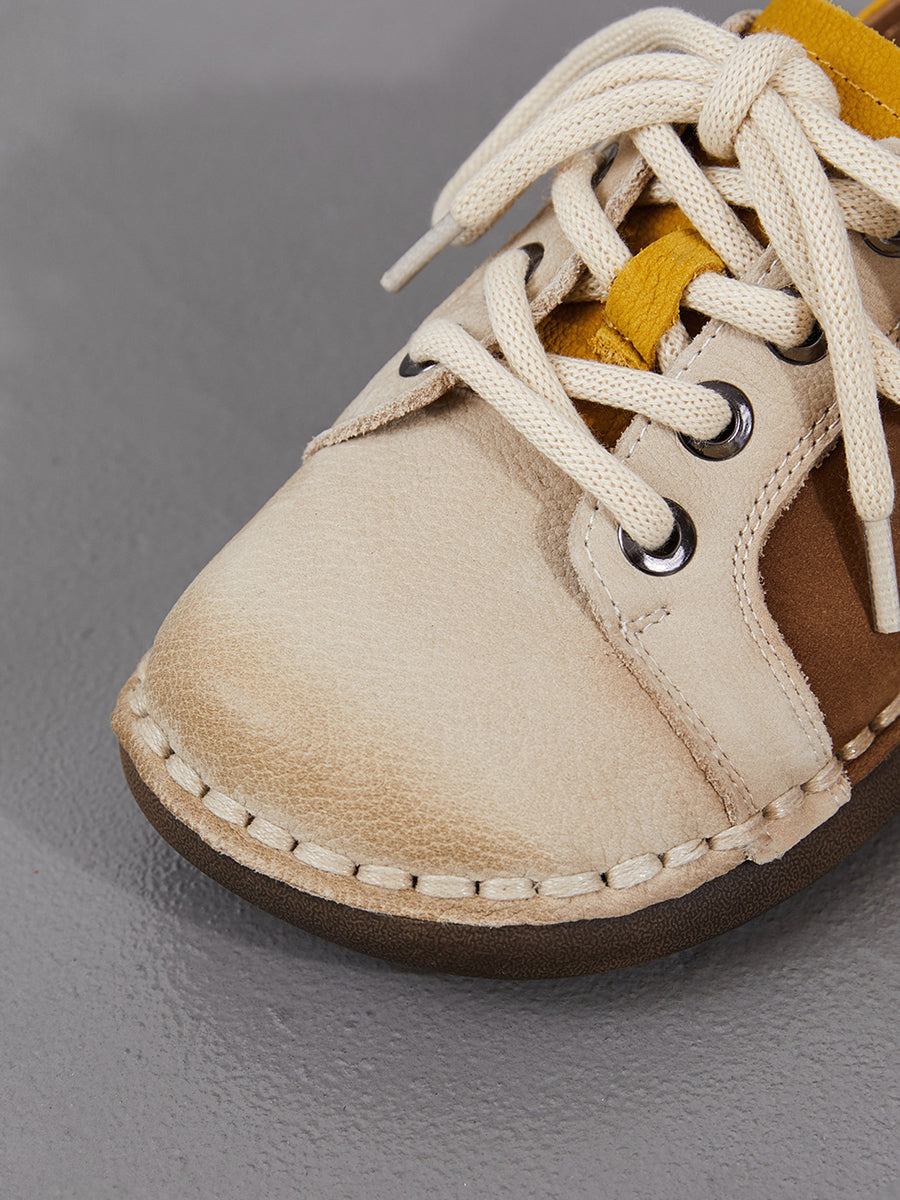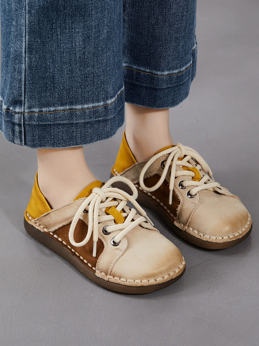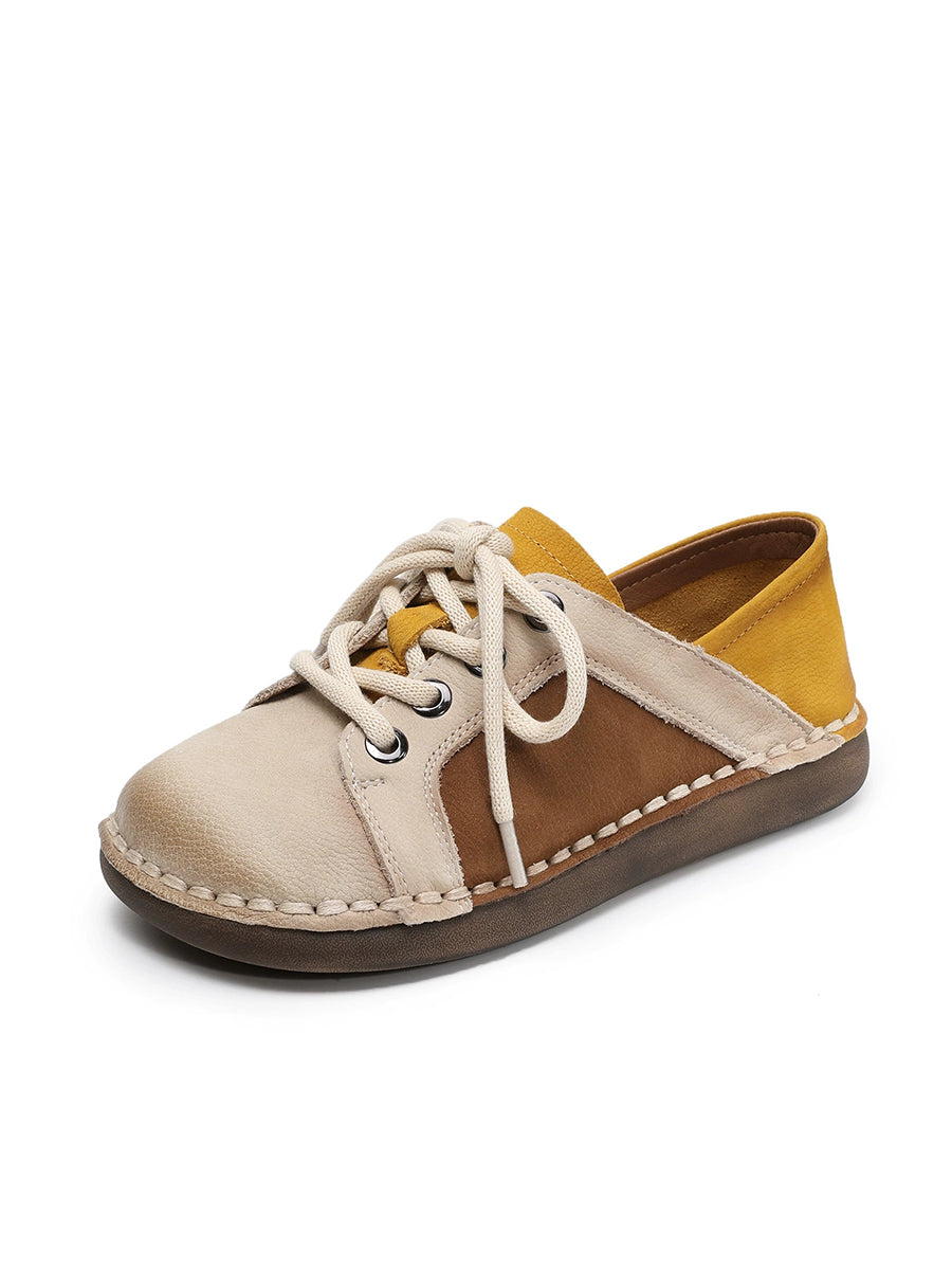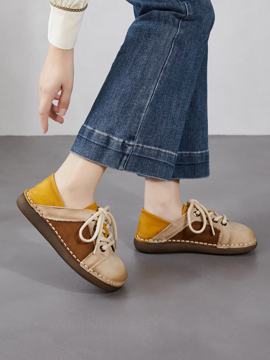 Zapatos planos vintage de piel auténtica con empalmes para mujer, primavera