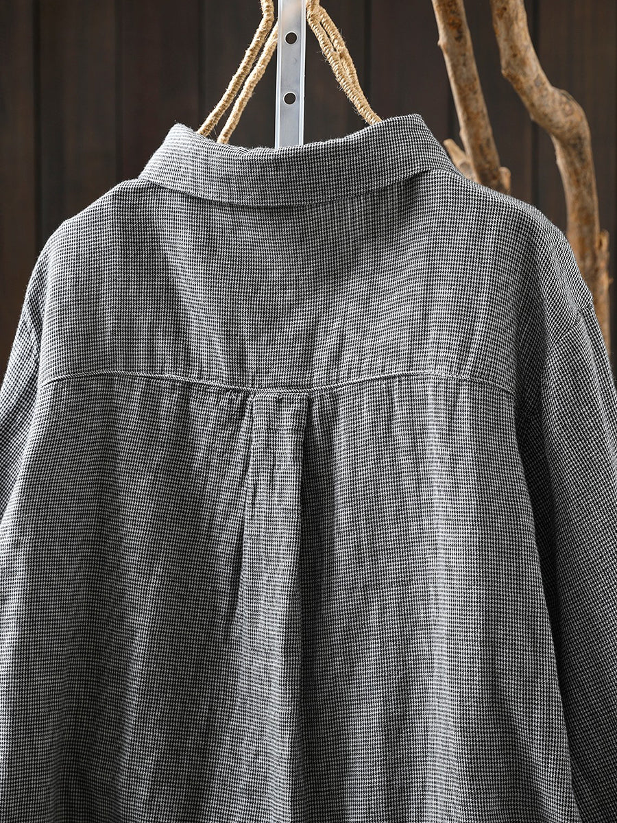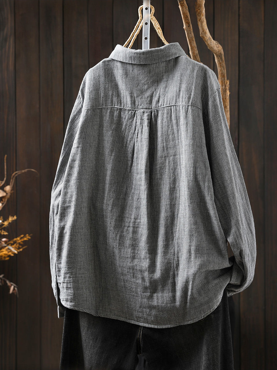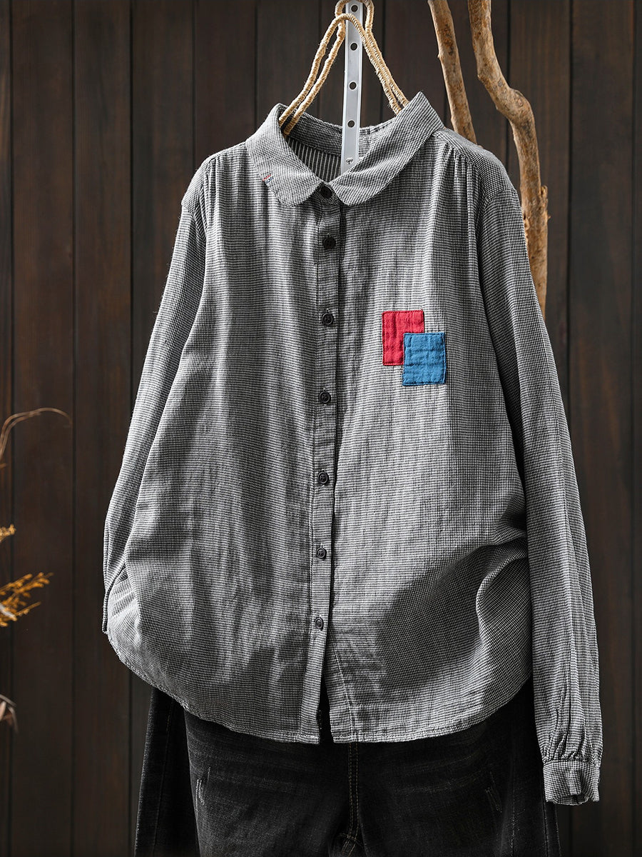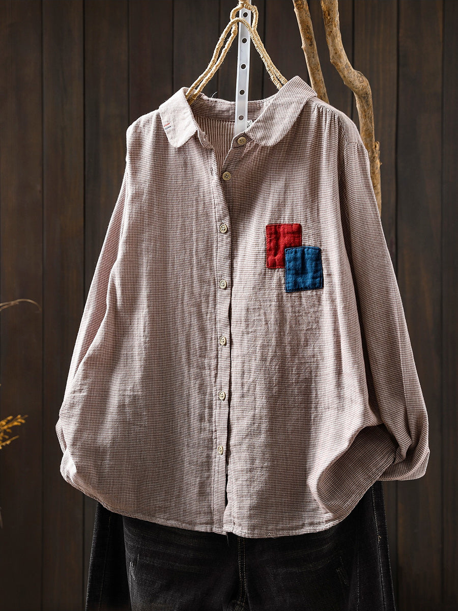 Camisa de mujer de primavera vintage con diseño de patchwork enrejado 100 % algodón