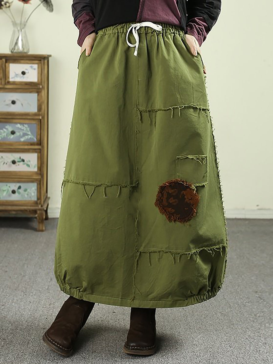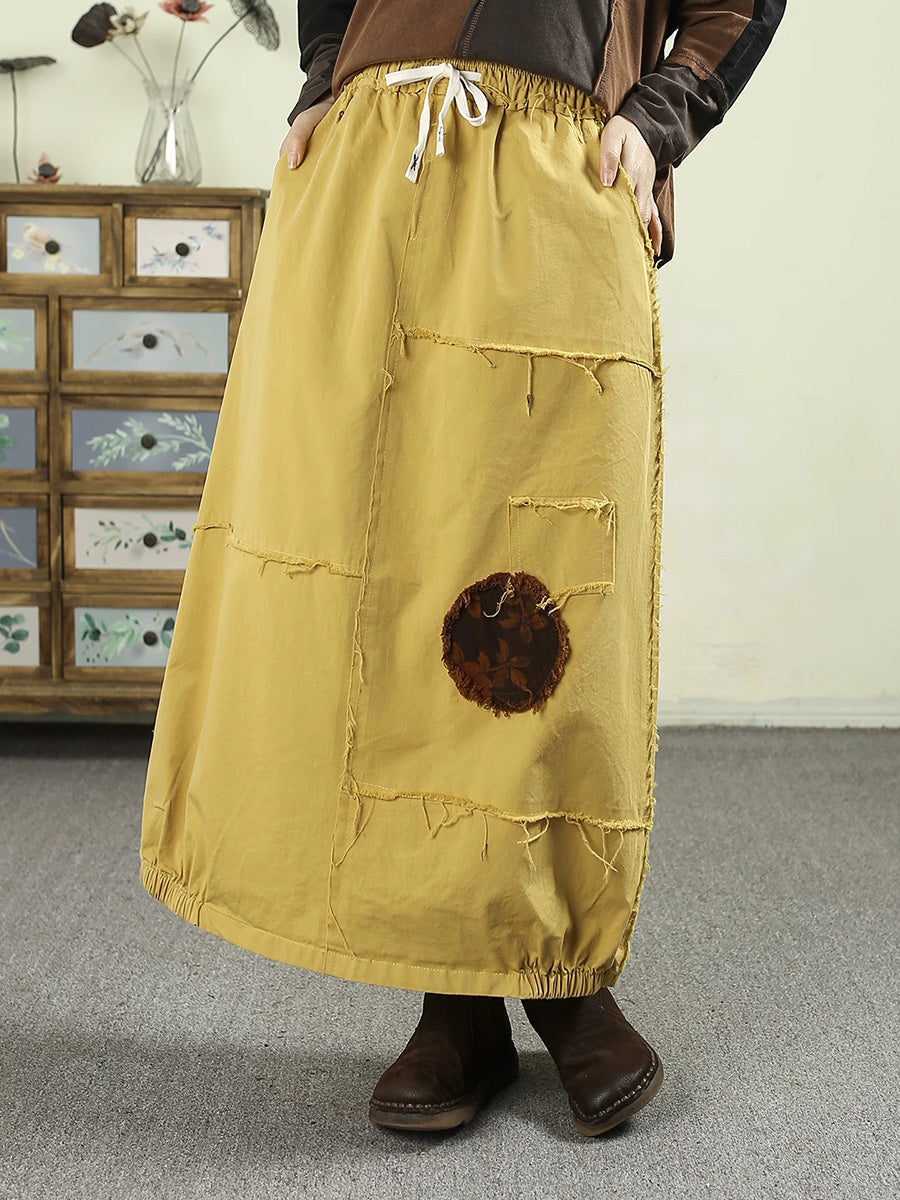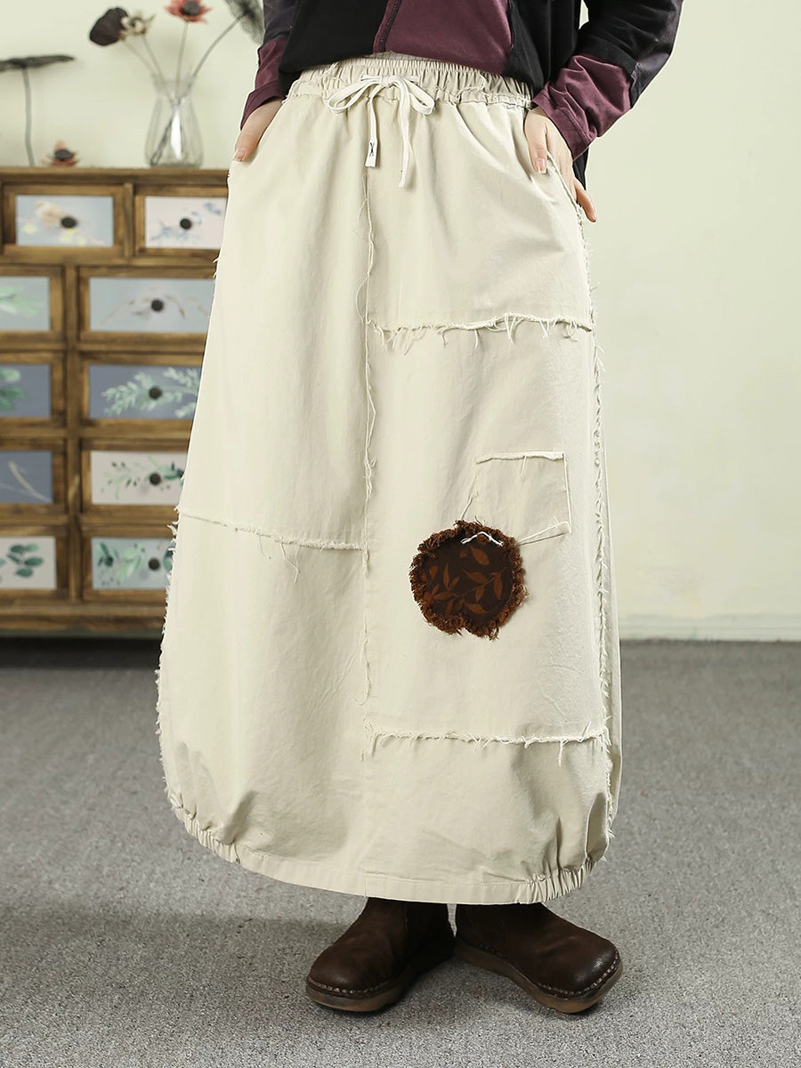Falda de algodón 100 % con parche desgastado de primavera para mujer