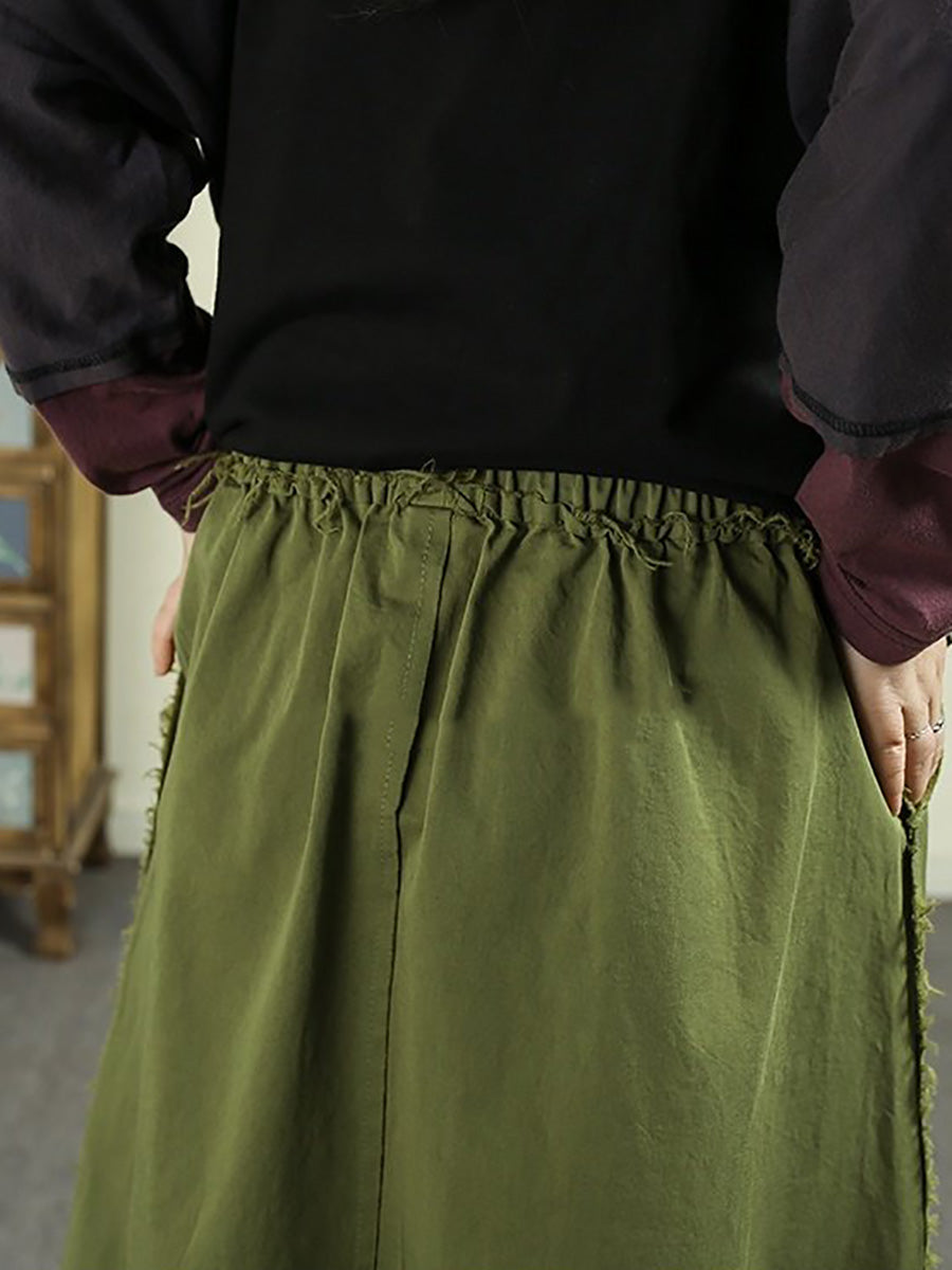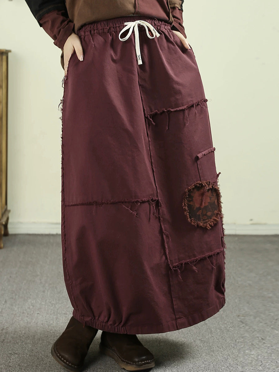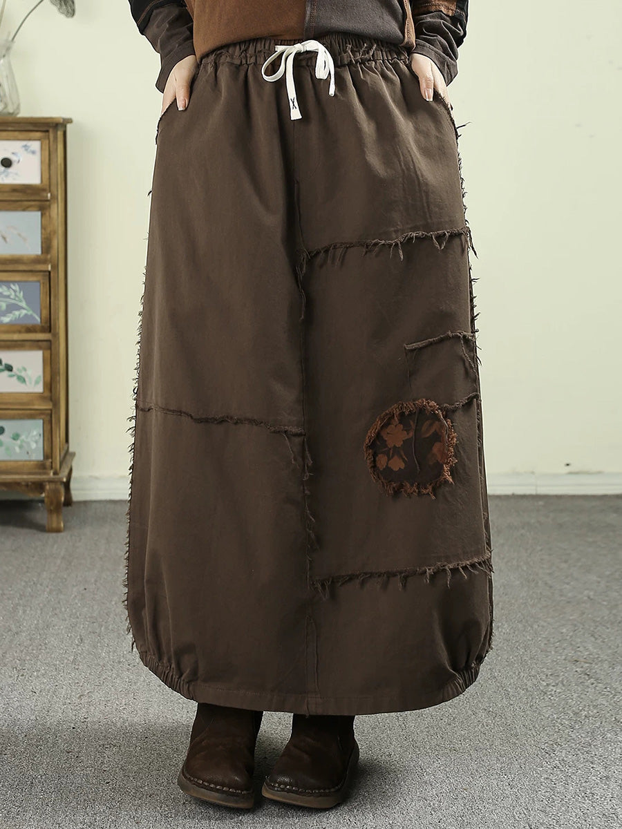 Falda de algodón 100 % con parche desgastado de primavera para mujer