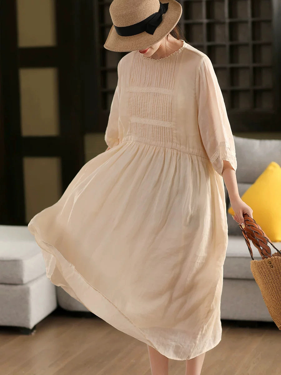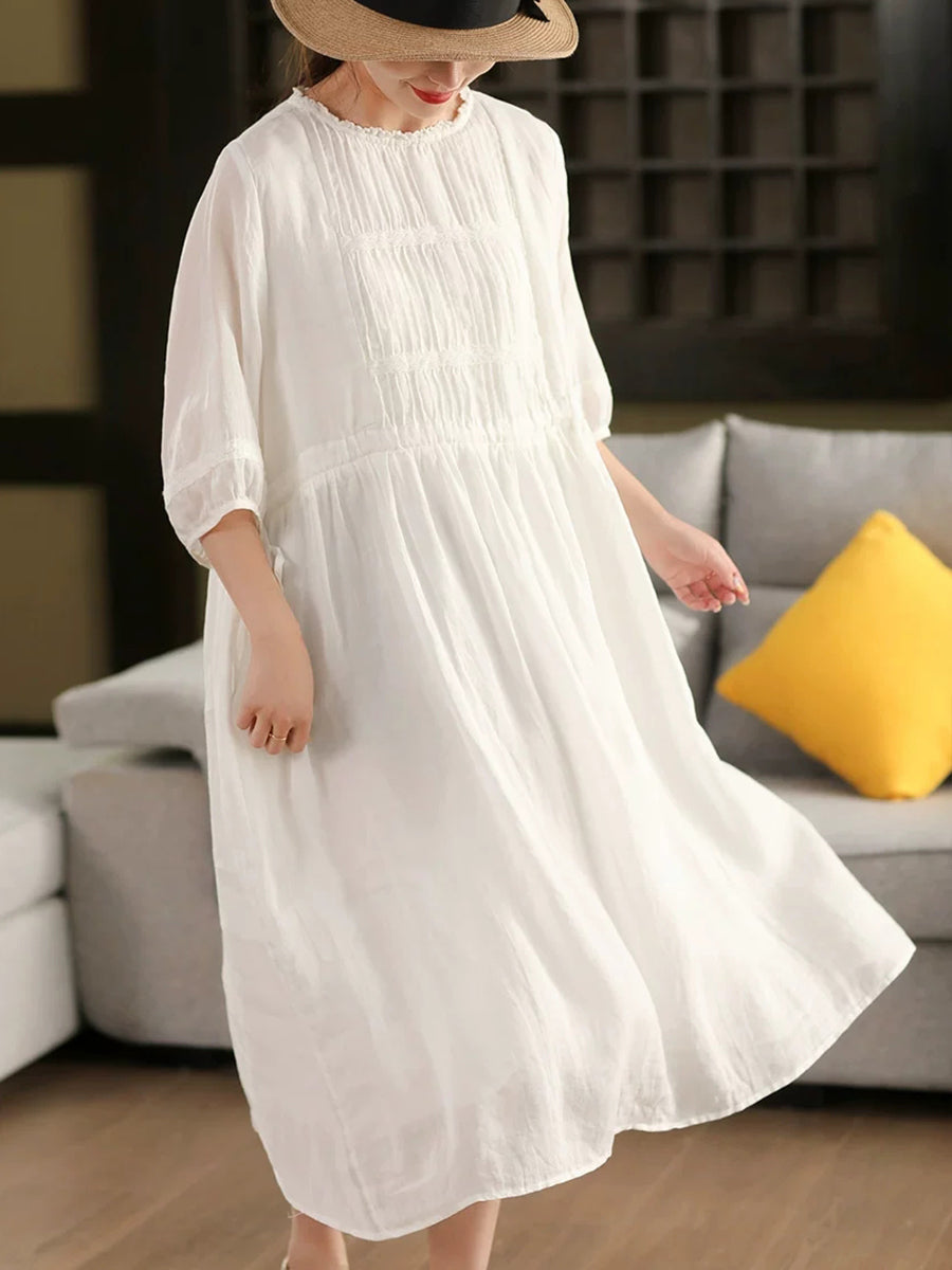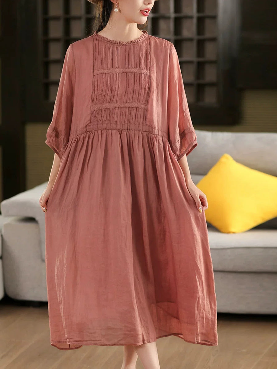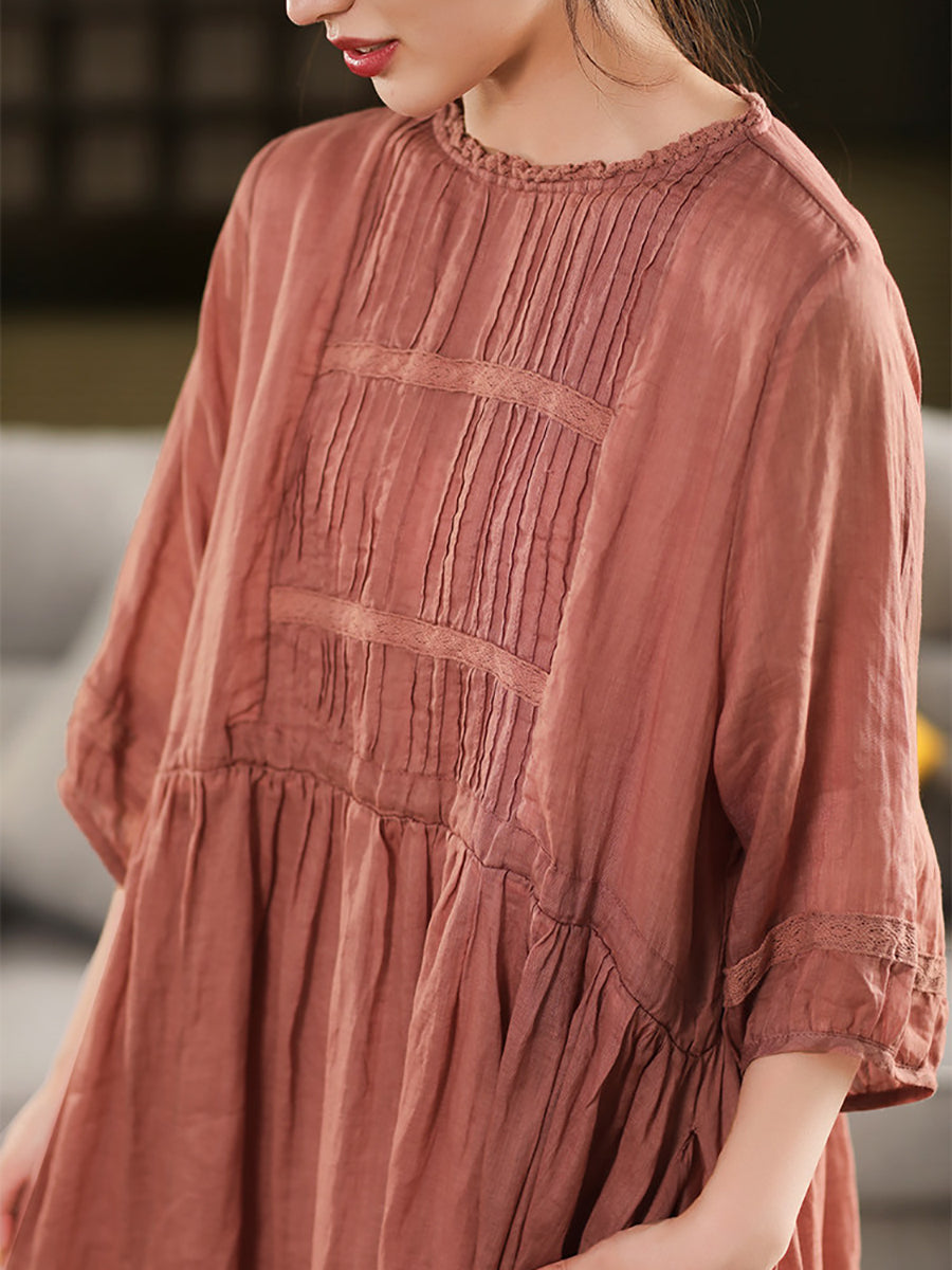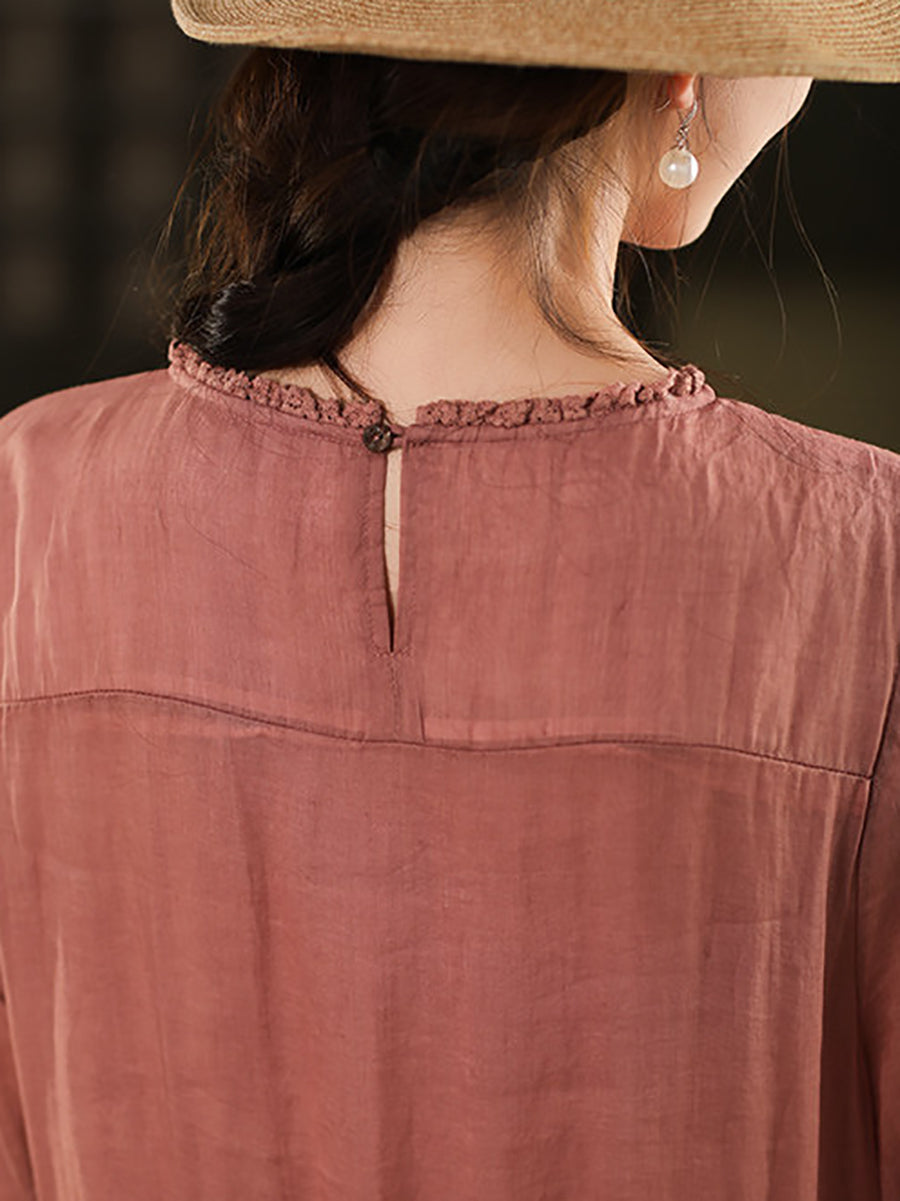 Blusa de verano para mujer con cuello redondo, 100 % ramio y diseño artístico