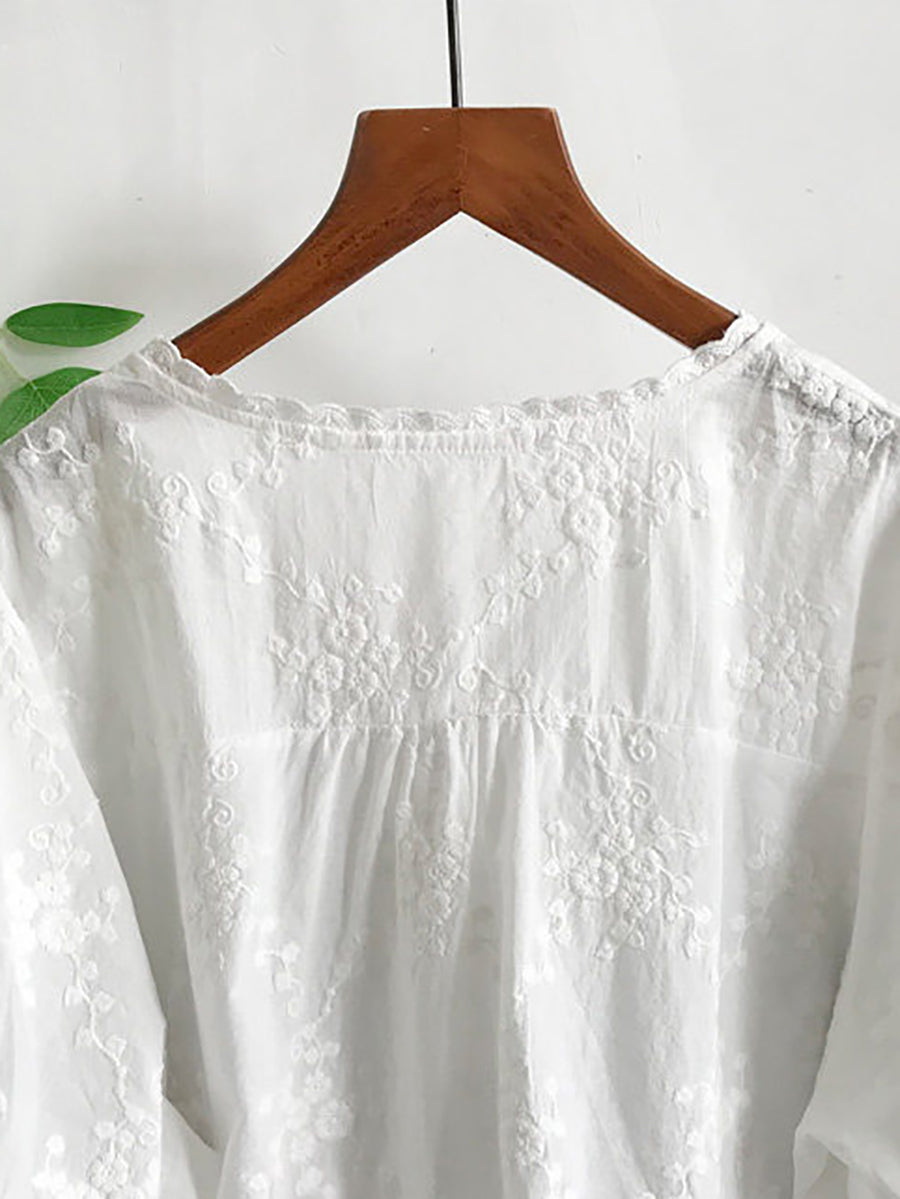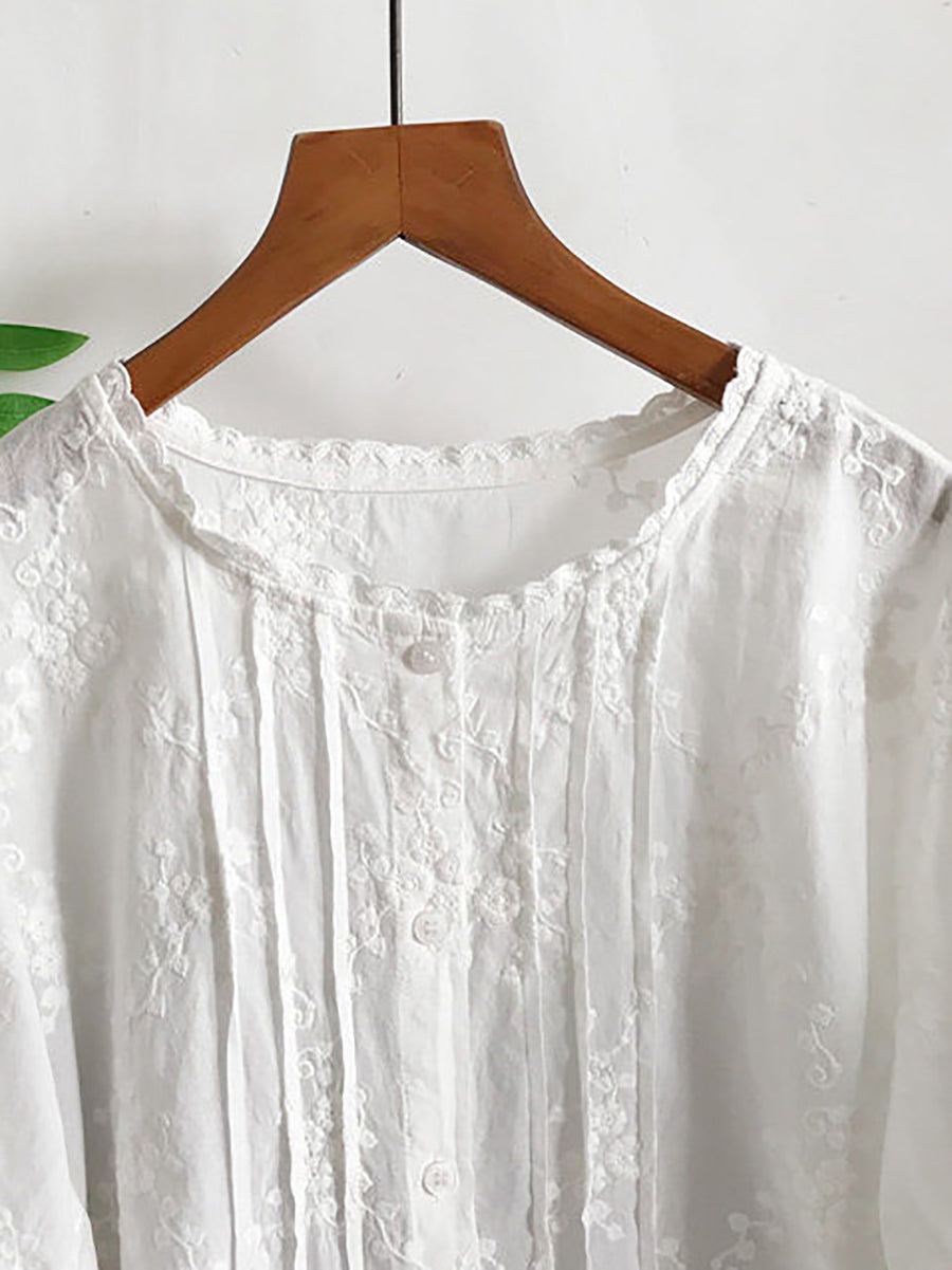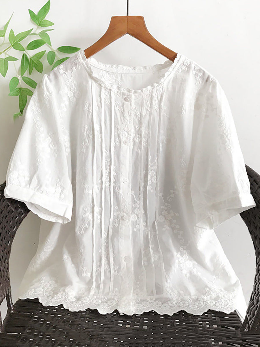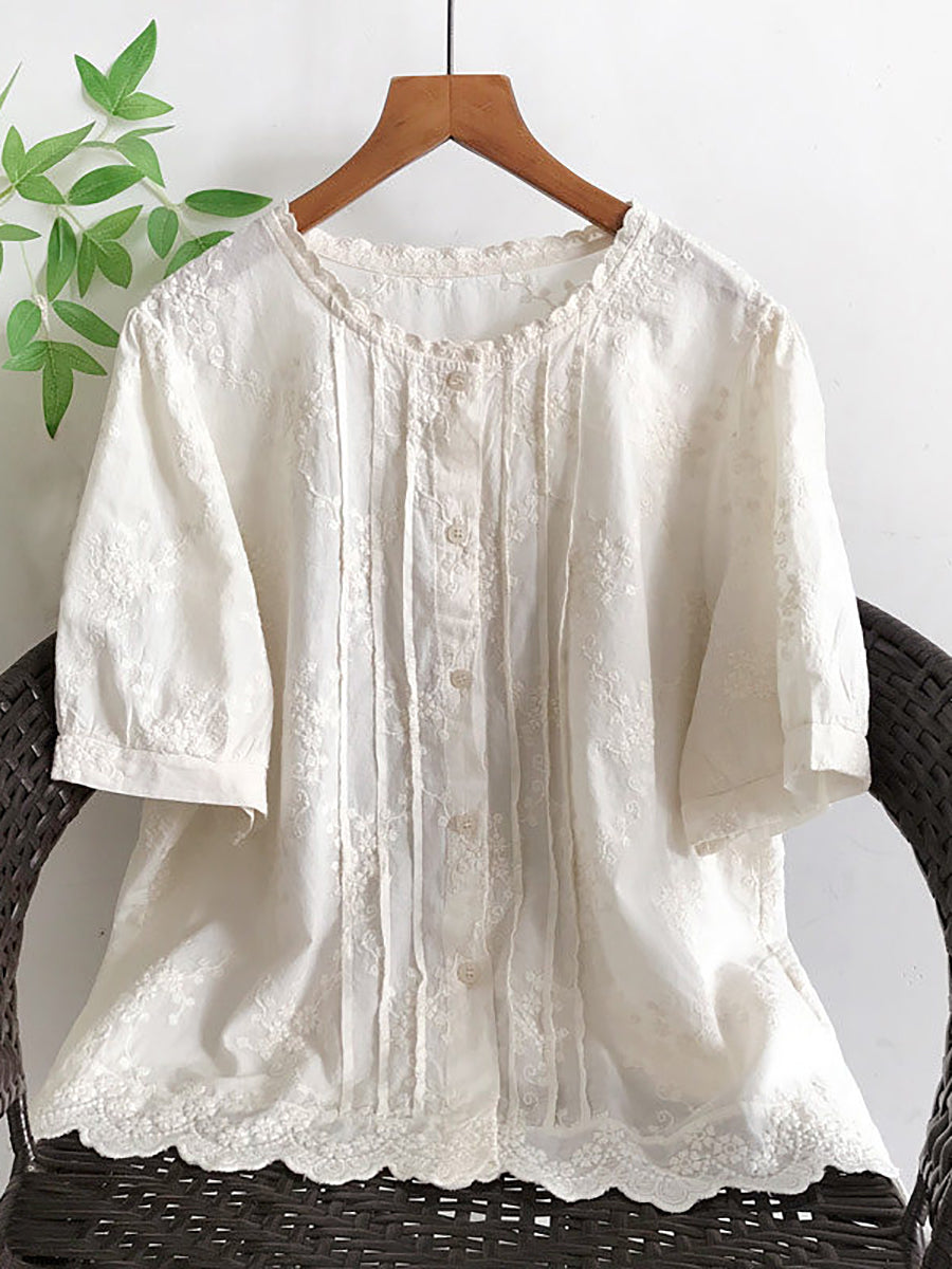 Blusa de verano para mujer con bordado artístico, 100% algodón y cuello redondo.