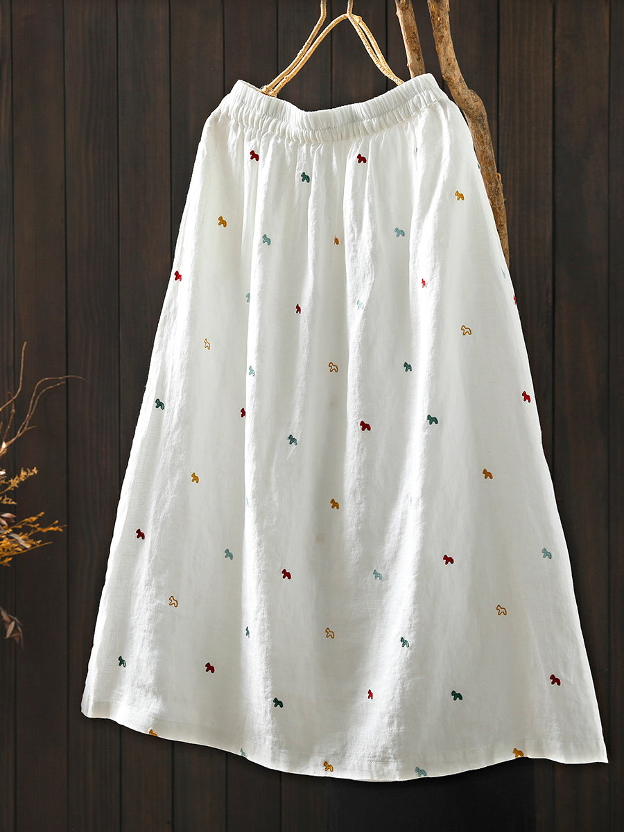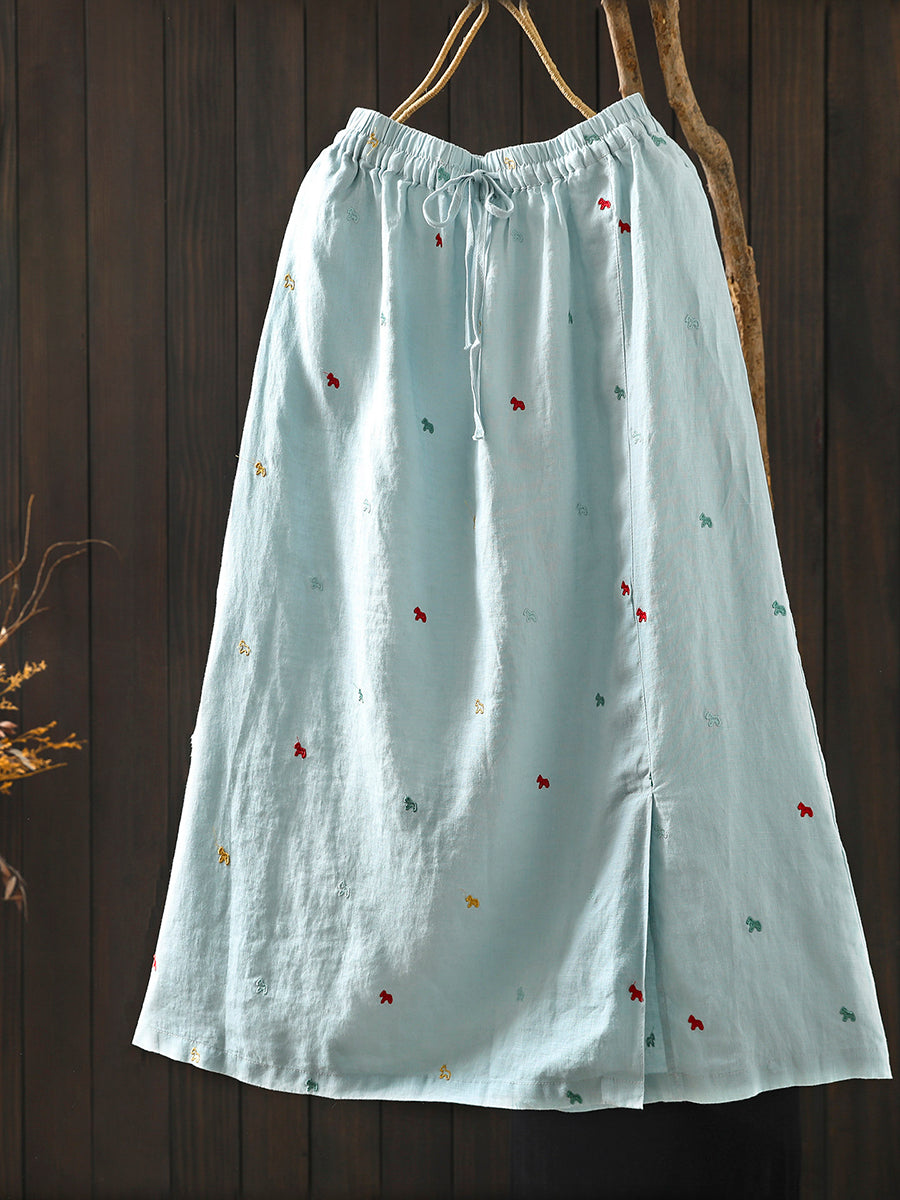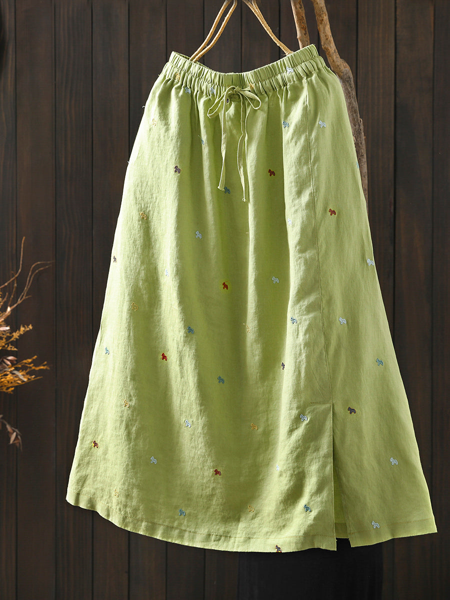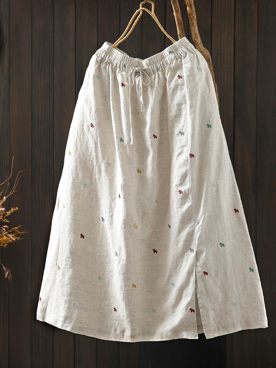Falda de verano para mujer con bordado artístico, 100% lino.