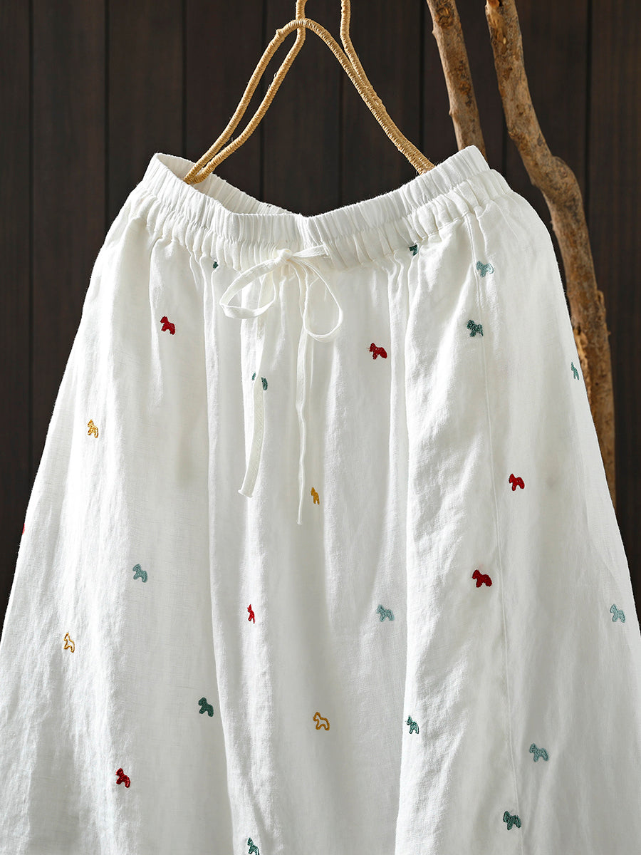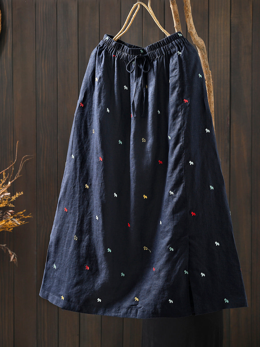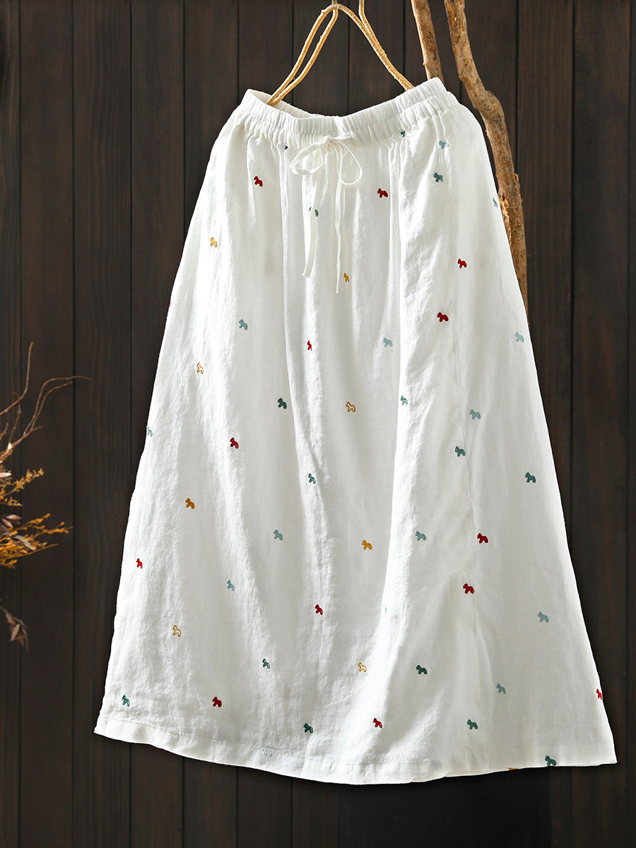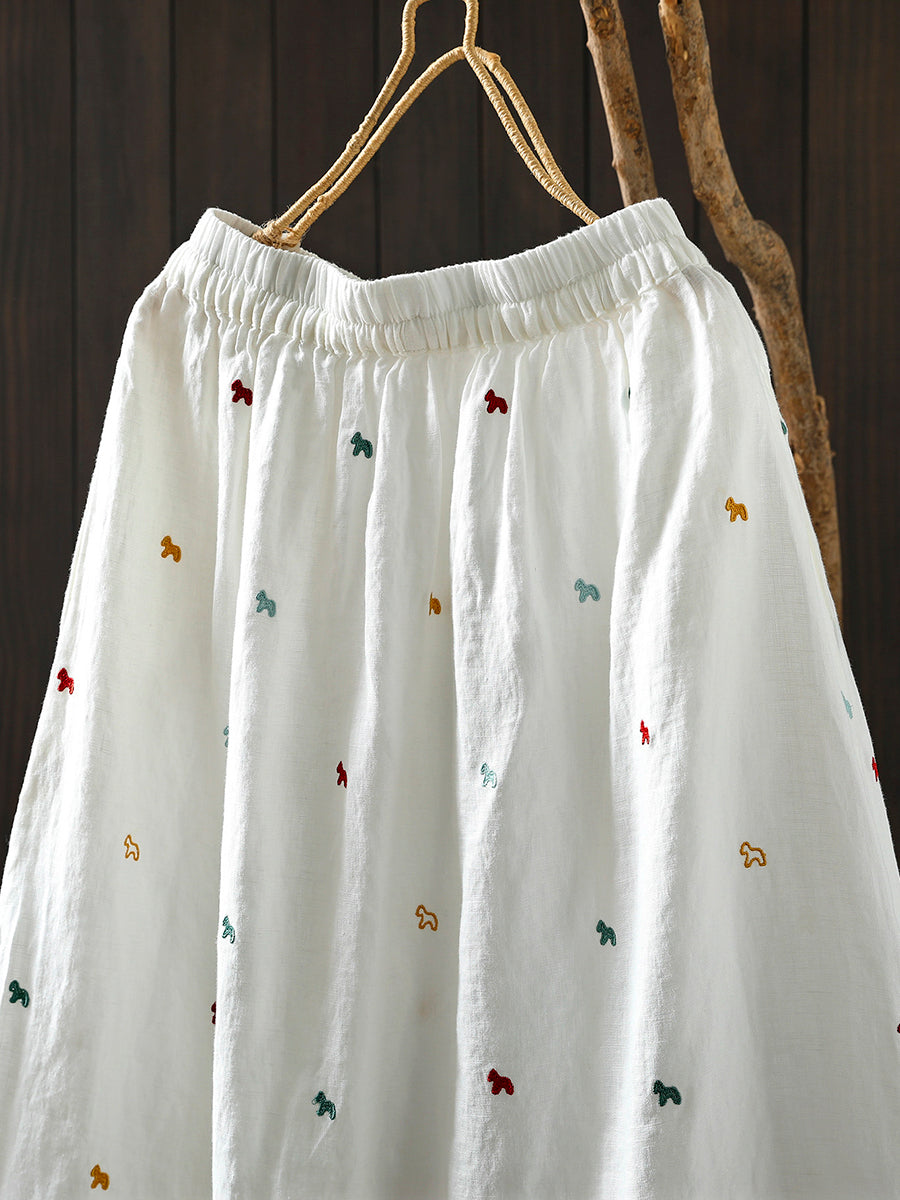 Falda de verano para mujer con bordado artístico, 100% lino.