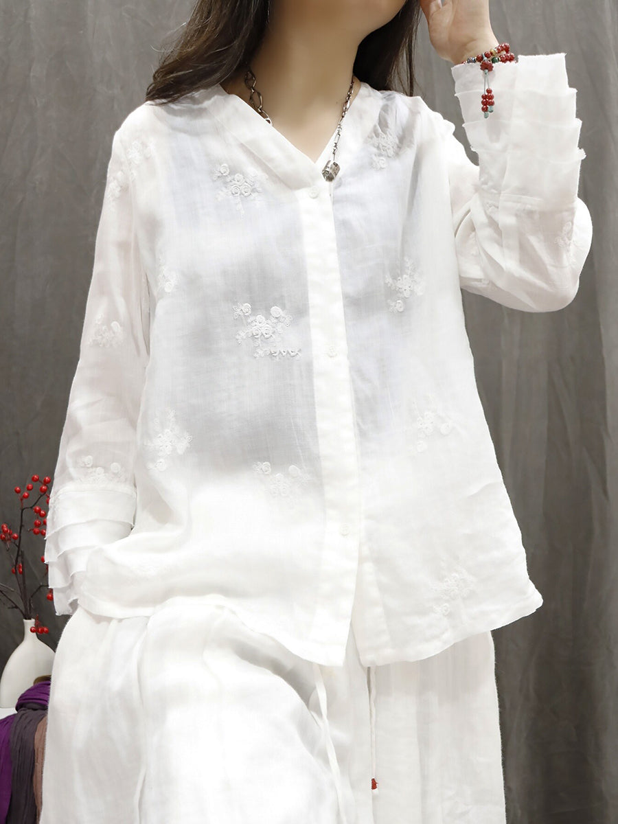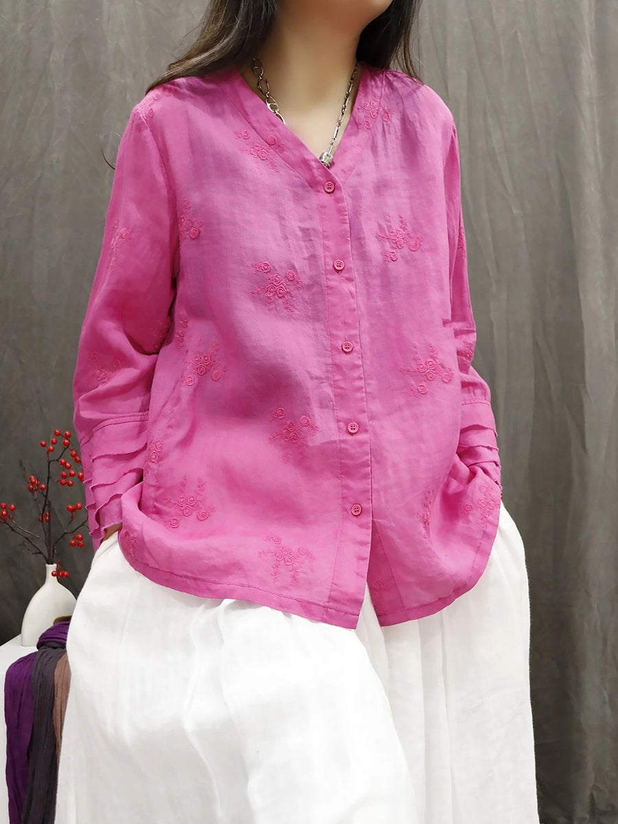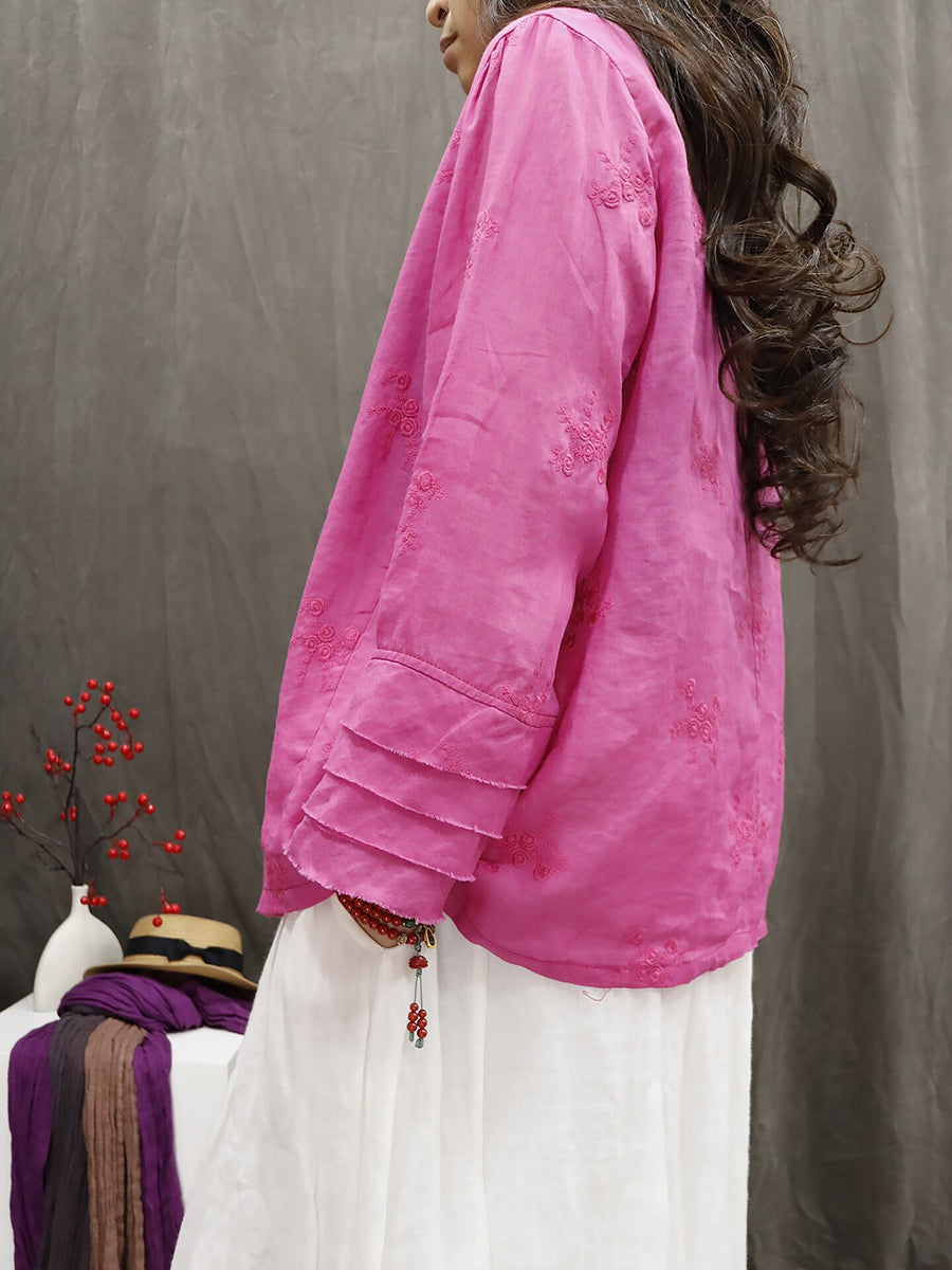 Camisa de verano para mujer con bordado artístico 100 % ramio