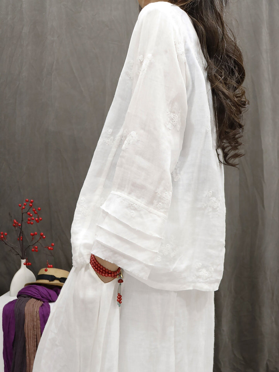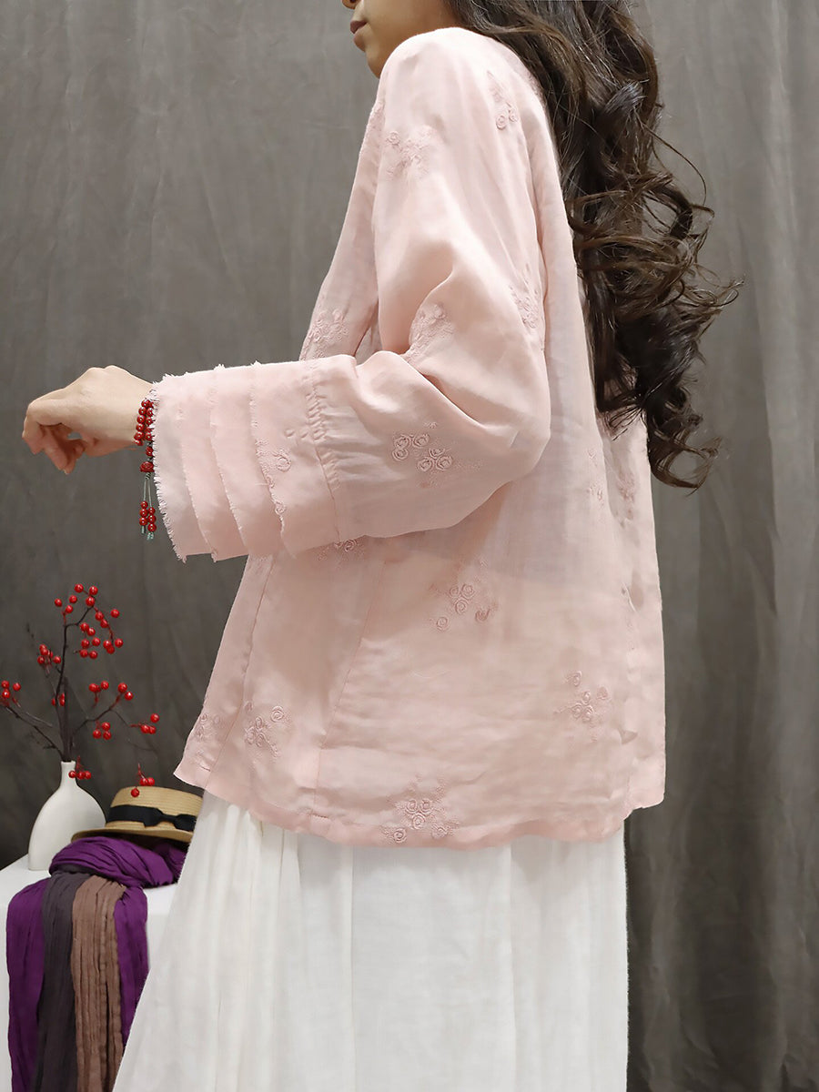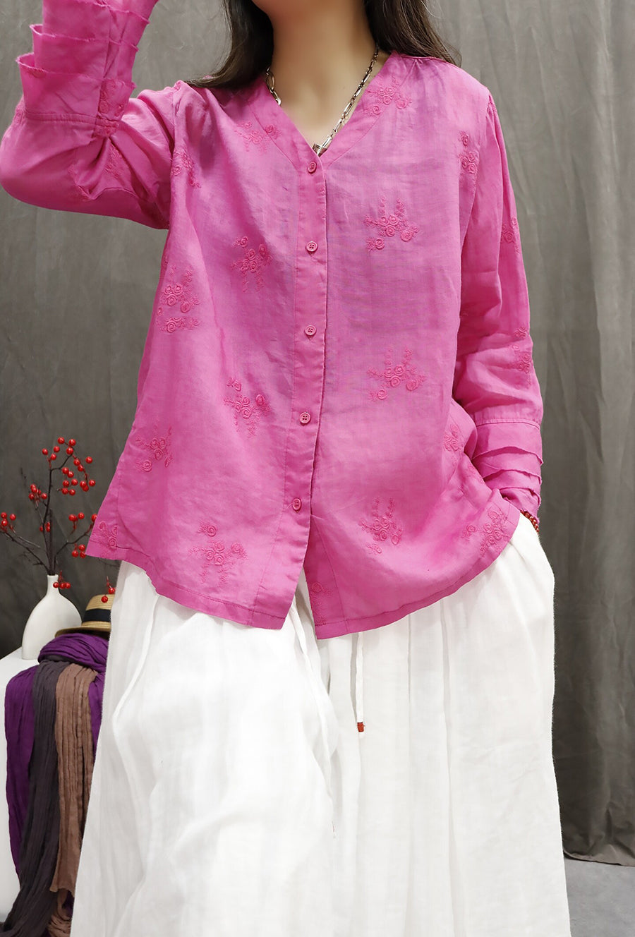Camisa de verano para mujer con bordado artístico 100 % ramio