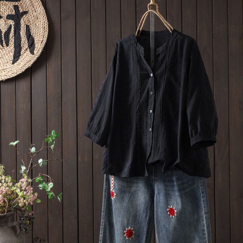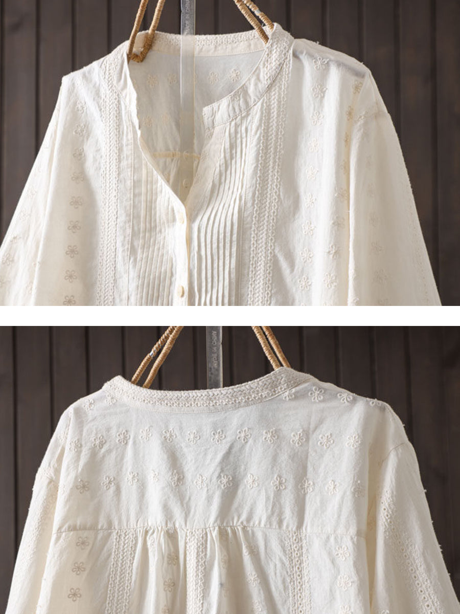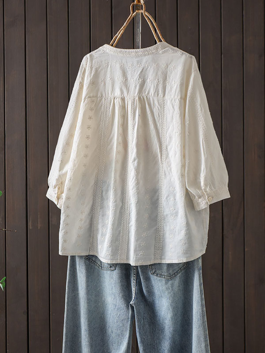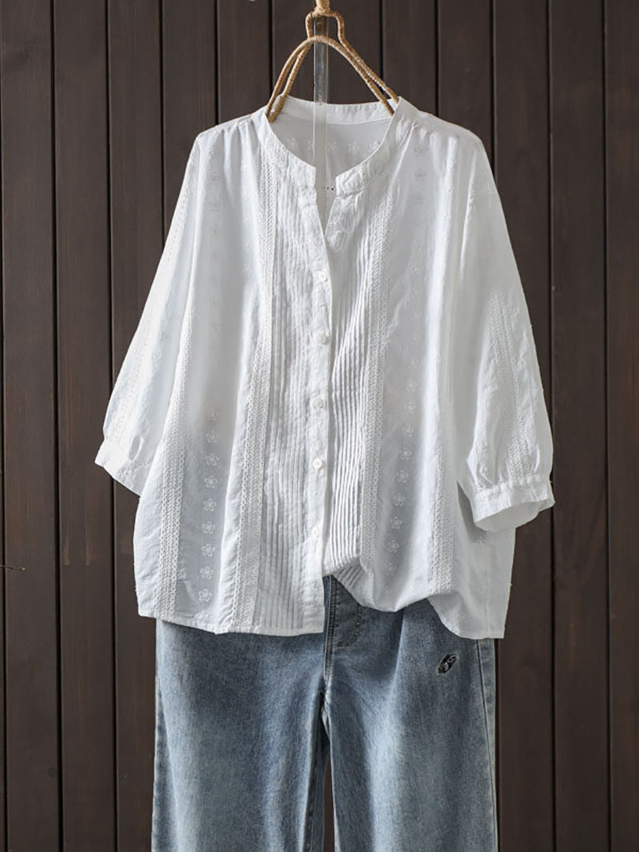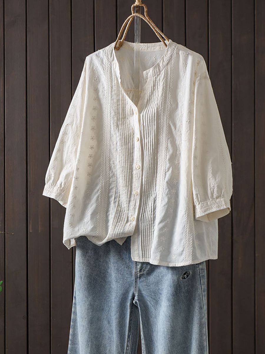 Blusa de verano para mujer con bordado artístico y fruncido, 100% algodón.