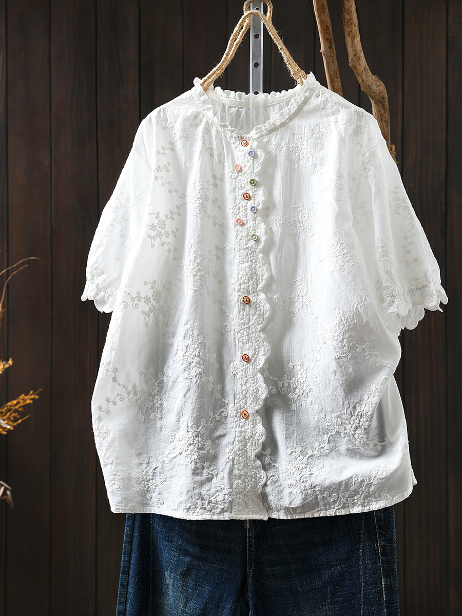 Camisa de verano para mujer con bordado floral artístico 100 % algodón