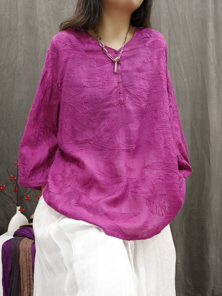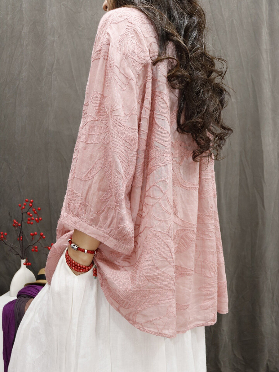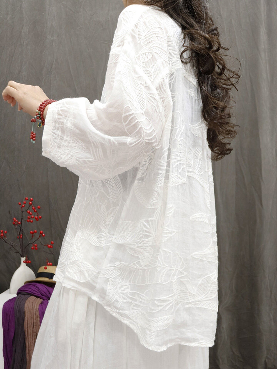 Blusa de verano para mujer con bordado floral artístico 100 % ramio