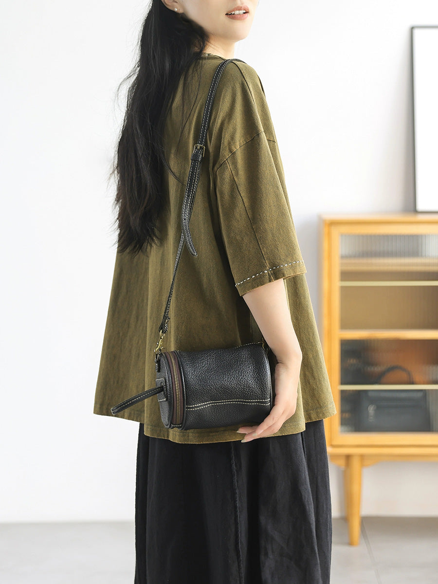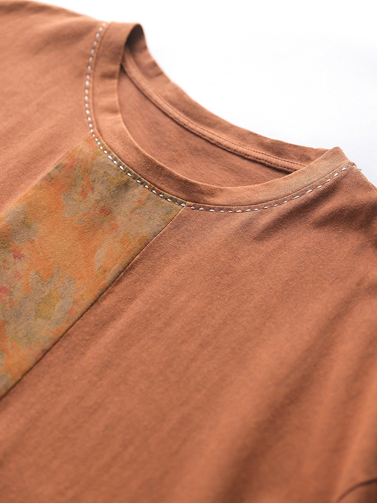 Camisa de verano para mujer, 100 % algodón, cuello redondo, con estampado floral artístico
