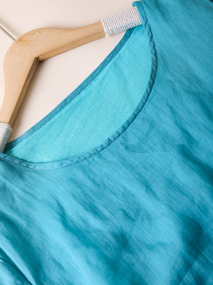 Vestido de verano para mujer, estilo artístico, color puro, cuello redondo, 100 % ramio