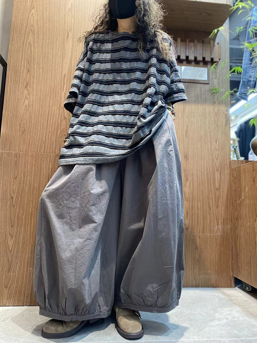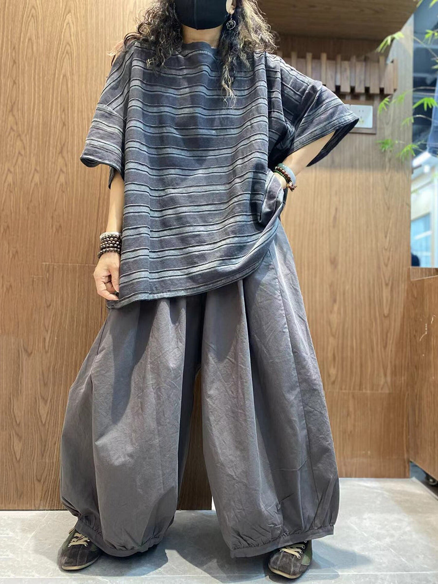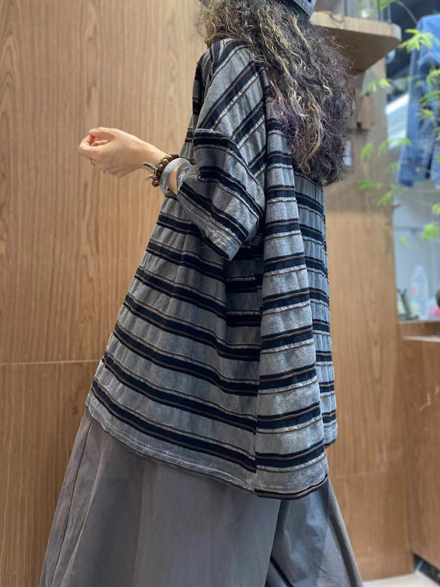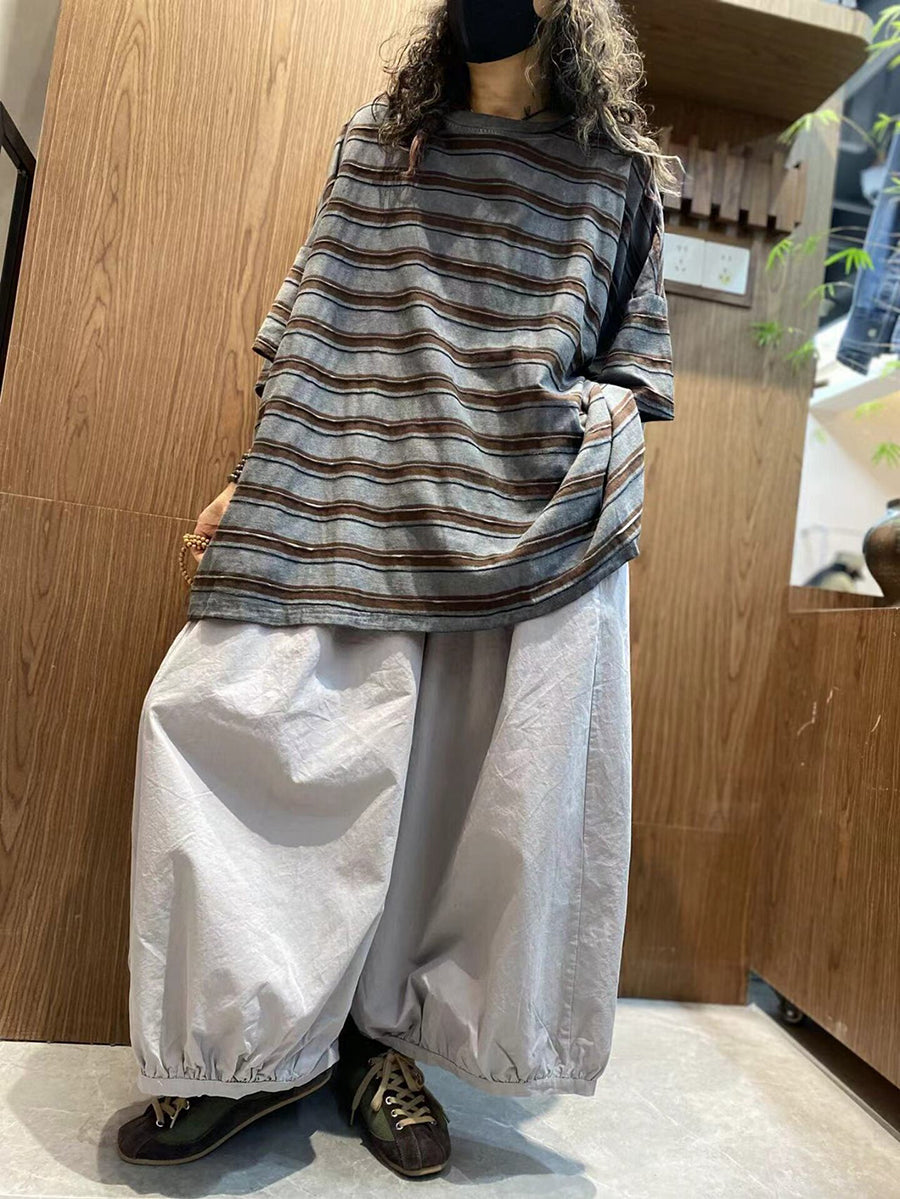 Blusa de algodón con cuello redondo y rayas artísticas de verano para mujer