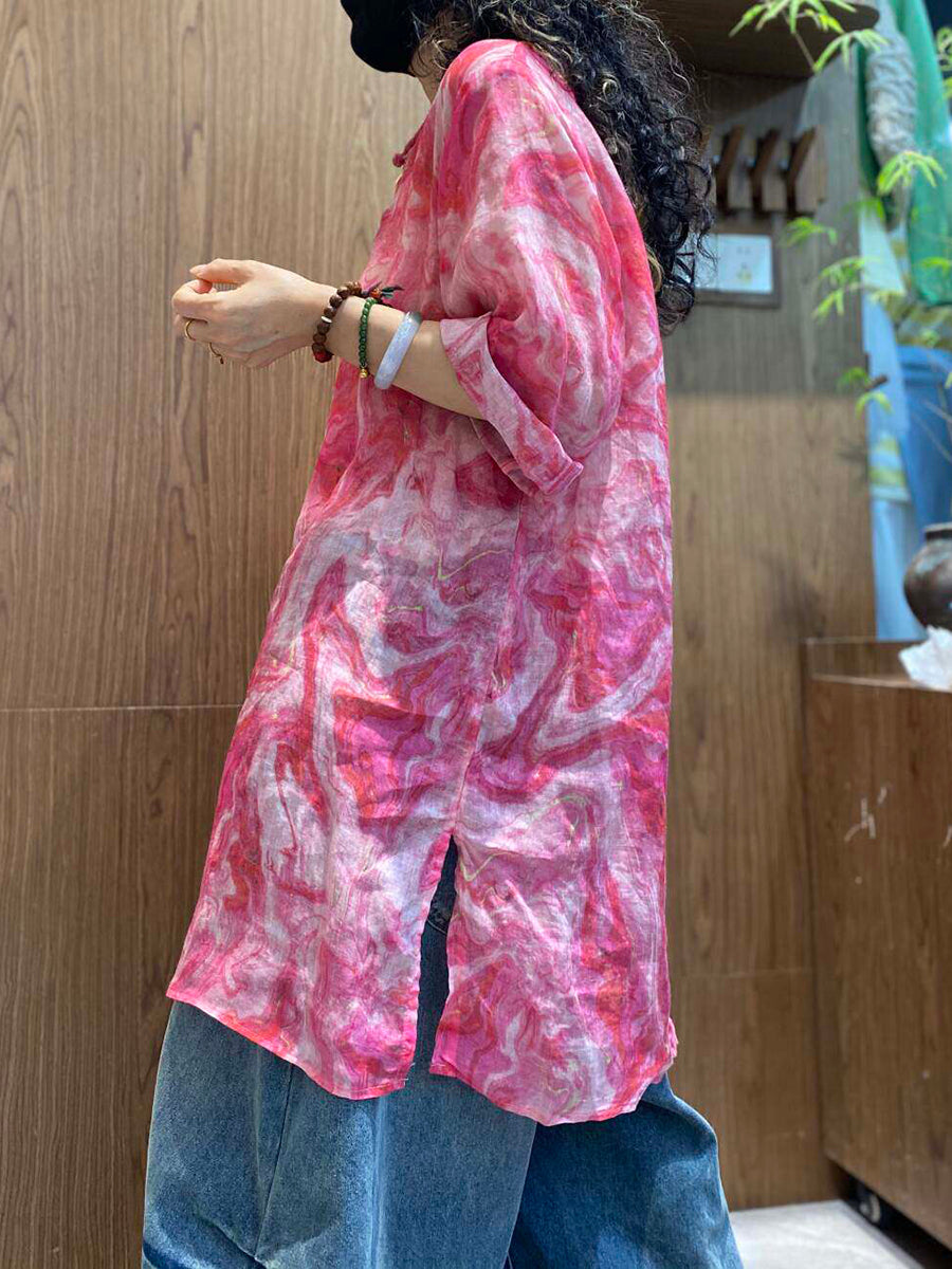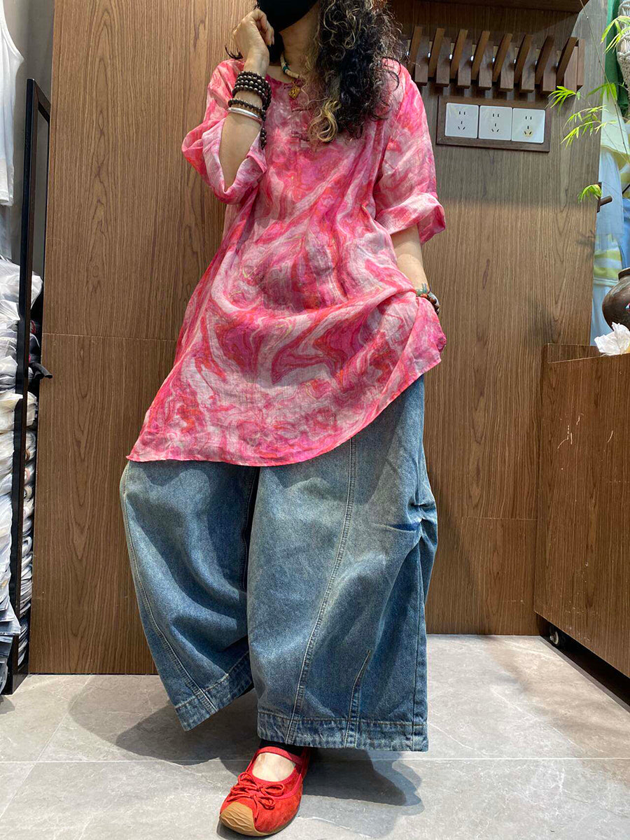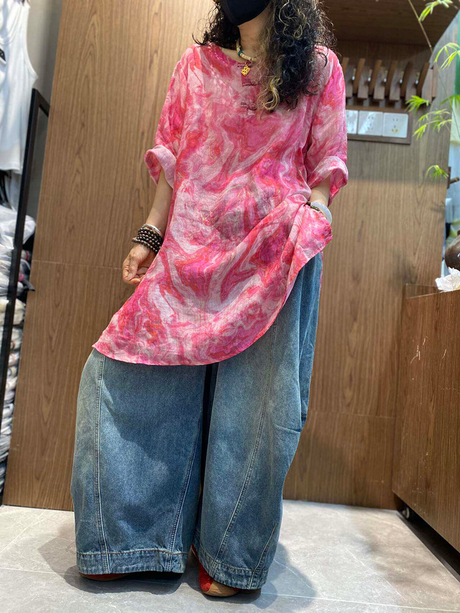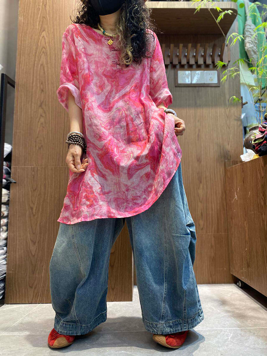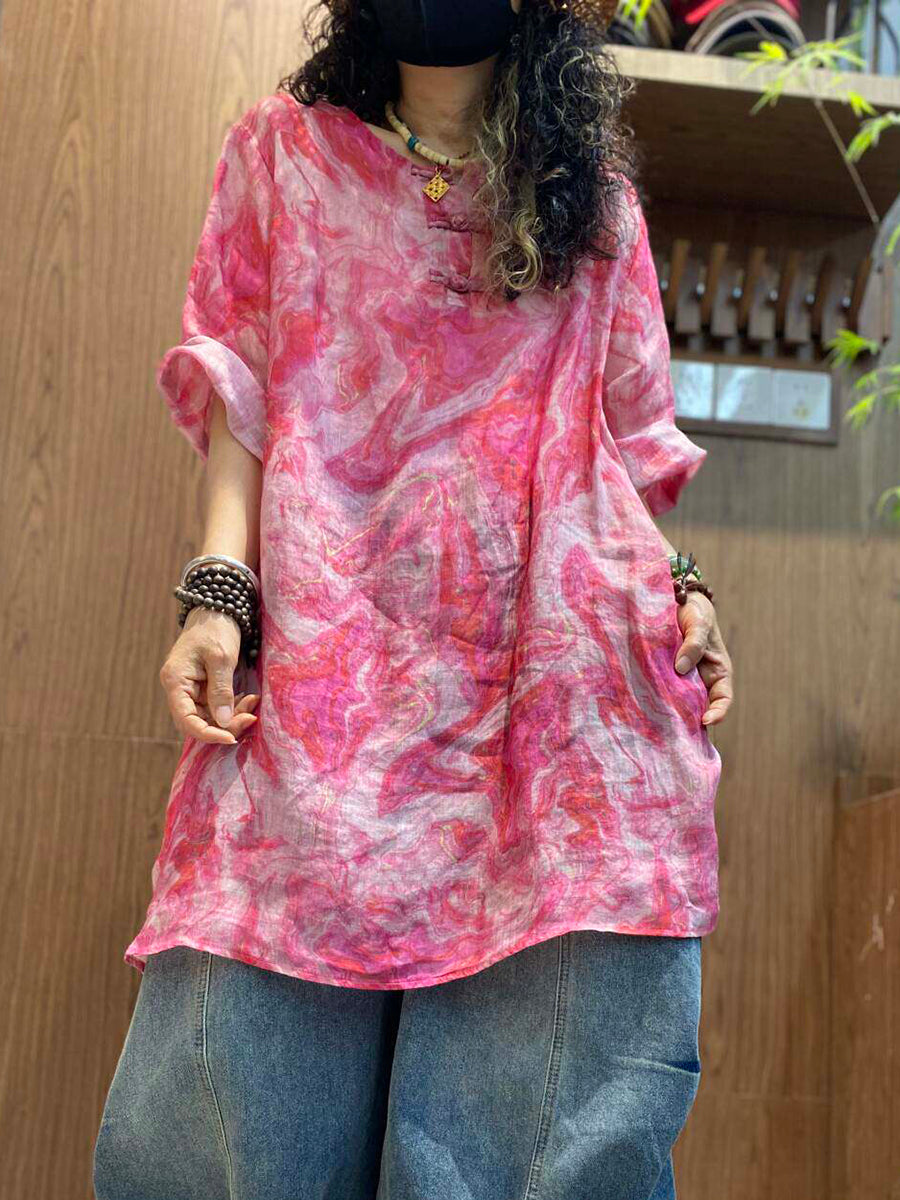 Blusa de ramio con estampado tie-dye artístico para mujer, ideal para el verano.
