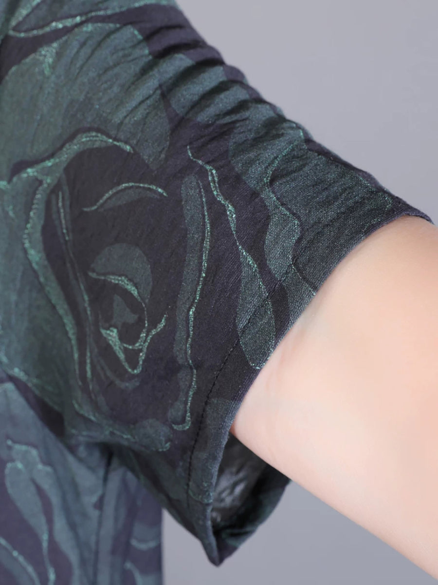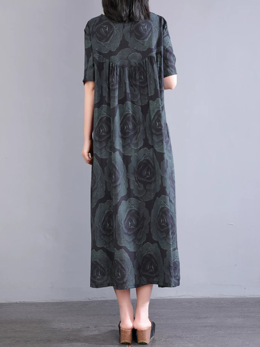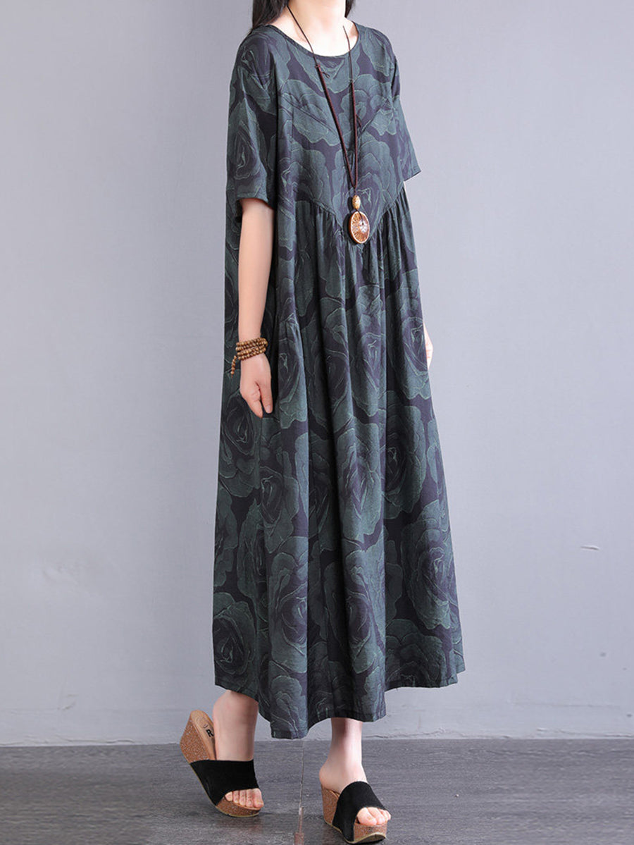 Vestido casual de verano para mujer, 100% algodón, con estampado floral y cuello redondo.