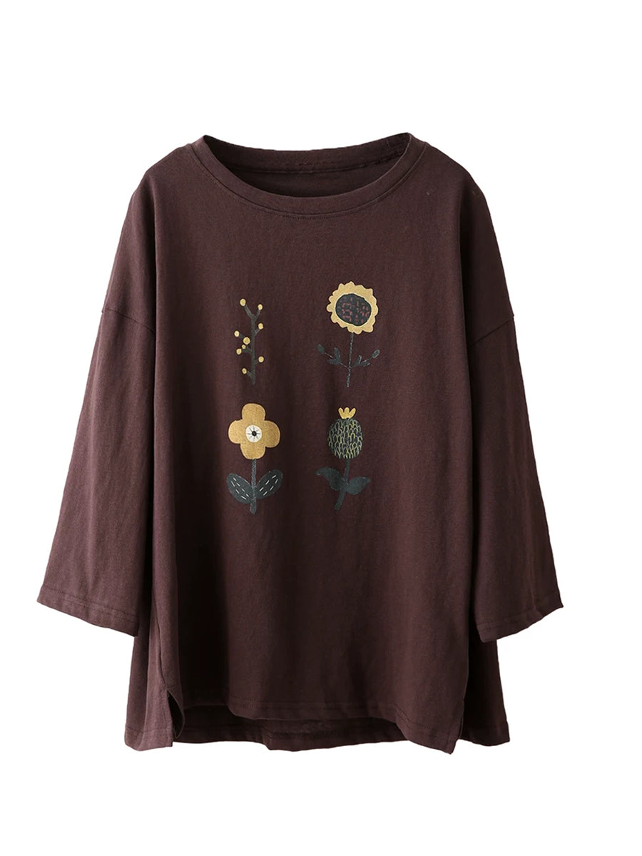Blusa informal de verano con cuello redondo y estampado floral para mujer.