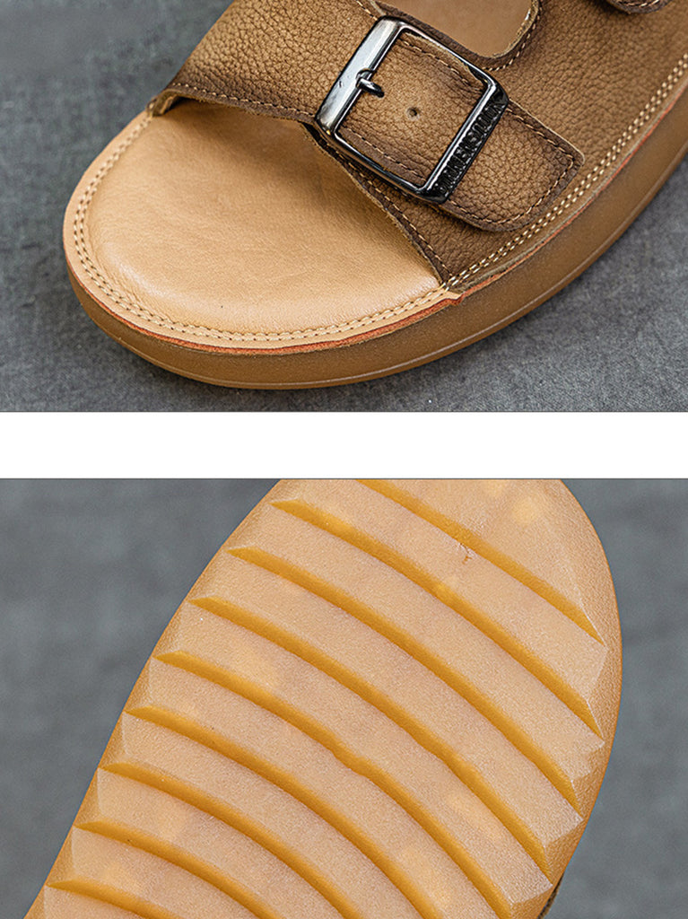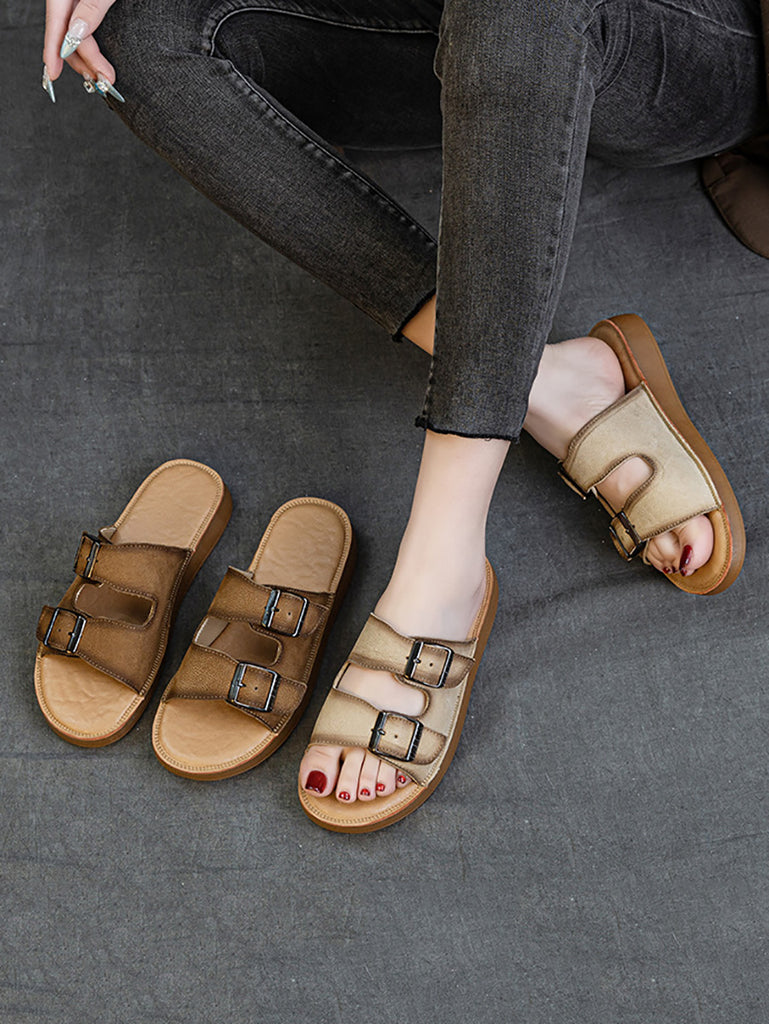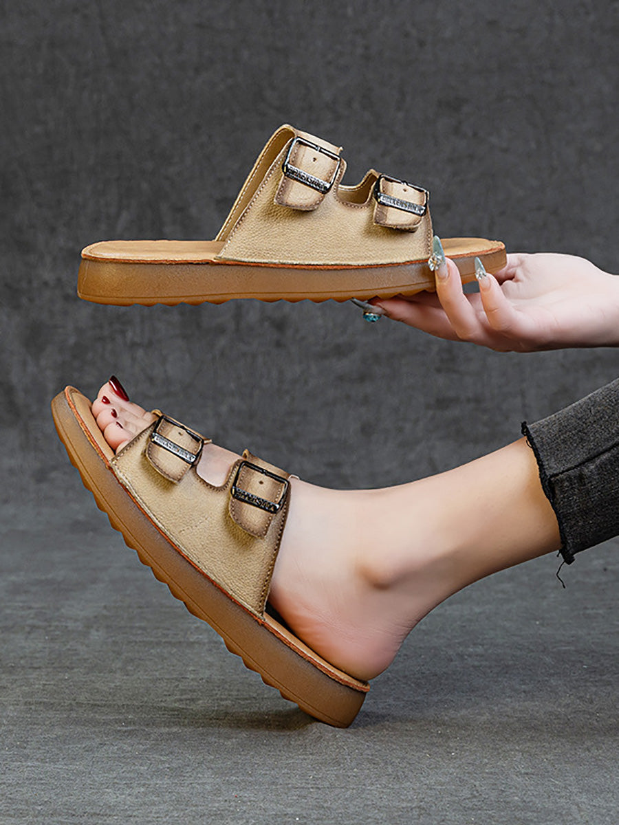 Zapatillas planas informales de verano de piel auténtica para mujer
