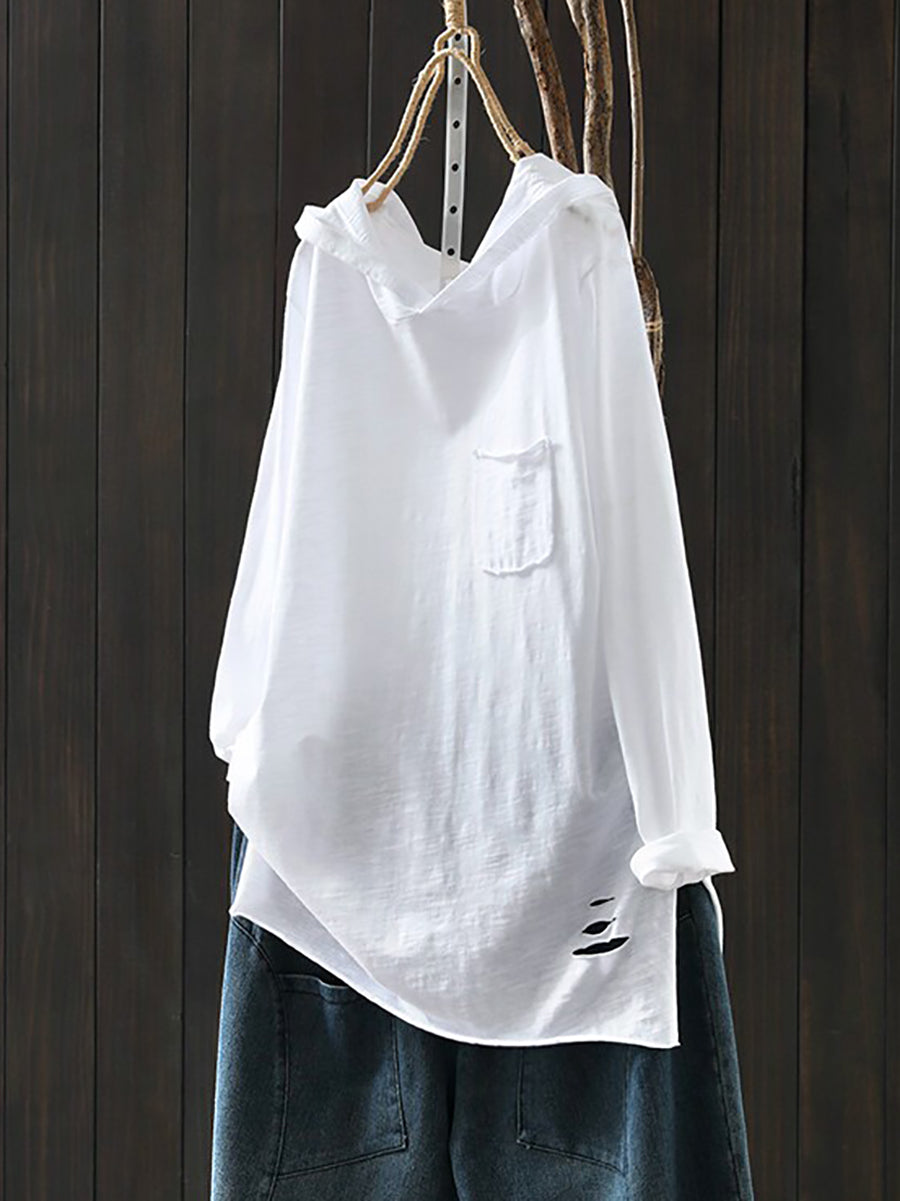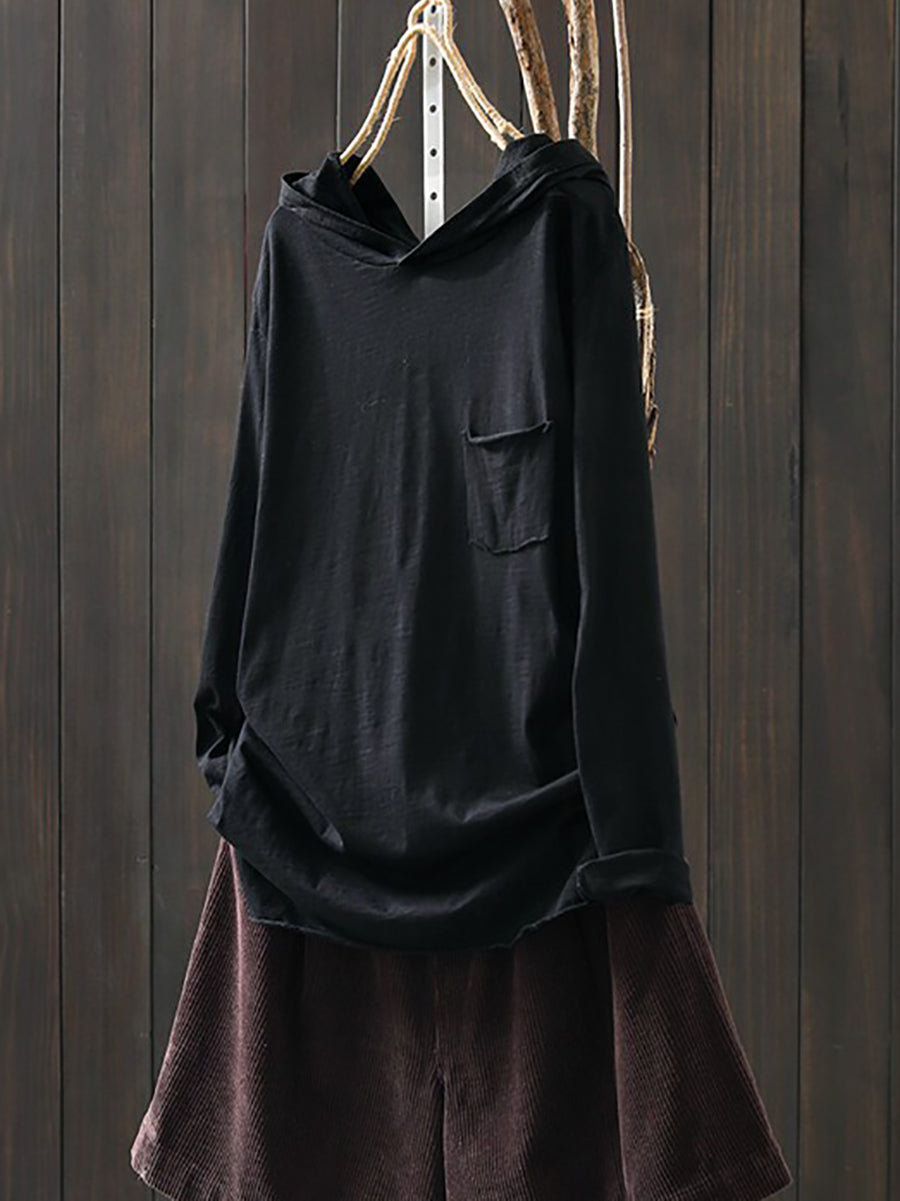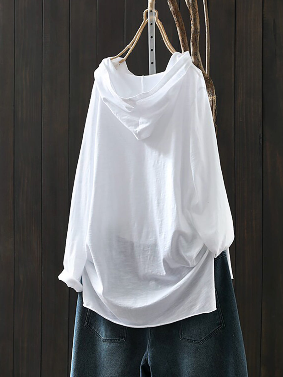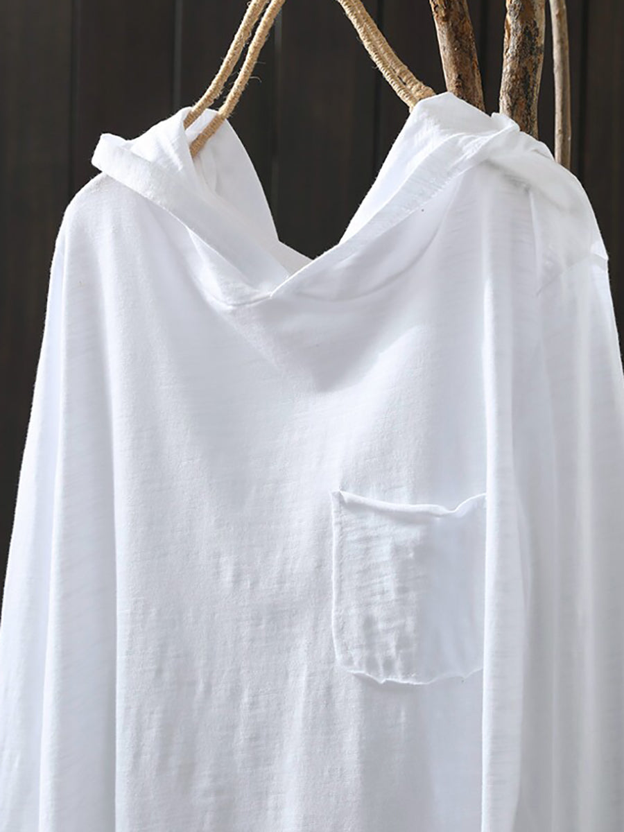 Sudadera con capucha informal de verano para mujer, color liso, 100 % algodón.