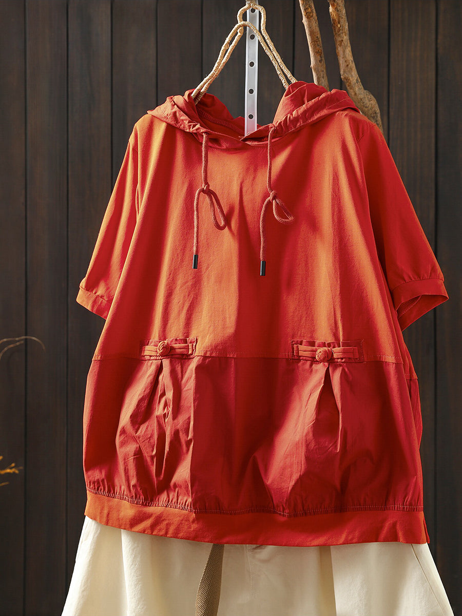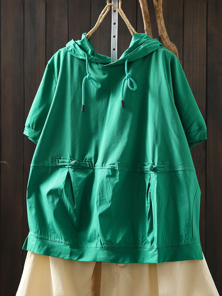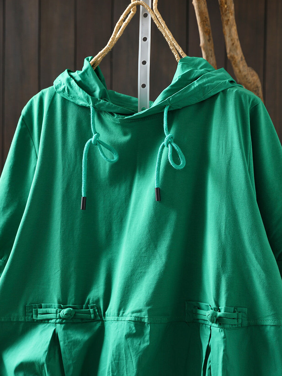 Sudadera con capucha informal de verano para mujer, color liso, 100 % algodón.