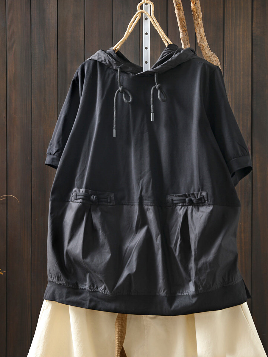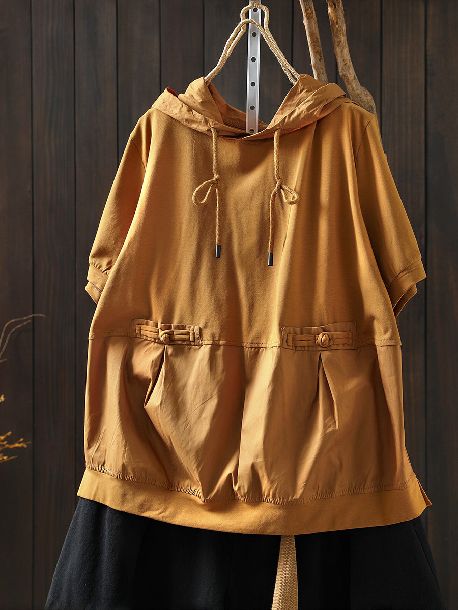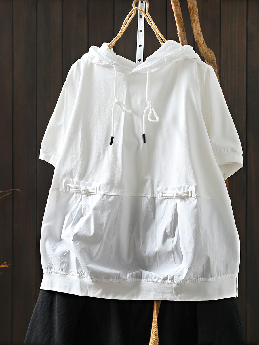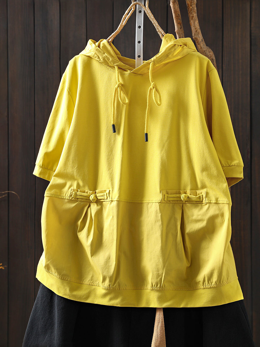 Sudadera con capucha informal de verano para mujer, color liso, 100 % algodón.