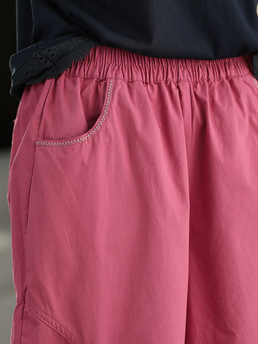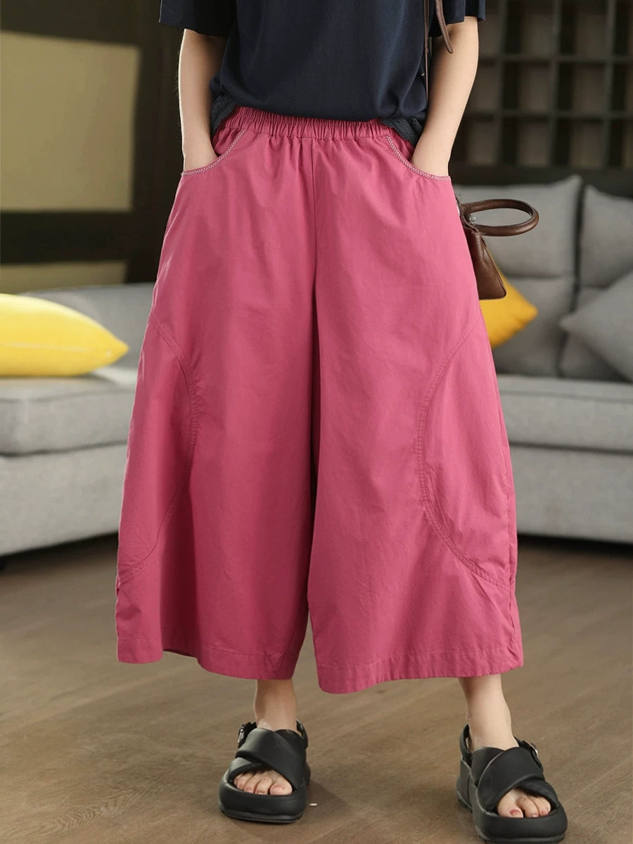 Pantalones de mujer casuales de verano, color liso, 100% algodón, pierna ancha.