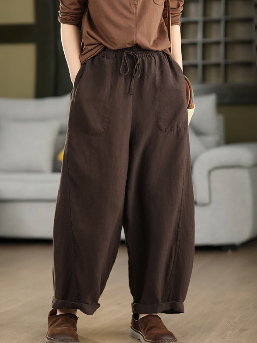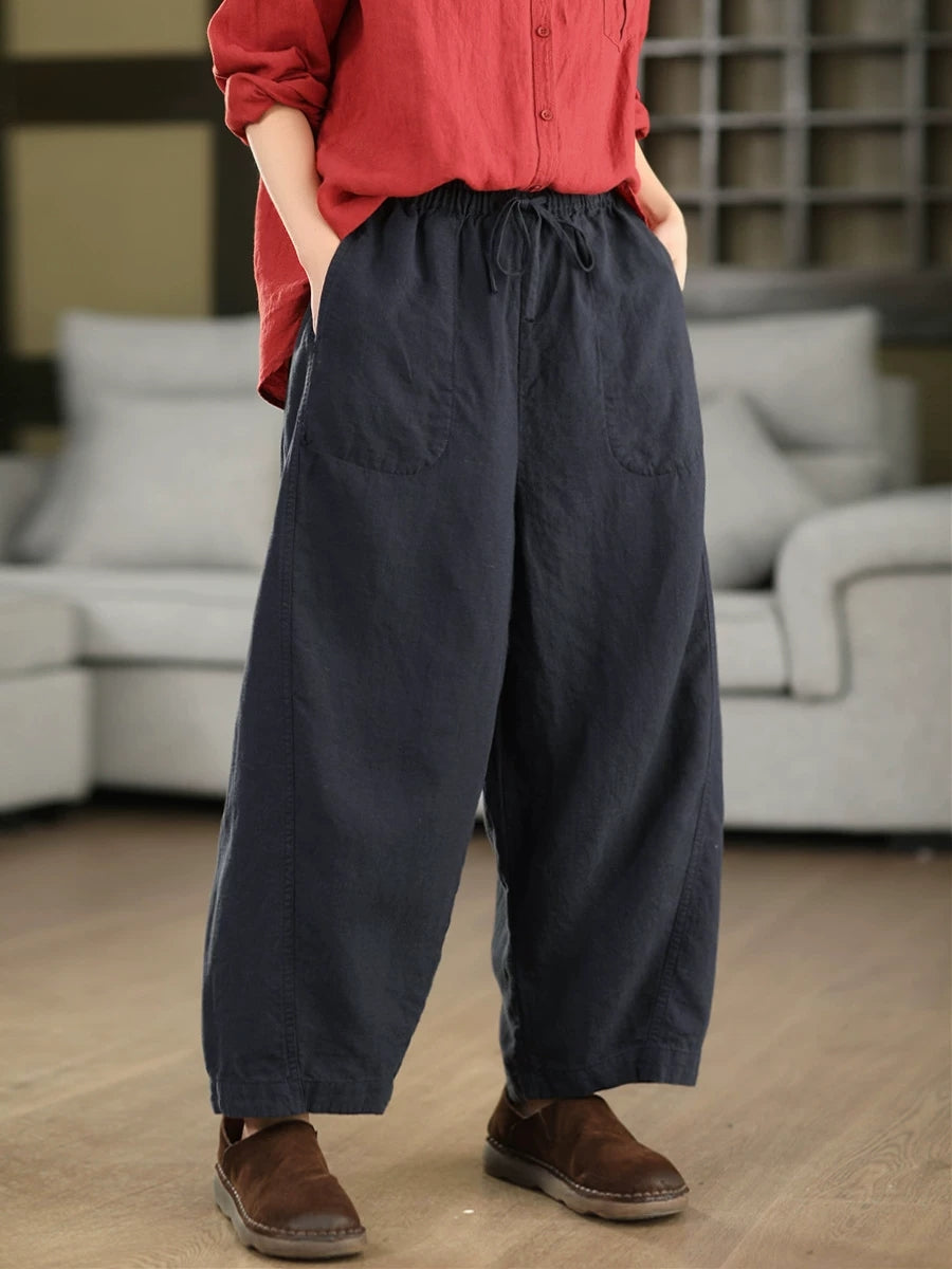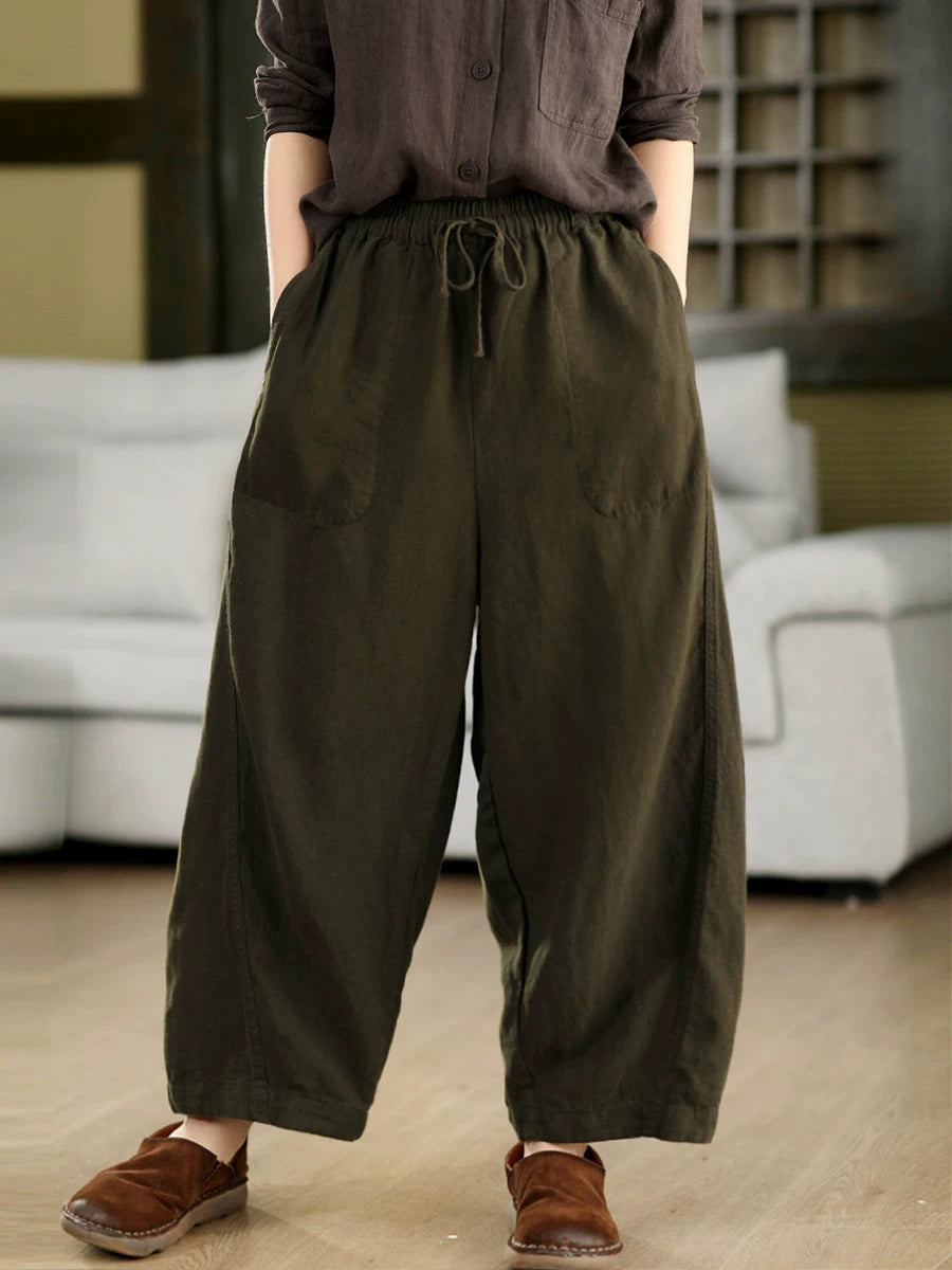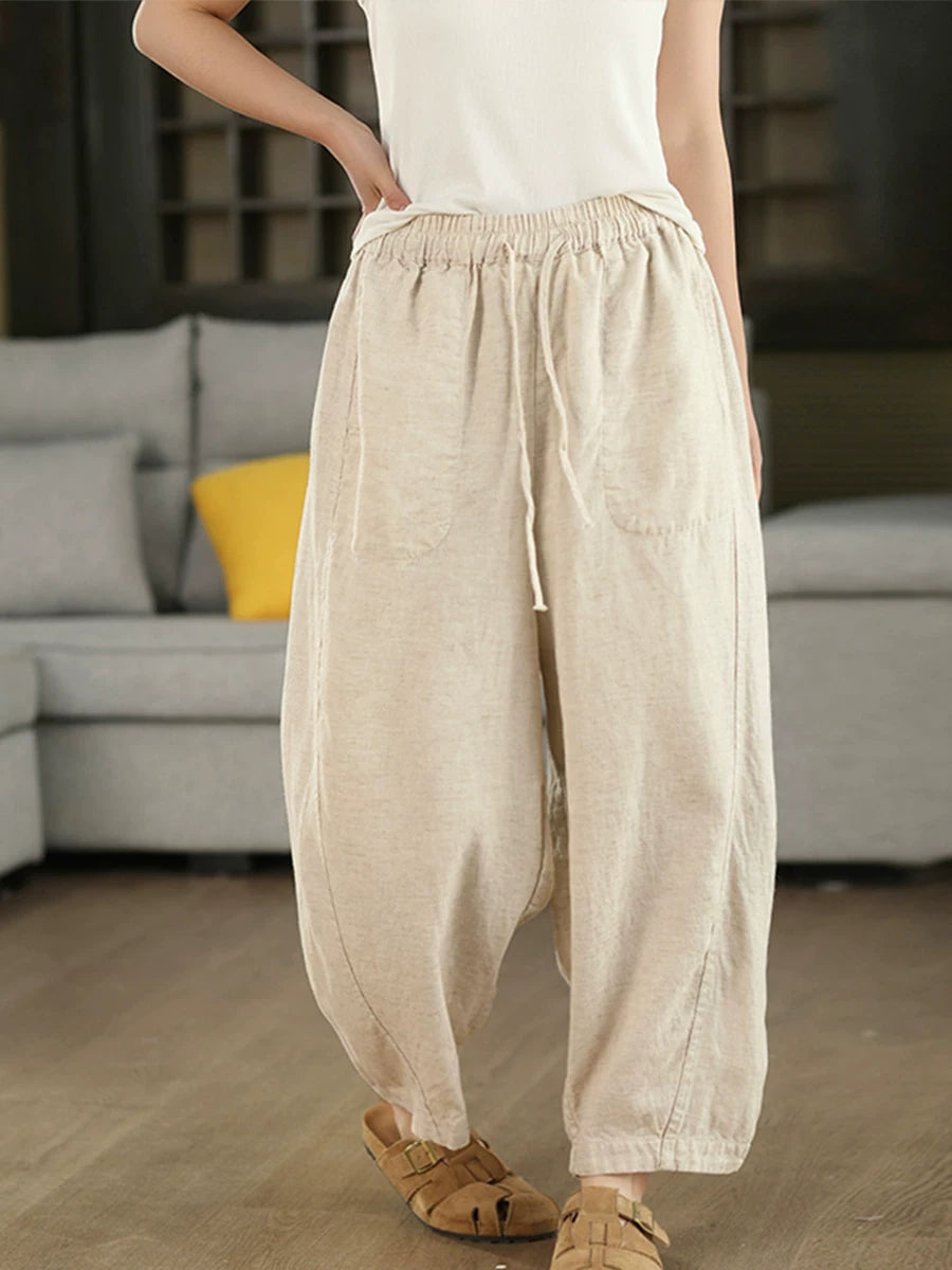 Pantalones harén informales de verano para mujer, 100 % lino, color puro