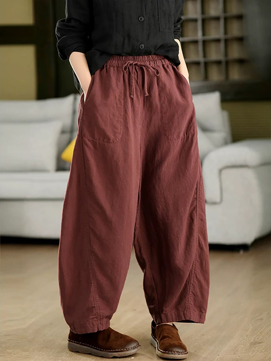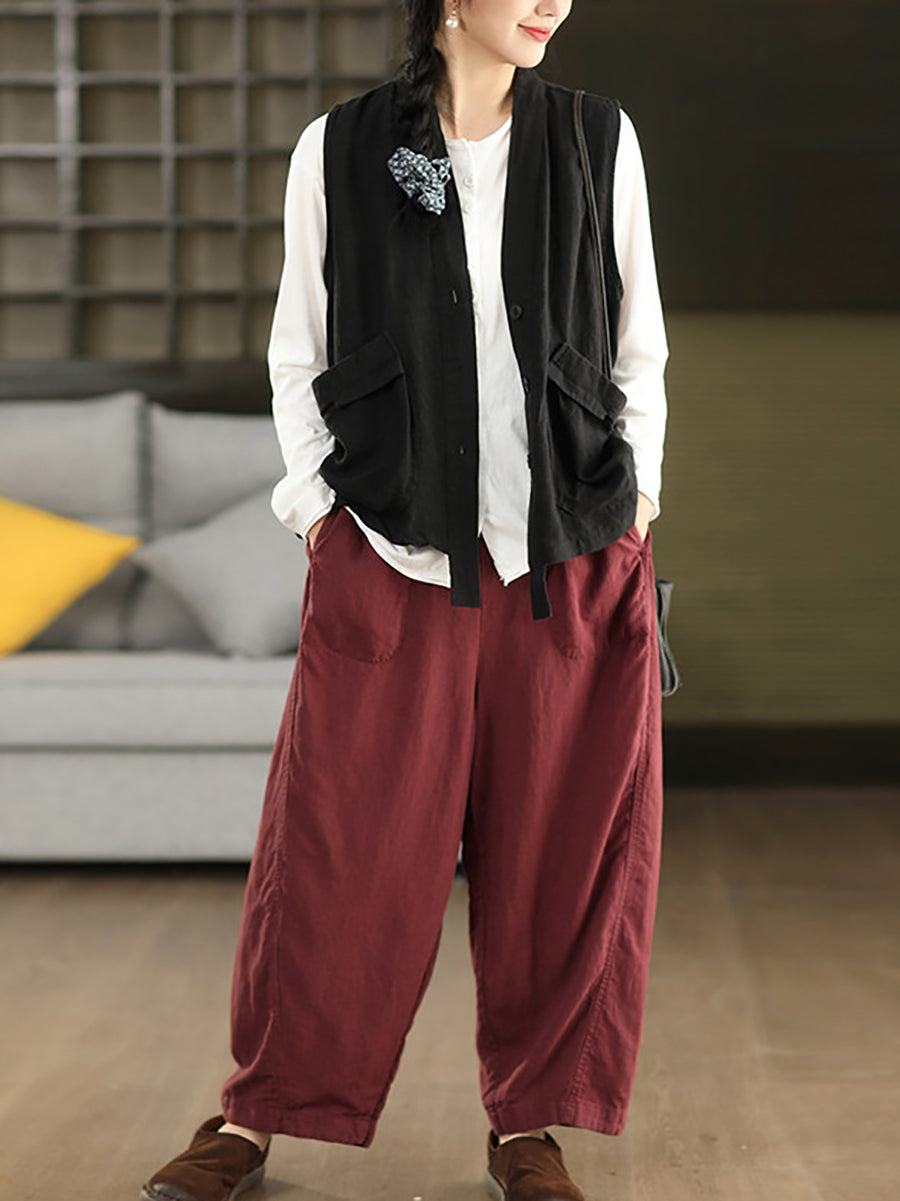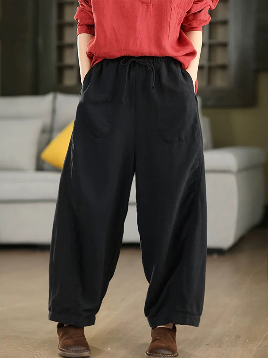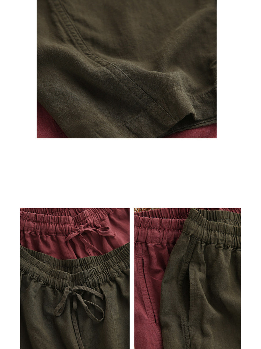 Pantalones harén informales de verano para mujer, 100 % lino, color puro