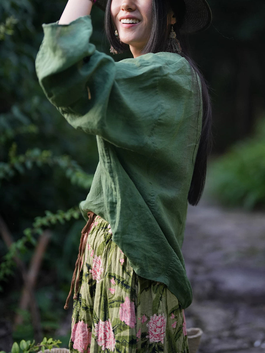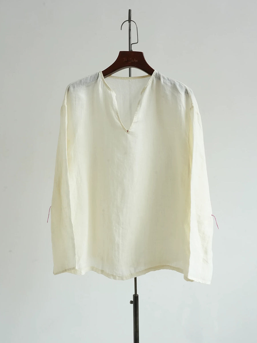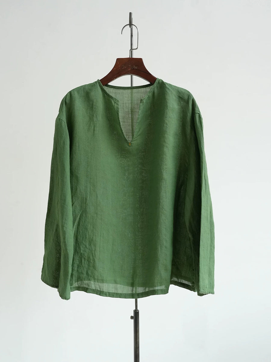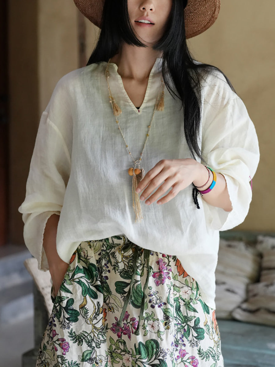 Blusa informal de verano para mujer, color puro, 100 % ramio, con cuello en V