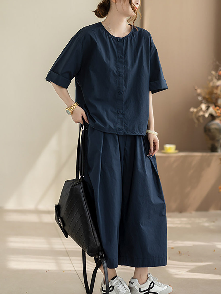 Trajes de verano casuales de algodón de color liso para mujer.