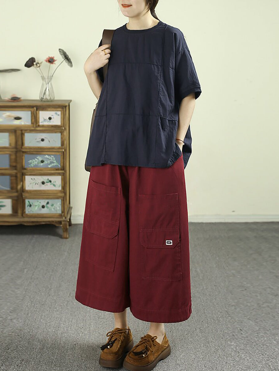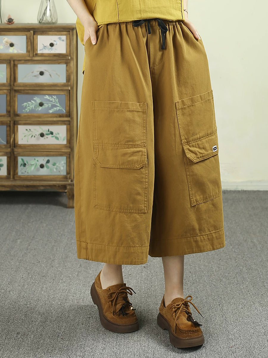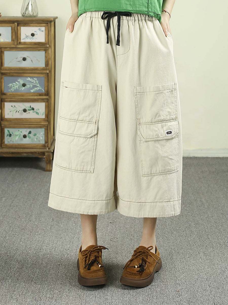 Pantalones anchos de algodón liso de color liso para mujer, ideales para el verano.