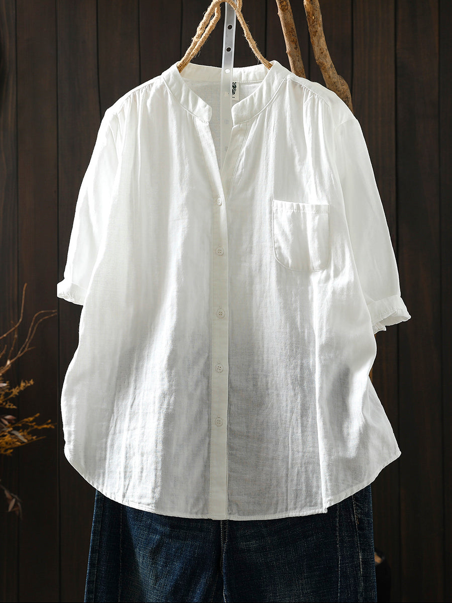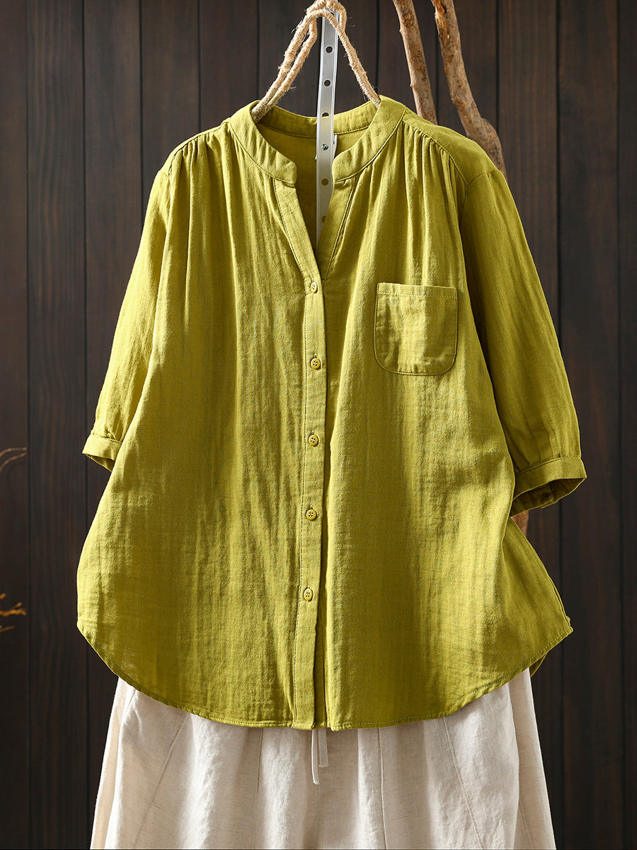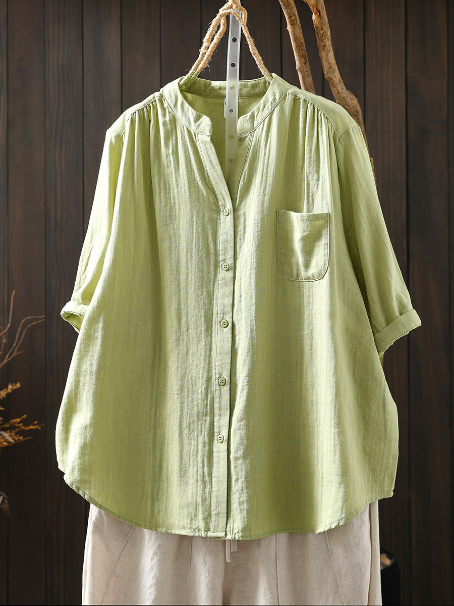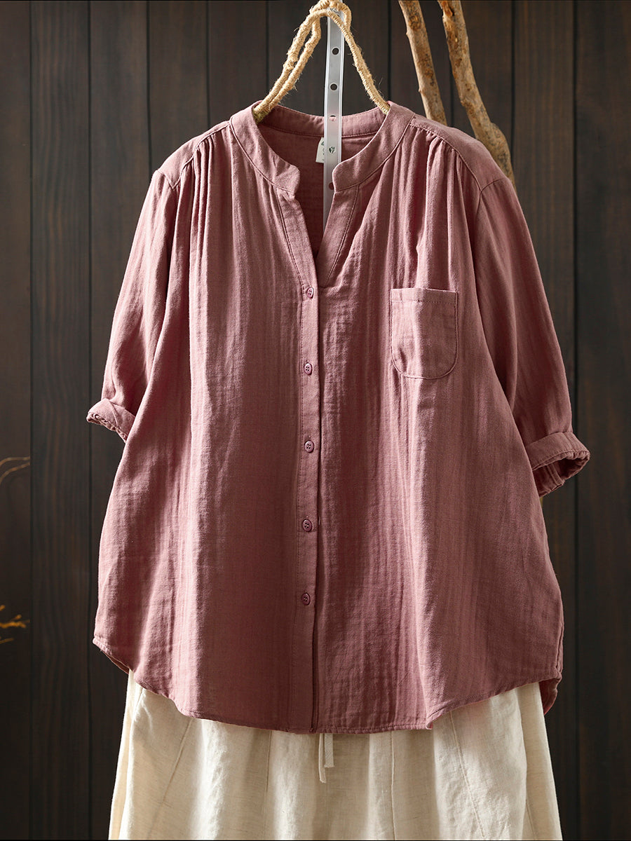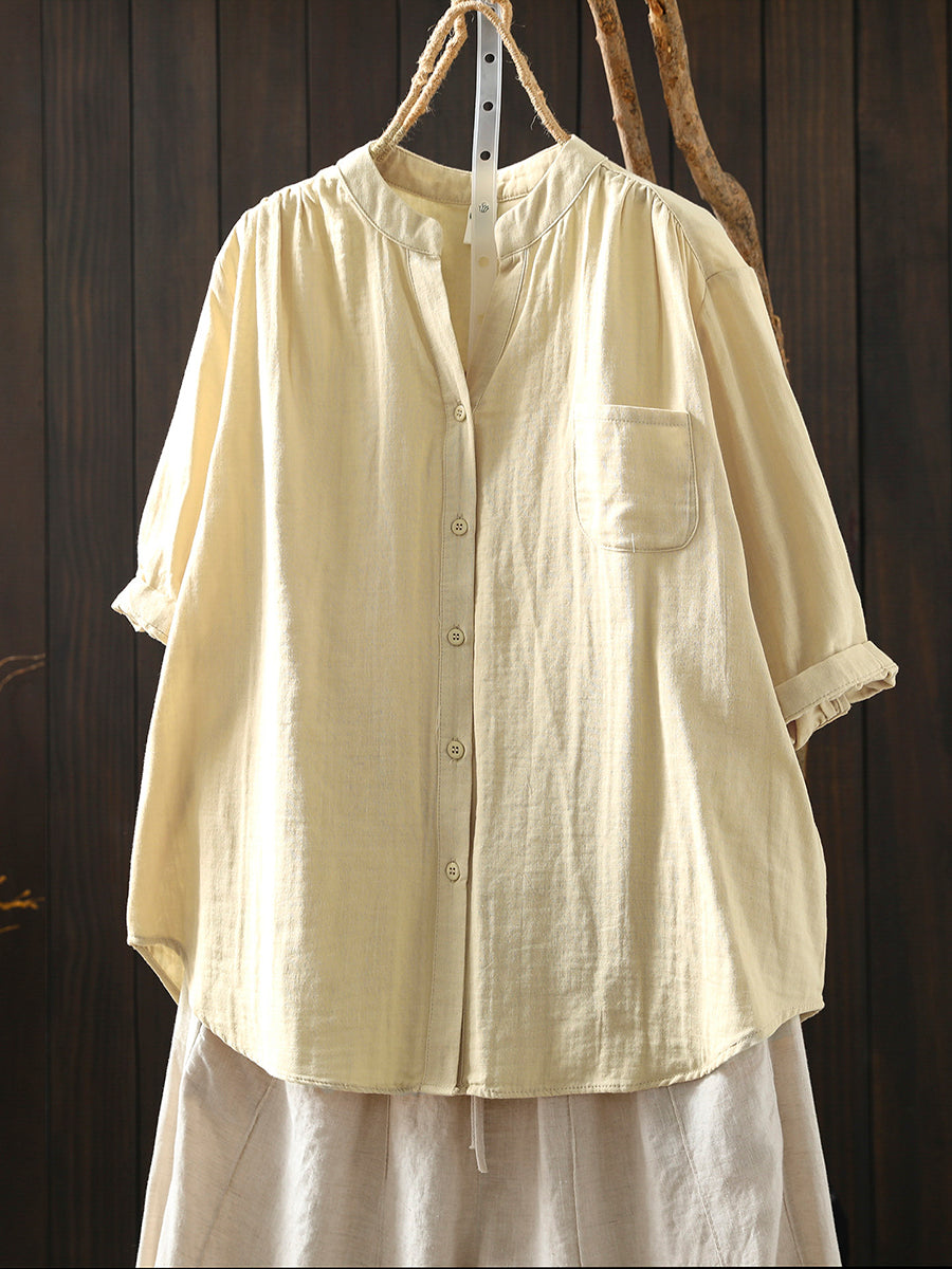 Blusa de mujer informal de verano, color liso, cuello en V, 100% algodón.