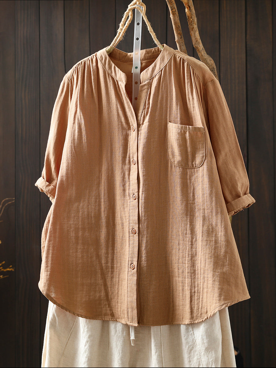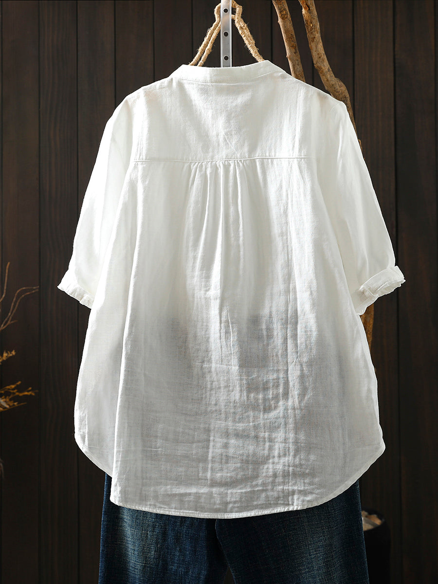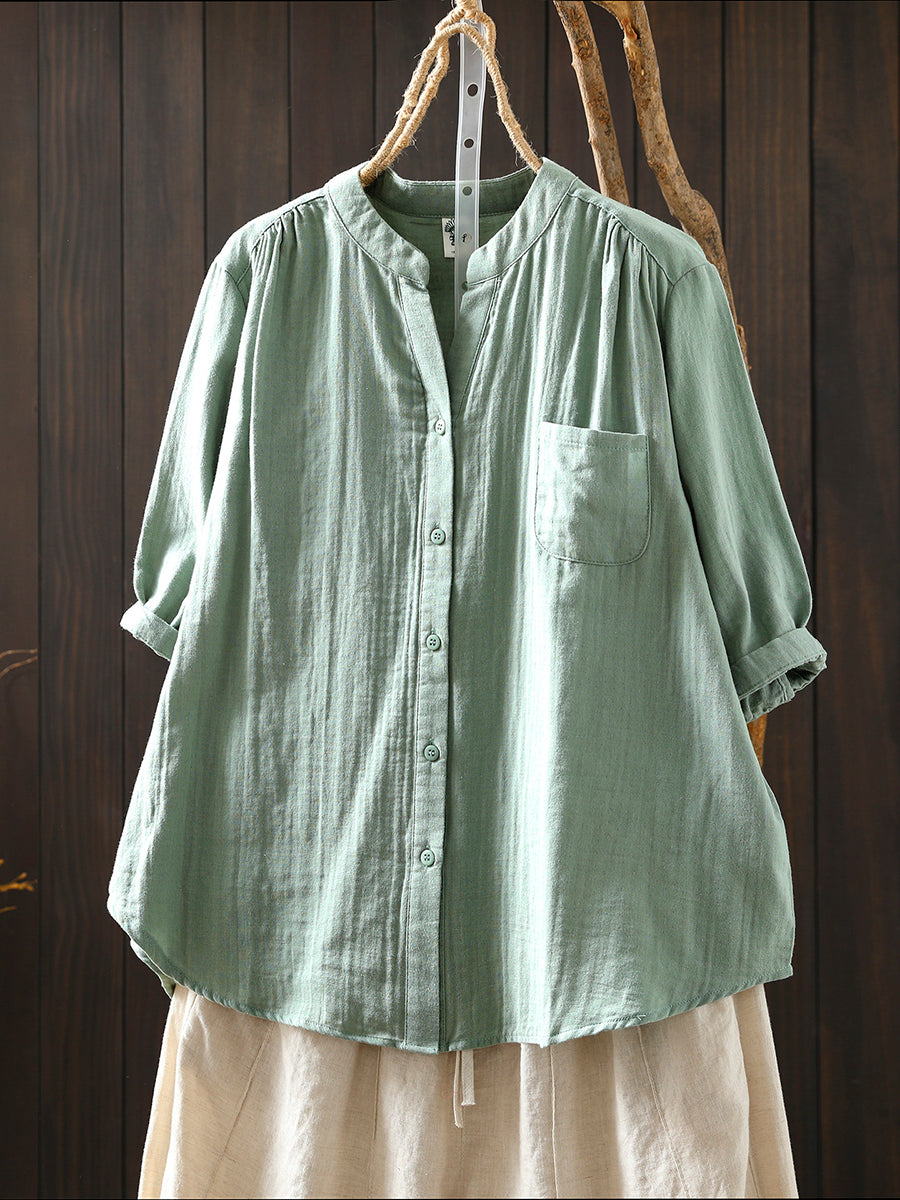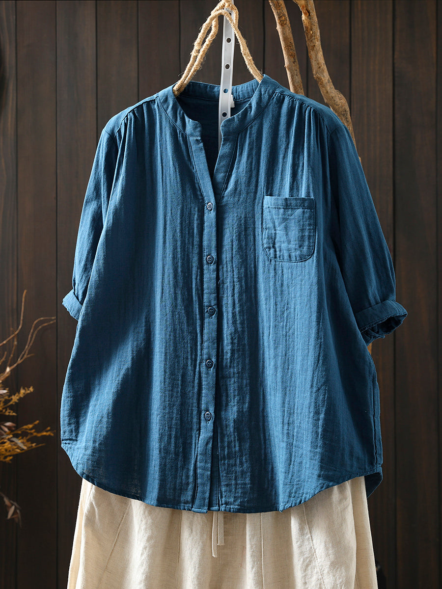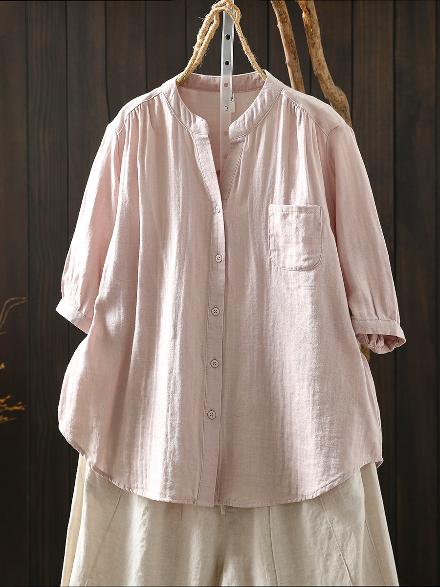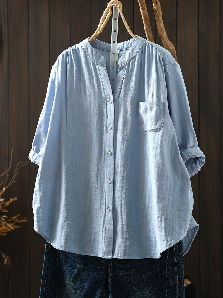 Blusa de mujer informal de verano, color liso, cuello en V, 100% algodón.