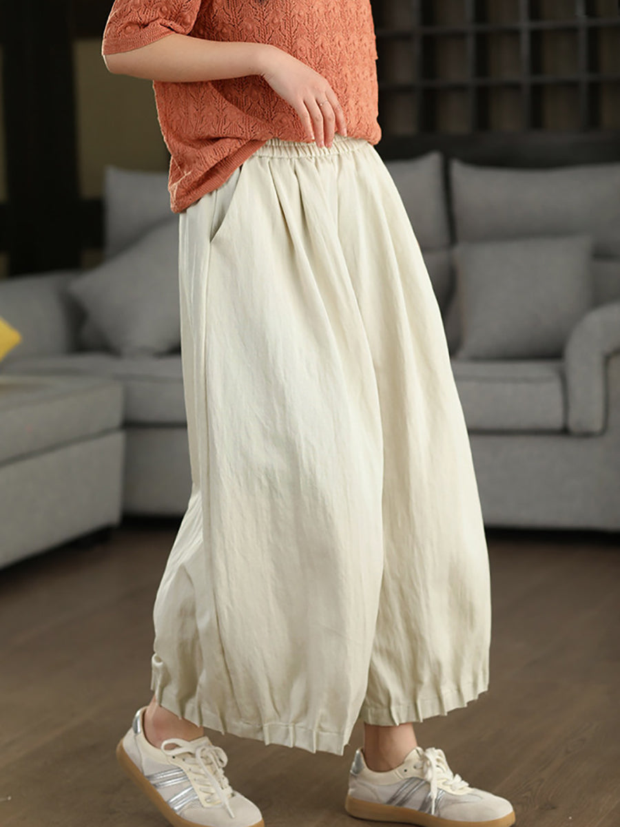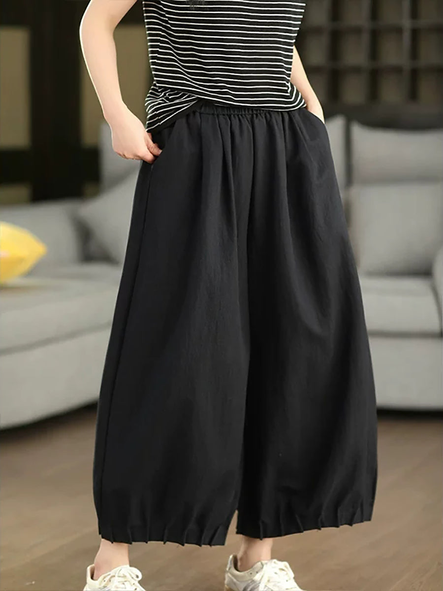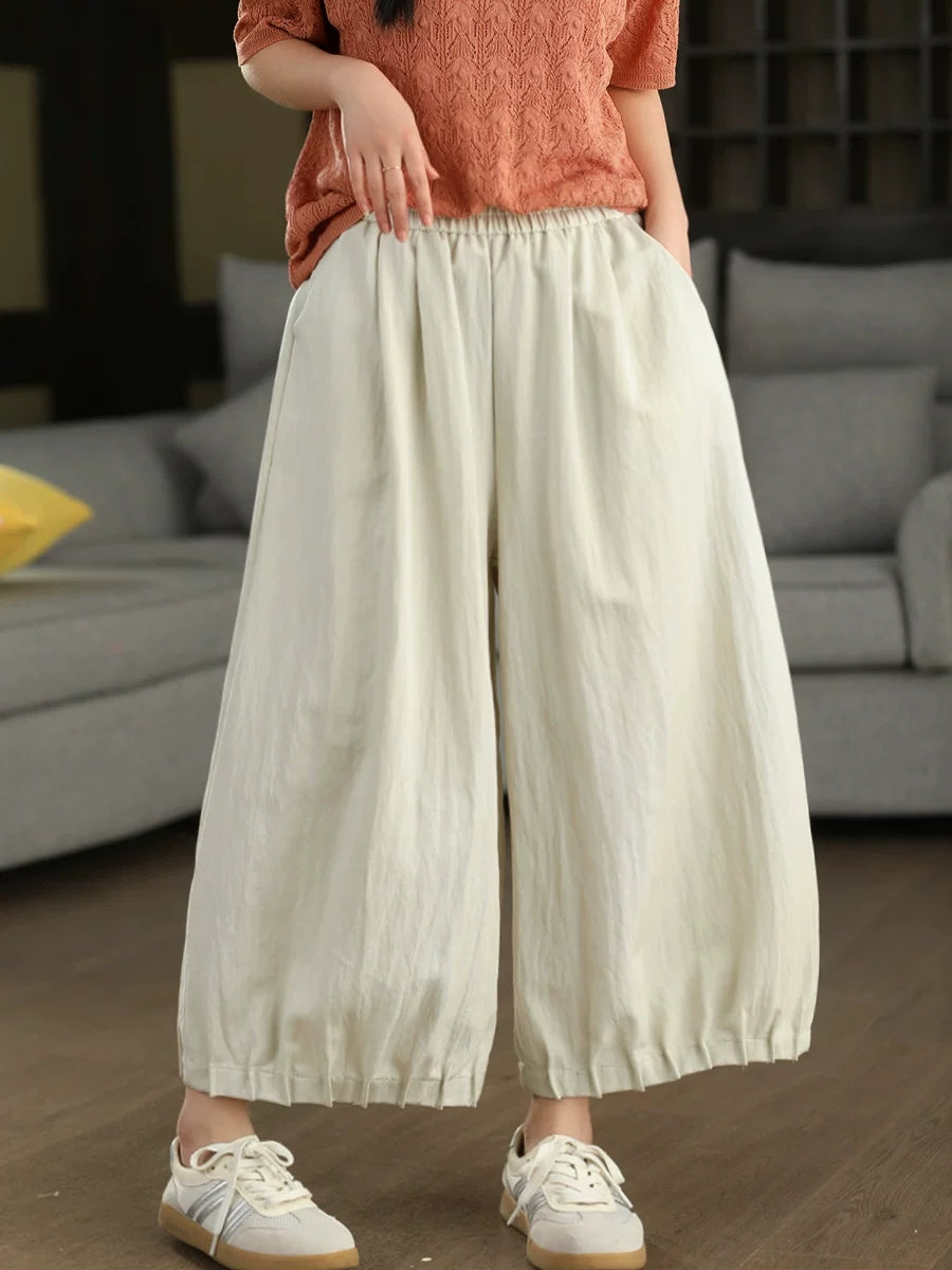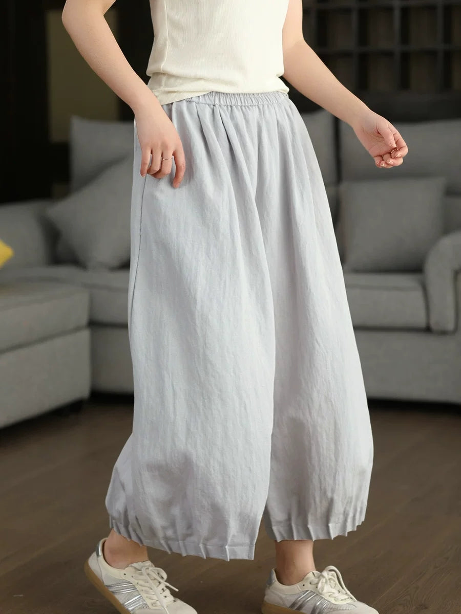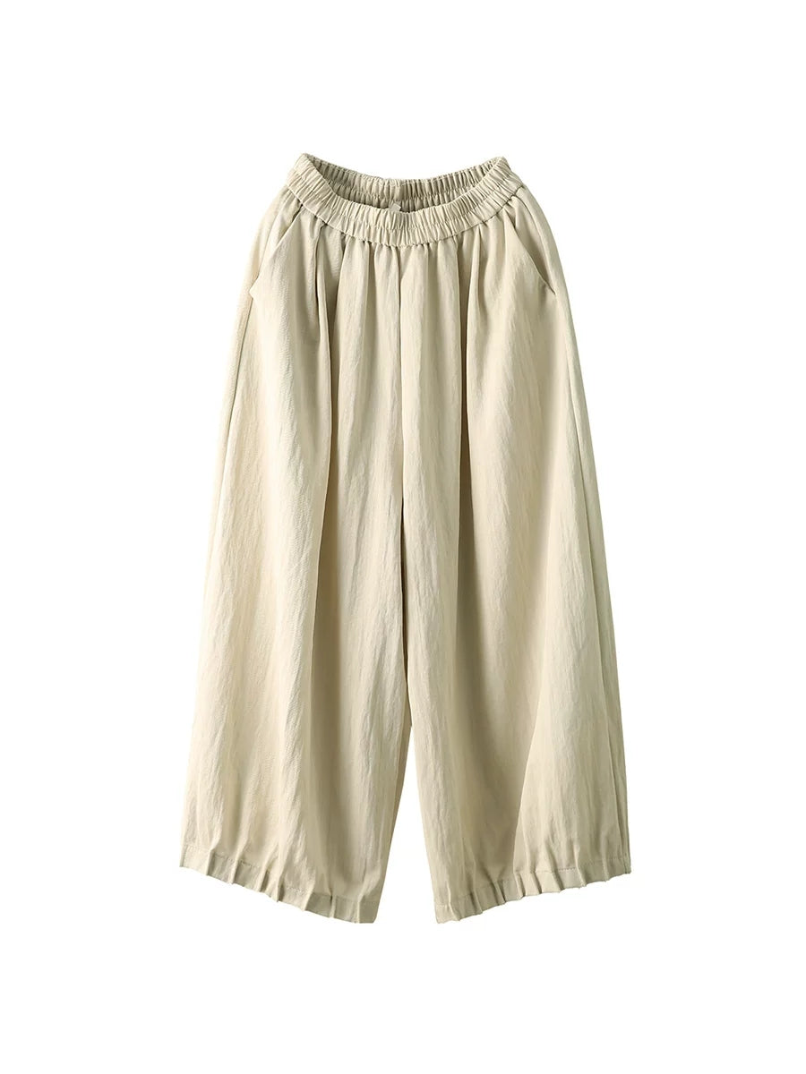 Pantalones de mujer casuales de verano de color liso y pierna ancha